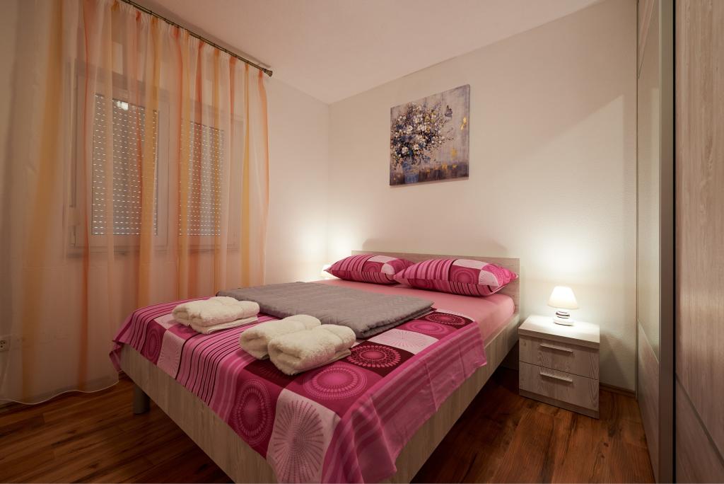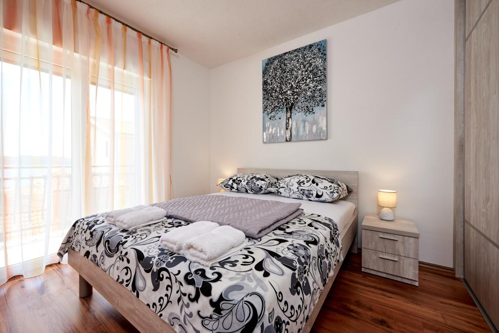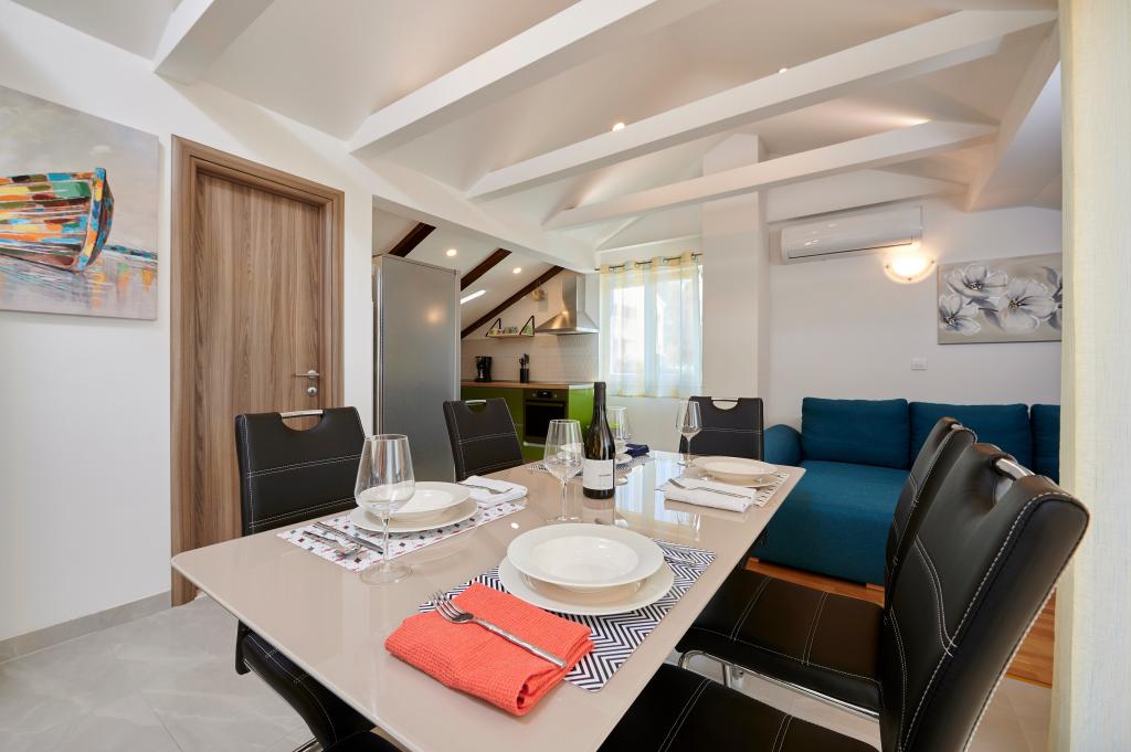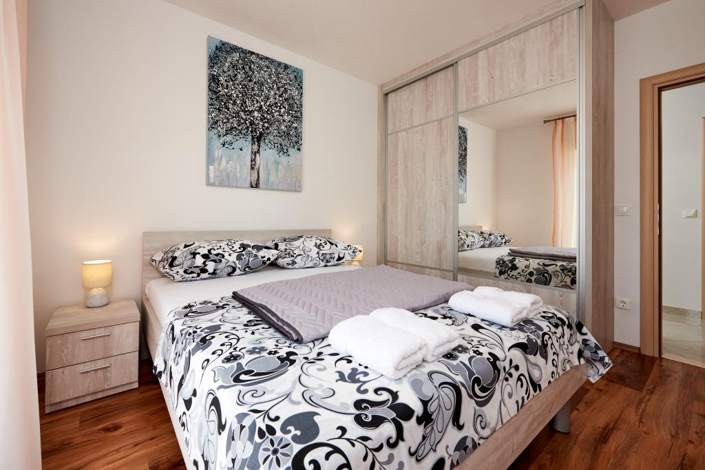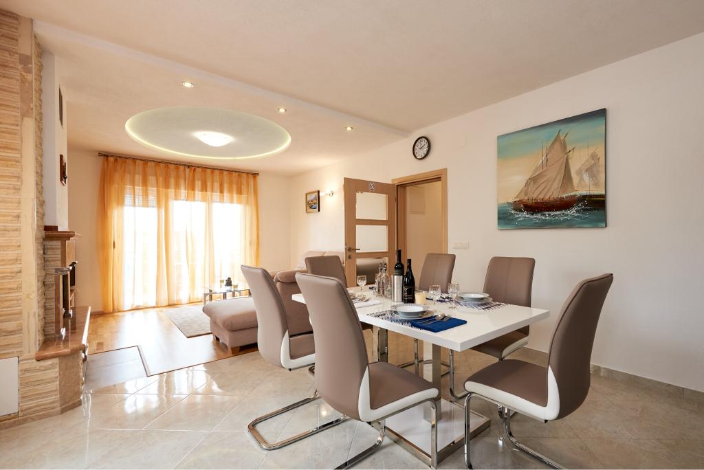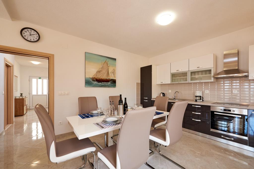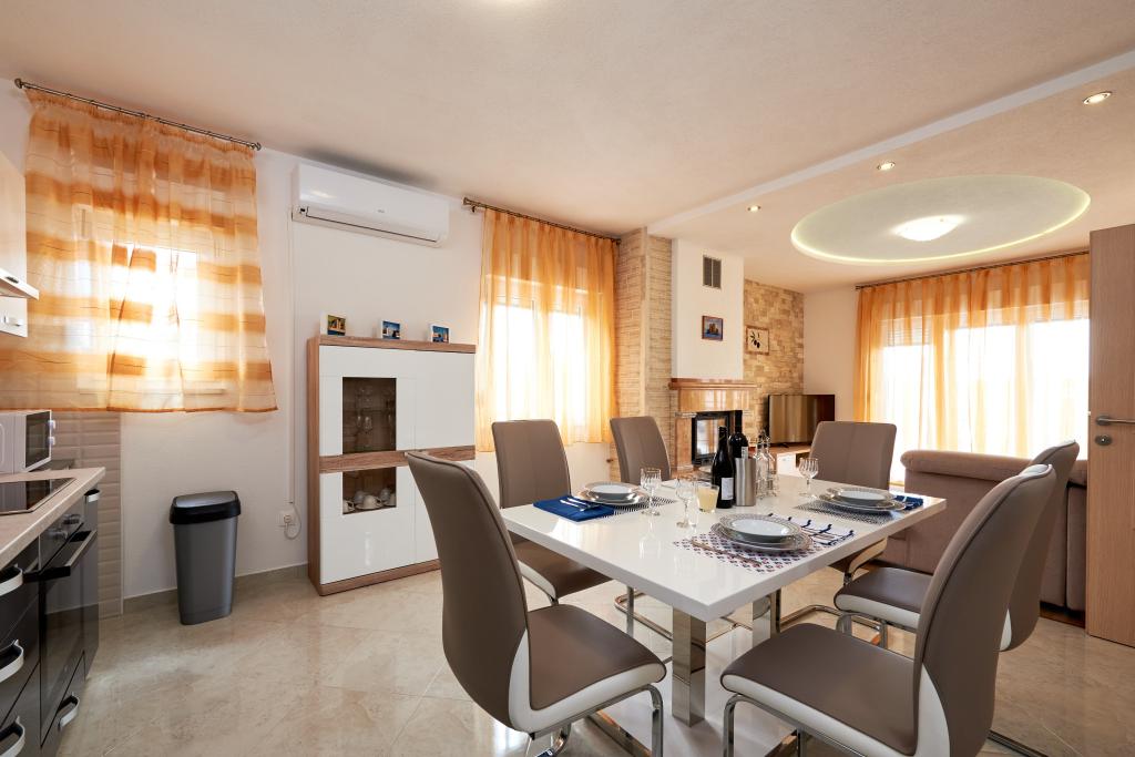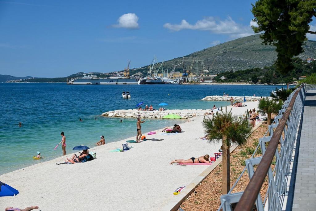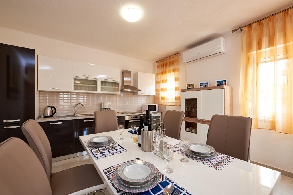 Apartamentele Magdalena sunt confortabile și bine echipate. Sunt situate pe insula Čiovo, la doar 1,3 km de centrul orașului vechi Trogir. Au o vedere frumoasă la mare și la împrejurimi. Apartamentele sunt situate într-un cartier liniștit, la doar 250 m de cea mai apropiată plajă. Restaurante, un supermarket, un bancomat, o stație de autobuz și o linie de vapor către centru se află la 400 m de apartament. Apartamentul este accesibil printr-un drum care urcă un deal. Dotările includ aer condiționat, parcare gratuită, WiFi, o bucătărie complet utilată, TV prin cablu, mașină de spălat, mașină de spălat vase... Apartamentele au 75 și 85 de metri pătrați, plus terase exterioare cu fotolii confortabile și leagăne suspendate în formă de ou. Apartamentul 1 este situat la primul etaj și are trei dormitoare, în timp ce apartamentul 2 este la etajul al doilea și are două dormitoare și două toalete. Totul este frumos decorat, curat și ordonat. Apartamentele se află la 5 minute de mers pe jos de plajă și la 15 minute de mers pe jos de centrul orașului Trogir. Plaja din apropiere este punctul de plecare pentru linia de vapor care merge spre centrul orașului, călătoria durează 10 minute.