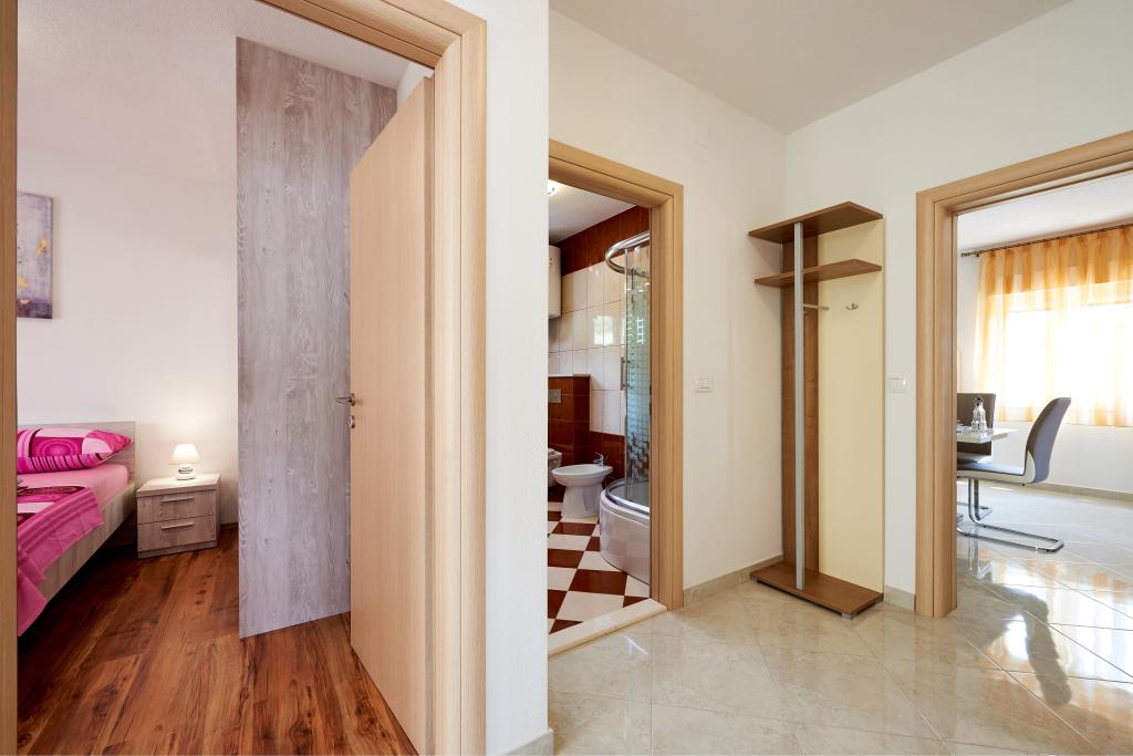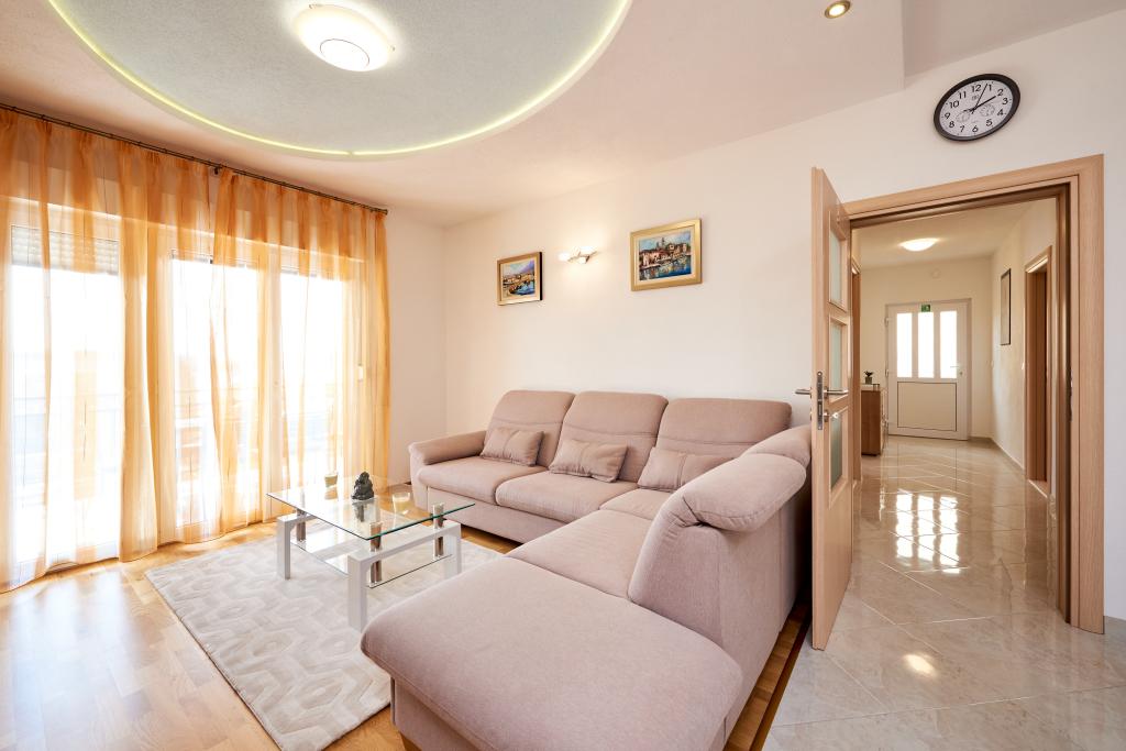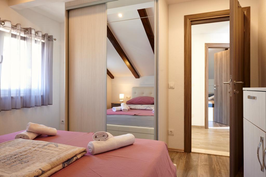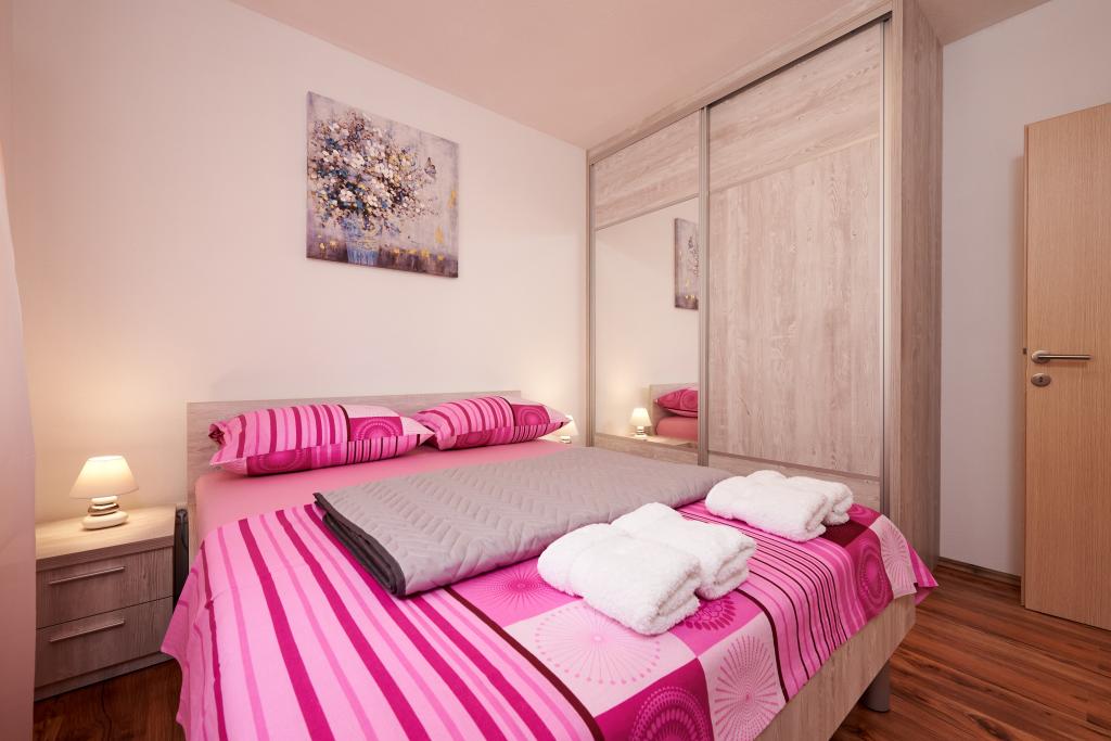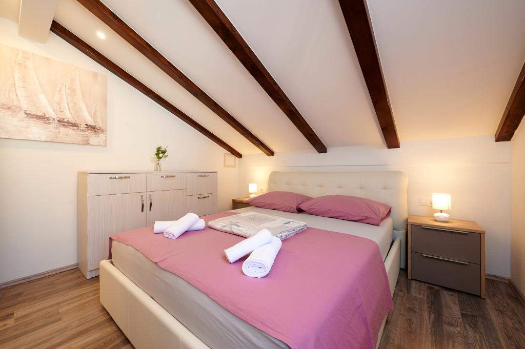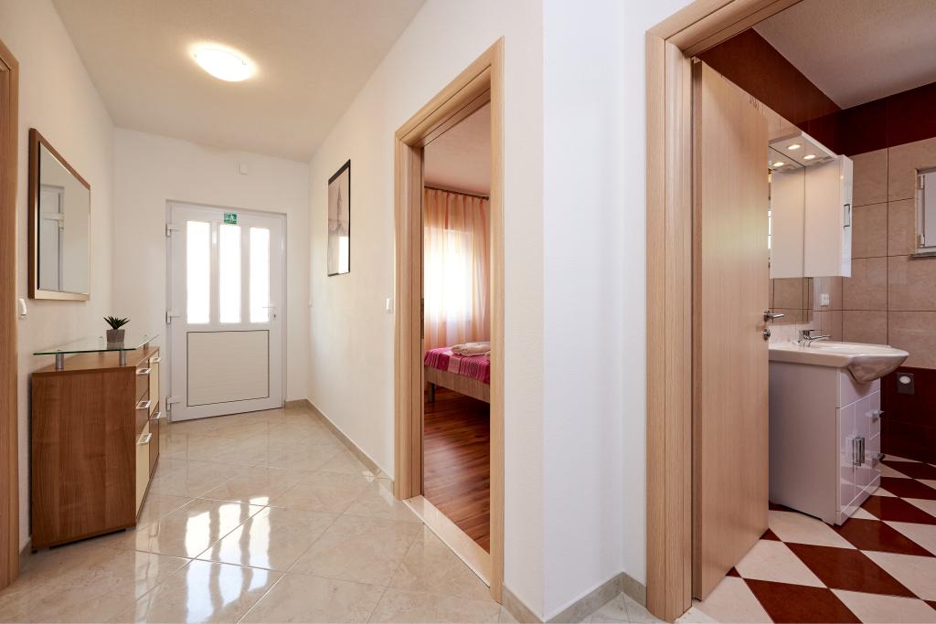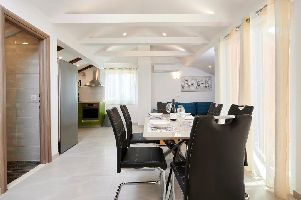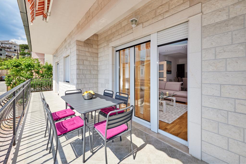 Apartamentele Magdalena sunt confortabile și bine echipate. Sunt situate pe insula Čiovo, la doar 1,3 km de centrul orașului vechi Trogir. Au o vedere frumoasă la mare și la împrejurimi. Apartamentele sunt situate într-un cartier liniștit, la doar 250 m de cea mai apropiată plajă. Restaurante, un supermarket, un bancomat, o stație de autobuz și o linie de vapor către centru se află la 400 m de apartament. Apartamentul este accesibil printr-un drum care urcă un deal. Dotările includ aer condiționat, parcare gratuită, WiFi, o bucătărie complet utilată, TV prin cablu, mașină de spălat, mașină de spălat vase... Apartamentele au 75 și 85 de metri pătrați, plus terase exterioare cu fotolii confortabile și leagăne suspendate în formă de ou. Apartamentul 1 este situat la primul etaj și are trei dormitoare, în timp ce apartamentul 2 este la etajul al doilea și are două dormitoare și două toalete. Totul este frumos decorat, curat și ordonat. Apartamentele se află la 5 minute de mers pe jos de plajă și la 15 minute de mers pe jos de centrul orașului Trogir. Plaja din apropiere este punctul de plecare pentru linia de vapor care merge spre centrul orașului, călătoria durează 10 minute.