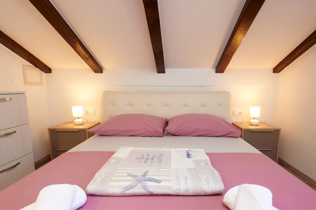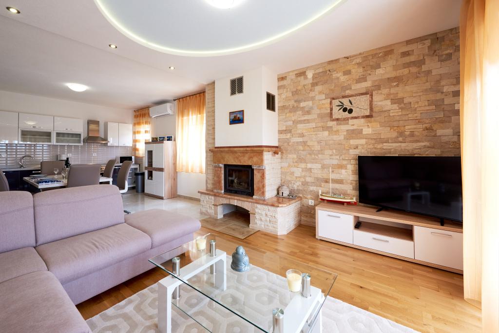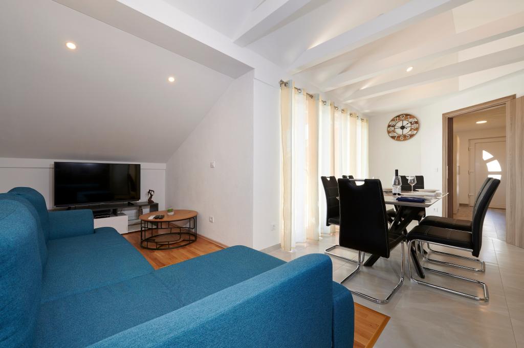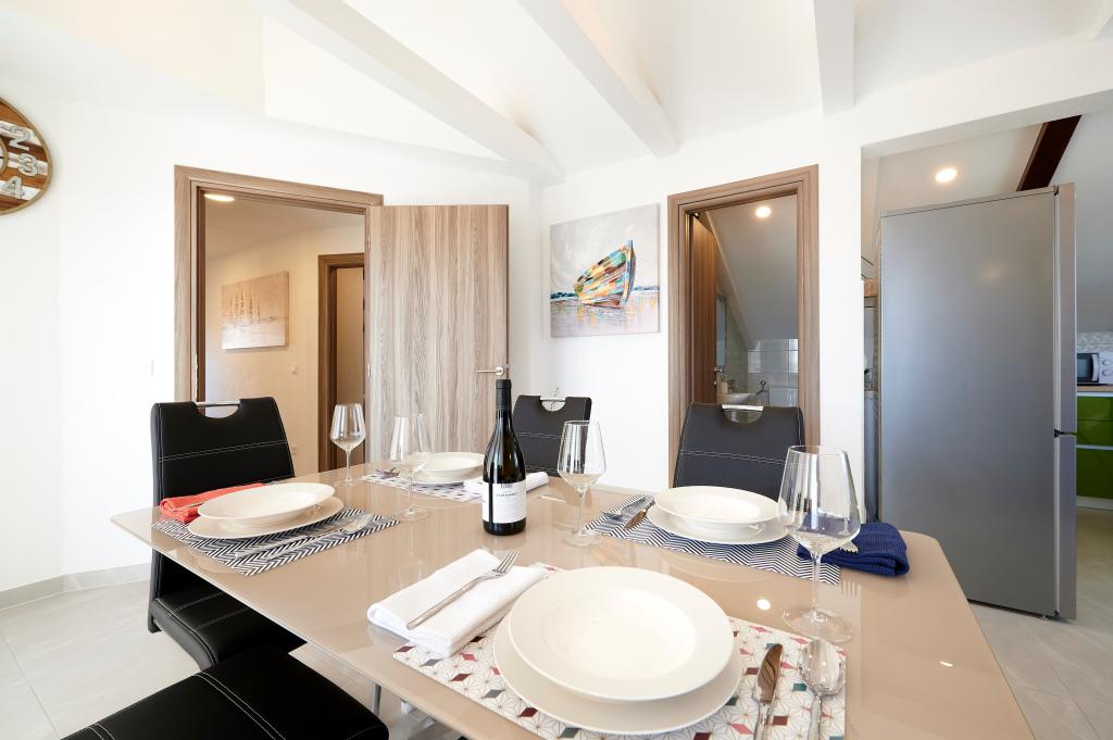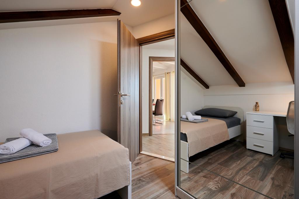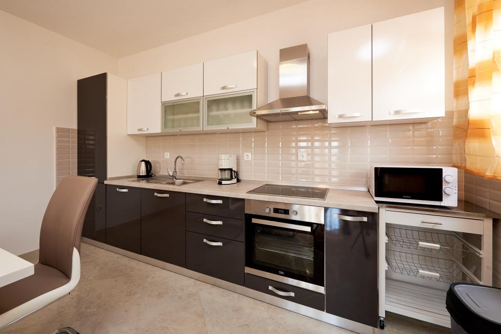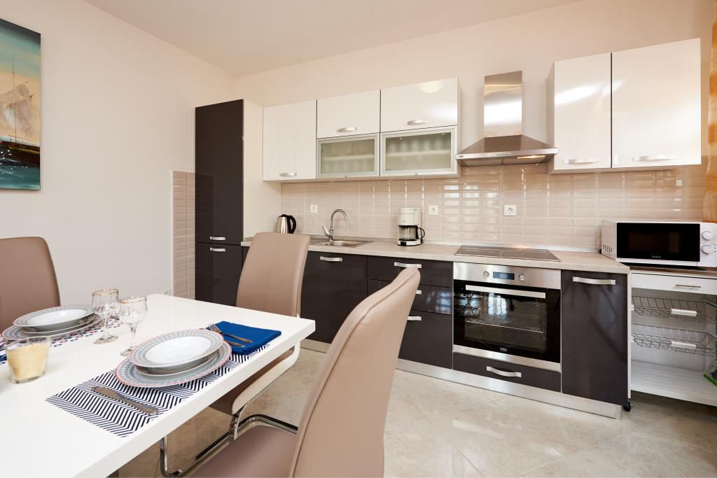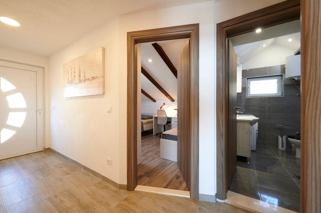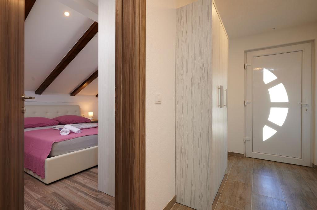 Apartamentele Magdalena sunt confortabile și bine echipate. Sunt situate pe insula Čiovo, la doar 1,3 km de centrul orașului vechi Trogir. Au o vedere frumoasă la mare și la împrejurimi. Apartamentele sunt situate într-un cartier liniștit, la doar 250 m de cea mai apropiată plajă. Restaurante, un supermarket, un bancomat, o stație de autobuz și o linie de vapor către centru se află la 400 m de apartament. Apartamentul este accesibil printr-un drum care urcă un deal. Dotările includ aer condiționat, parcare gratuită, WiFi, o bucătărie complet utilată, TV prin cablu, mașină de spălat, mașină de spălat vase... Apartamentele au 75 și 85 de metri pătrați, plus terase exterioare cu fotolii confortabile și leagăne suspendate în formă de ou. Apartamentul 1 este situat la primul etaj și are trei dormitoare, în timp ce apartamentul 2 este la etajul al doilea și are două dormitoare și două toalete. Totul este frumos decorat, curat și ordonat. Apartamentele se află la 5 minute de mers pe jos de plajă și la 15 minute de mers pe jos de centrul orașului Trogir. Plaja din apropiere este punctul de plecare pentru linia de vapor care merge spre centrul orașului, călătoria durează 10 minute.