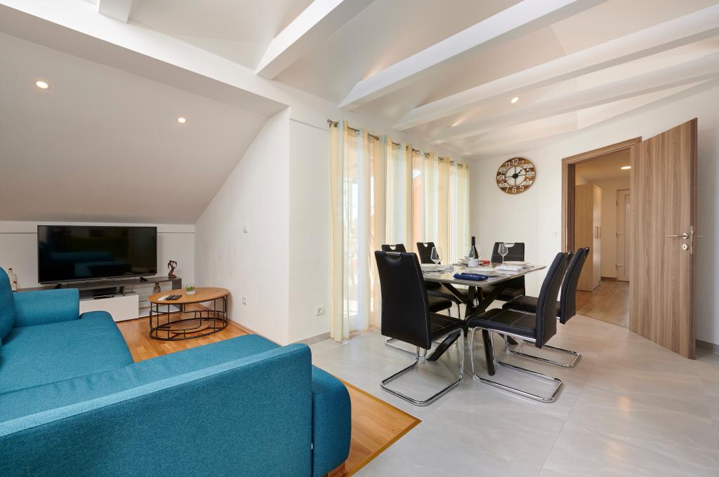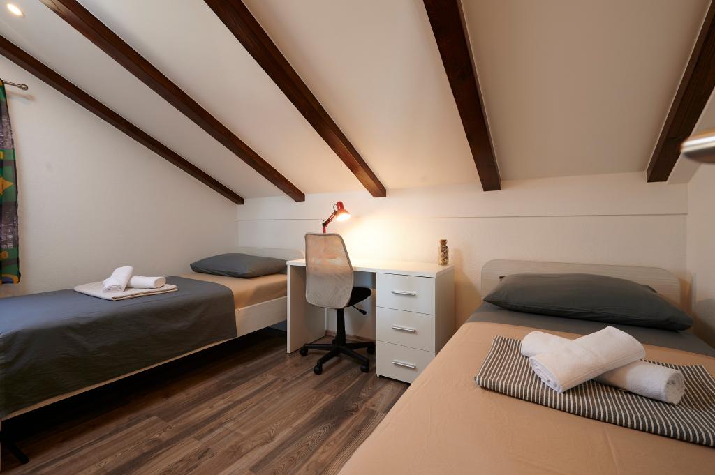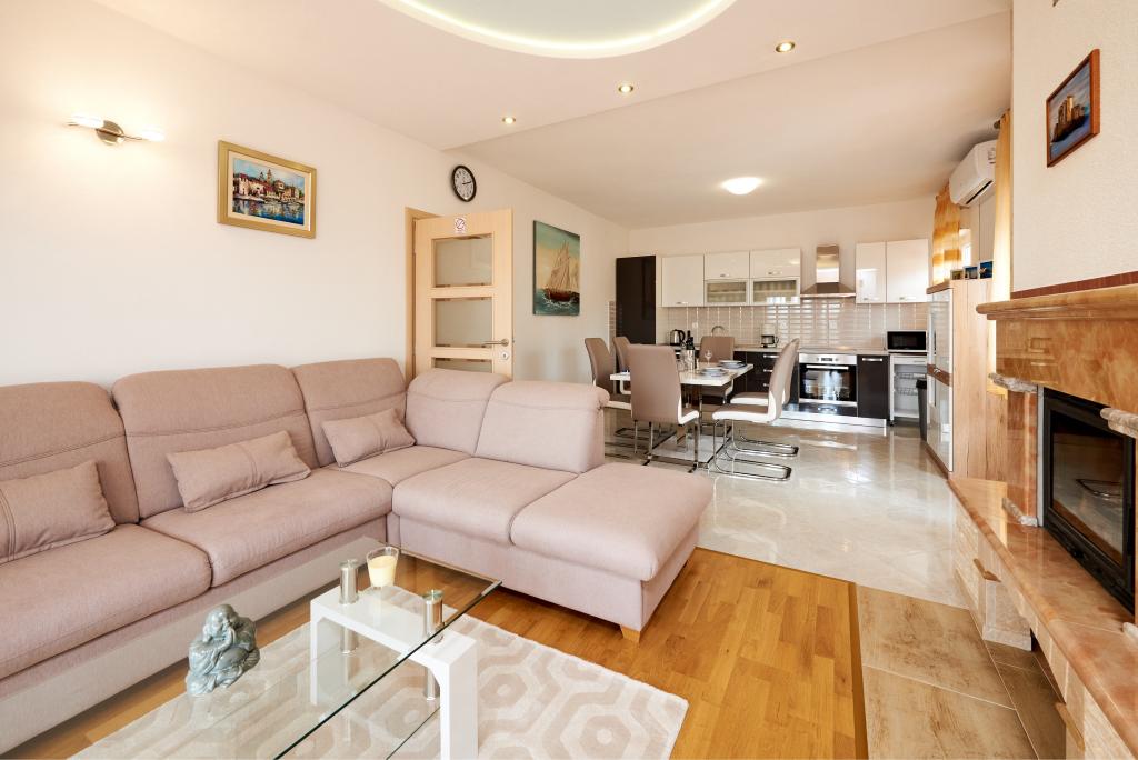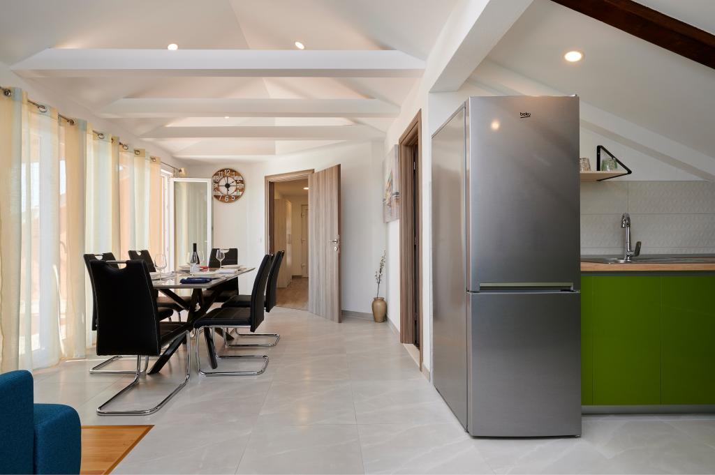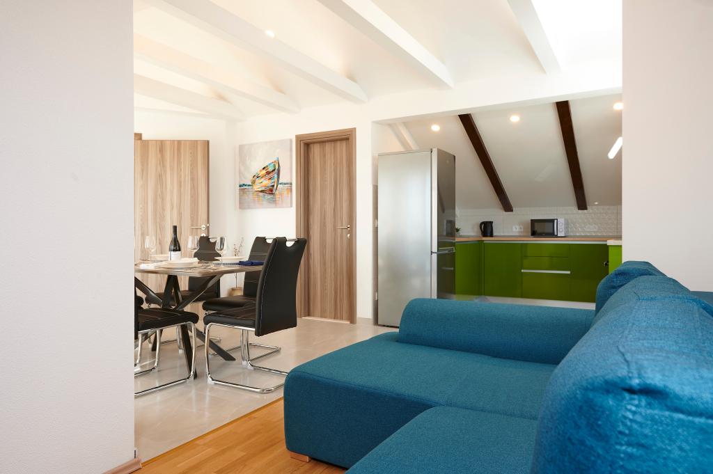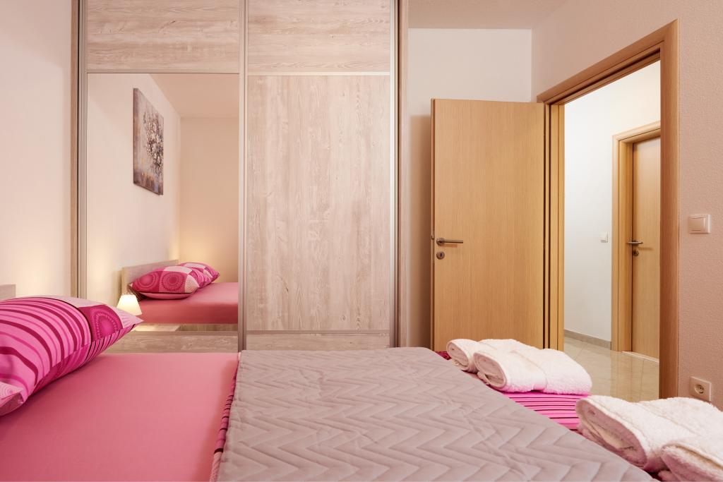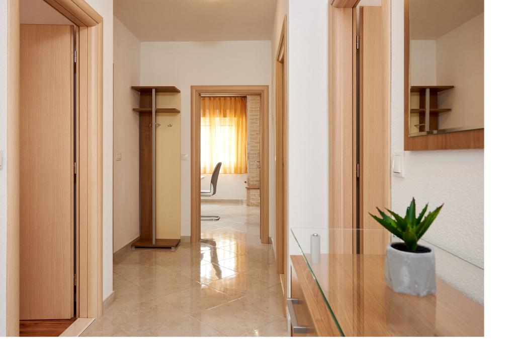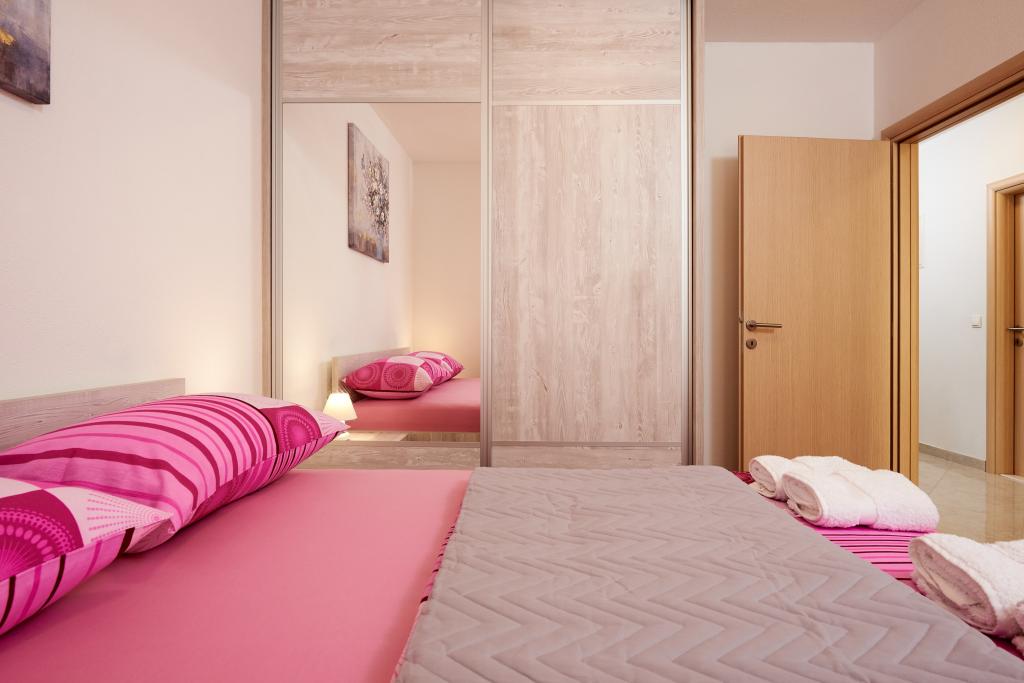 Apartamentele Magdalena sunt confortabile și bine echipate. Sunt situate pe insula Čiovo, la doar 1,3 km de centrul orașului vechi Trogir. Au o vedere frumoasă la mare și la împrejurimi. Apartamentele sunt situate într-un cartier liniștit, la doar 250 m de cea mai apropiată plajă. Restaurante, un supermarket, un bancomat, o stație de autobuz și o linie de vapor către centru se află la 400 m de apartament. Apartamentul este accesibil printr-un drum care urcă un deal. Dotările includ aer condiționat, parcare gratuită, WiFi, o bucătărie complet utilată, TV prin cablu, mașină de spălat, mașină de spălat vase... Apartamentele au 75 și 85 de metri pătrați, plus terase exterioare cu fotolii confortabile și leagăne suspendate în formă de ou. Apartamentul 1 este situat la primul etaj și are trei dormitoare, în timp ce apartamentul 2 este la etajul al doilea și are două dormitoare și două toalete. Totul este frumos decorat, curat și ordonat. Apartamentele se află la 5 minute de mers pe jos de plajă și la 15 minute de mers pe jos de centrul orașului Trogir. Plaja din apropiere este punctul de plecare pentru linia de vapor care merge spre centrul orașului, călătoria durează 10 minute.