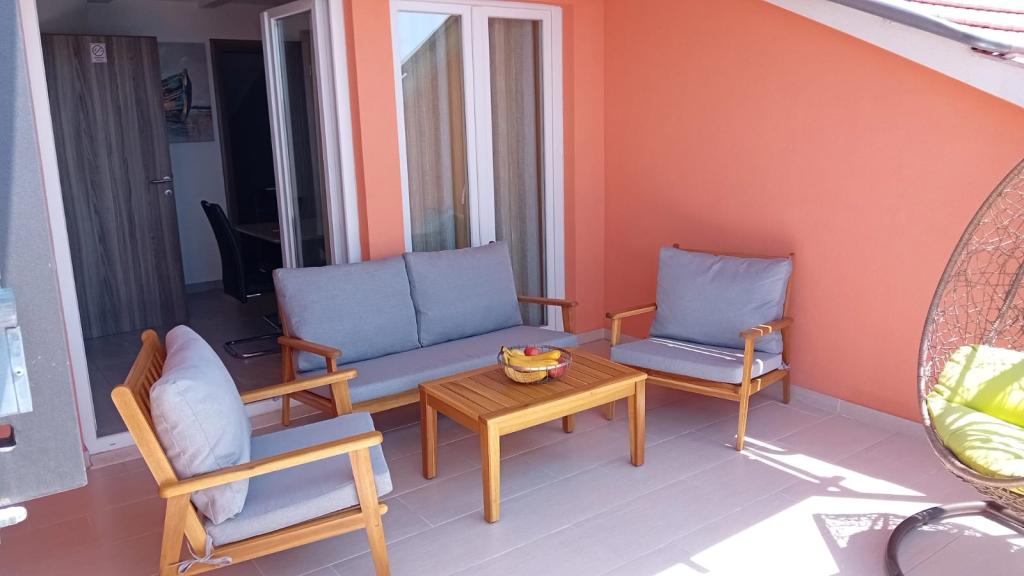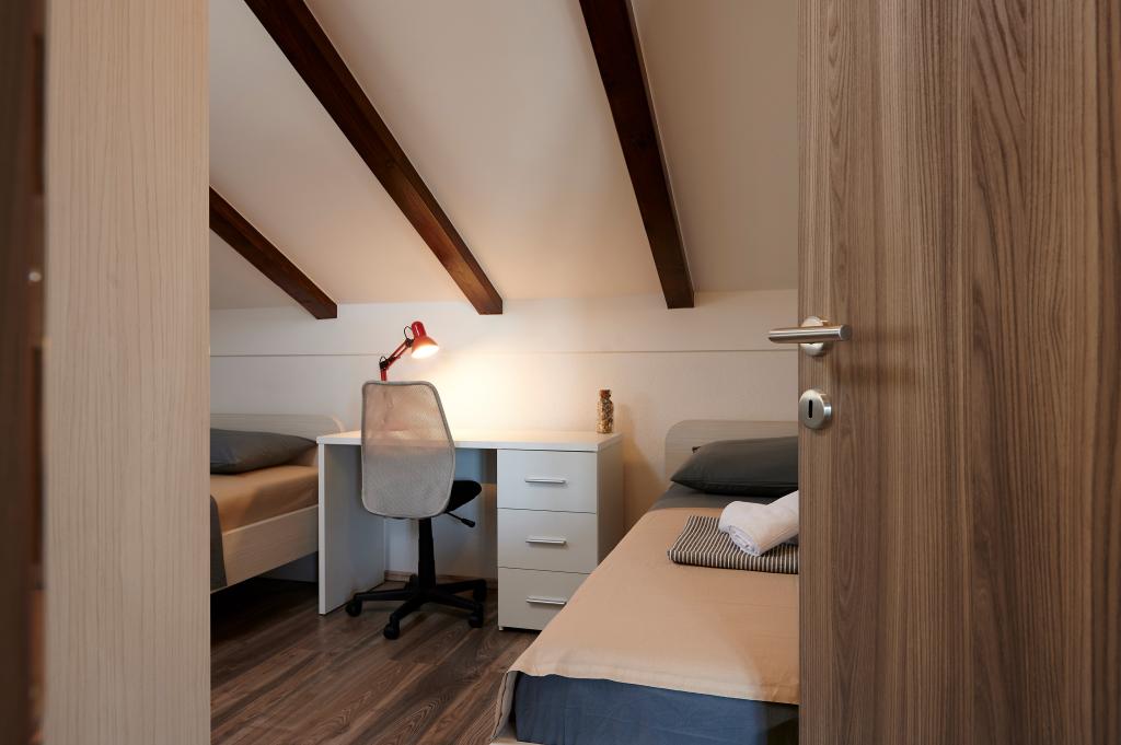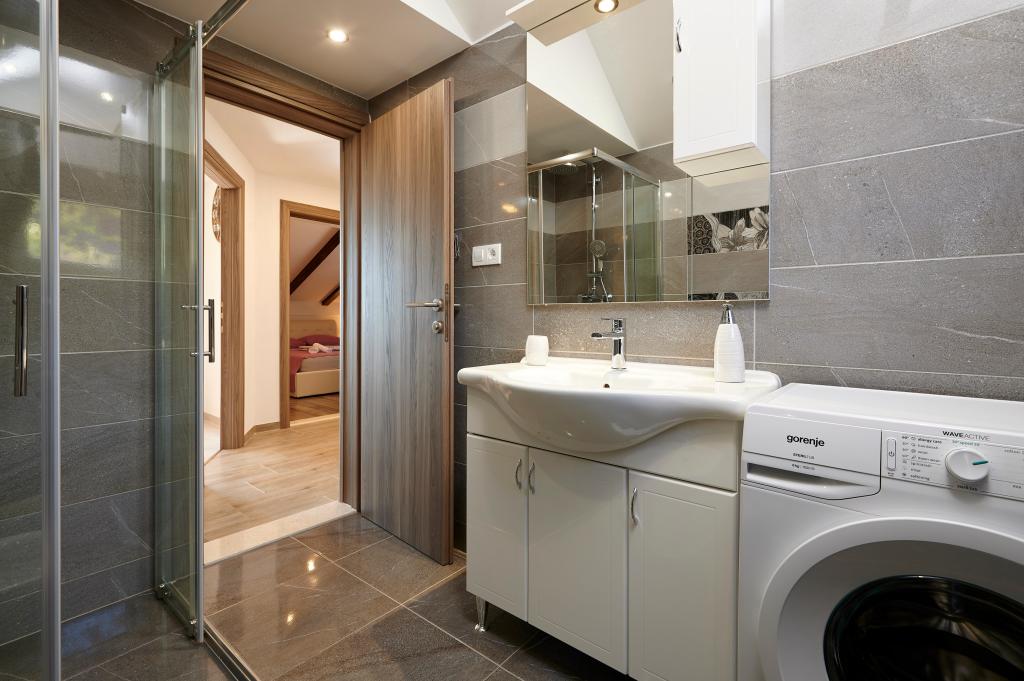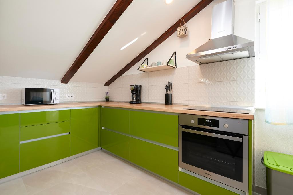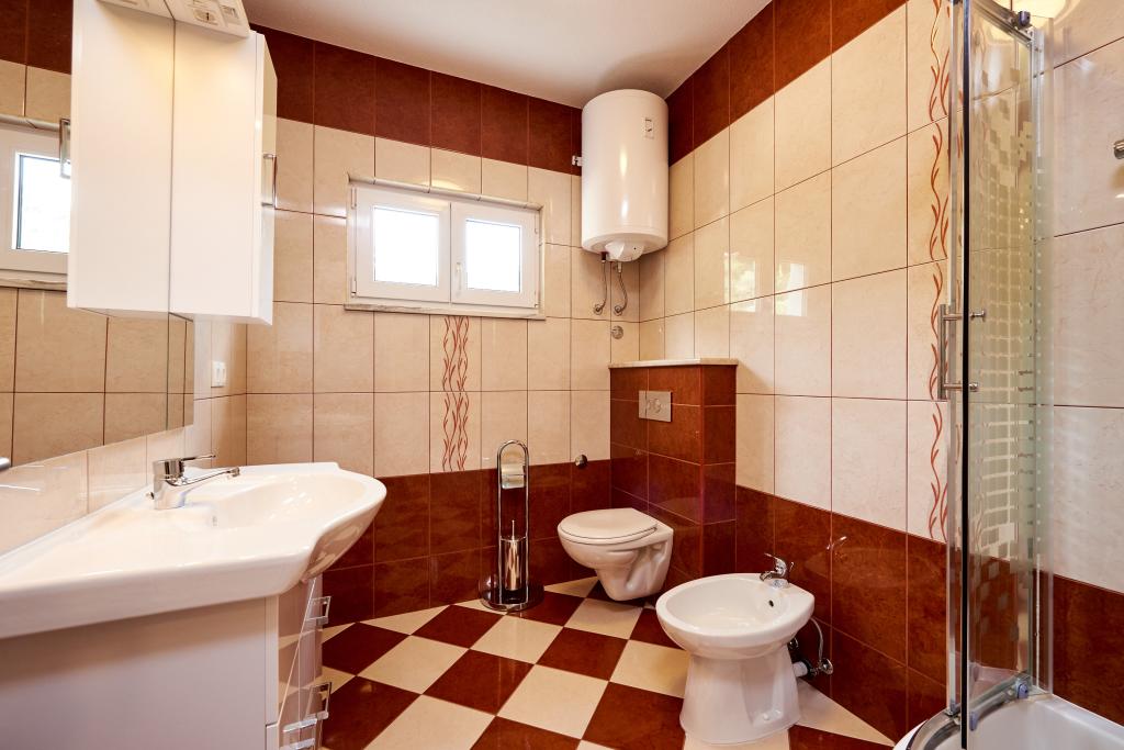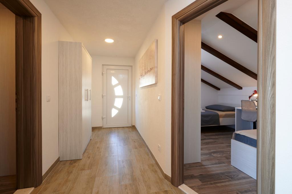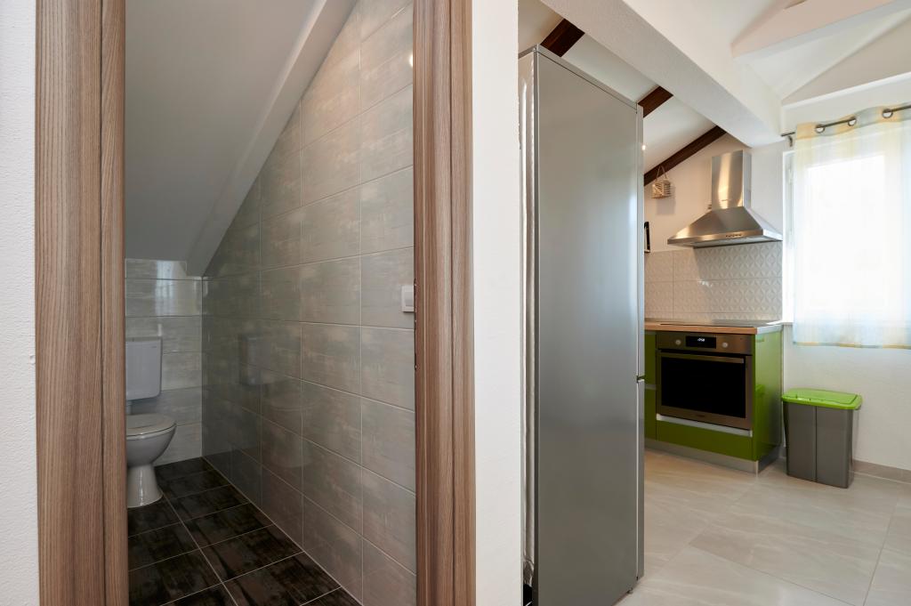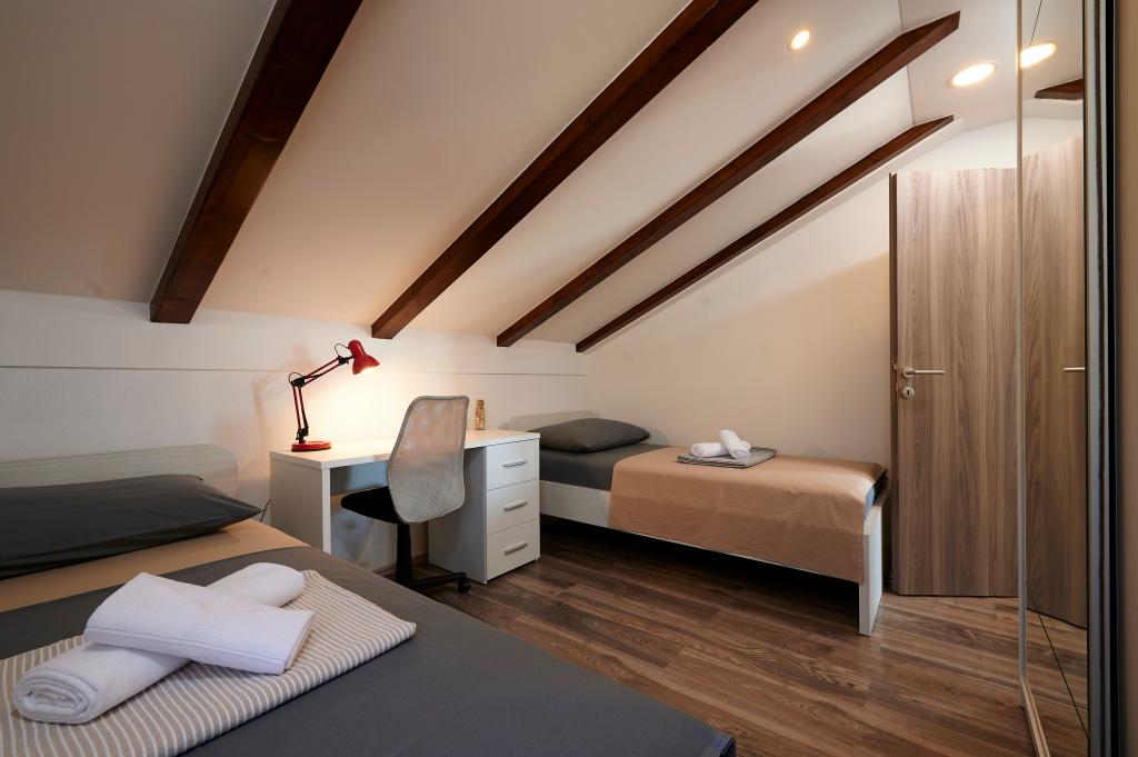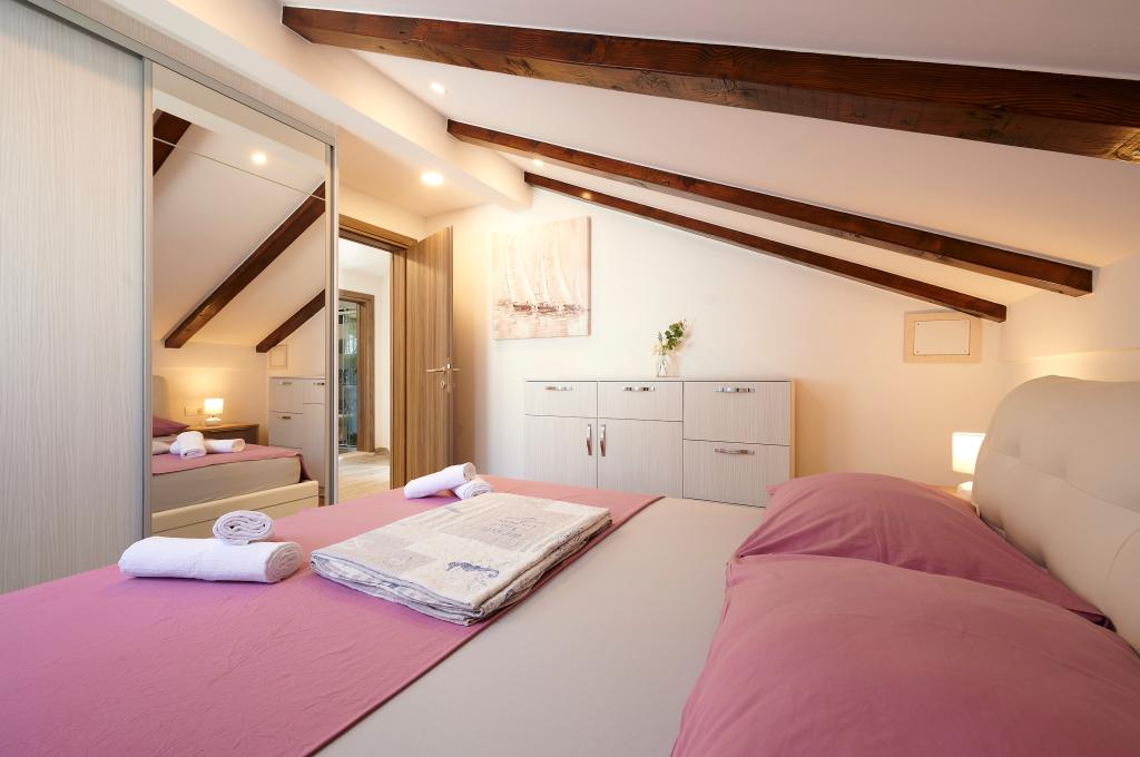 Apartamentele Magdalena sunt confortabile și bine echipate. Sunt situate pe insula Čiovo, la doar 1,3 km de centrul orașului vechi Trogir. Au o vedere frumoasă la mare și la împrejurimi. Apartamentele sunt situate într-un cartier liniștit, la doar 250 m de cea mai apropiată plajă. Restaurante, un supermarket, un bancomat, o stație de autobuz și o linie de vapor către centru se află la 400 m de apartament. Apartamentul este accesibil printr-un drum care urcă un deal. Dotările includ aer condiționat, parcare gratuită, WiFi, o bucătărie complet utilată, TV prin cablu, mașină de spălat, mașină de spălat vase... Apartamentele au 75 și 85 de metri pătrați, plus terase exterioare cu fotolii confortabile și leagăne suspendate în formă de ou. Apartamentul 1 este situat la primul etaj și are trei dormitoare, în timp ce apartamentul 2 este la etajul al doilea și are două dormitoare și două toalete. Totul este frumos decorat, curat și ordonat. Apartamentele se află la 5 minute de mers pe jos de plajă și la 15 minute de mers pe jos de centrul orașului Trogir. Plaja din apropiere este punctul de plecare pentru linia de vapor care merge spre centrul orașului, călătoria durează 10 minute.