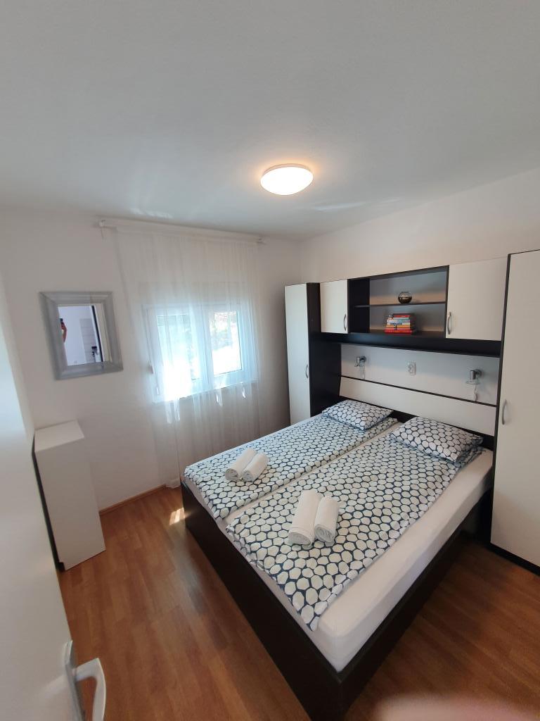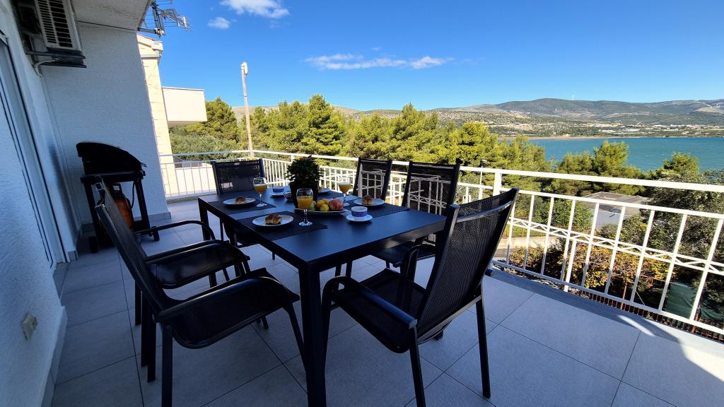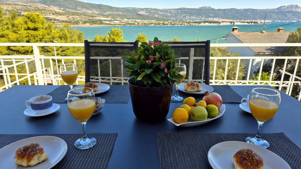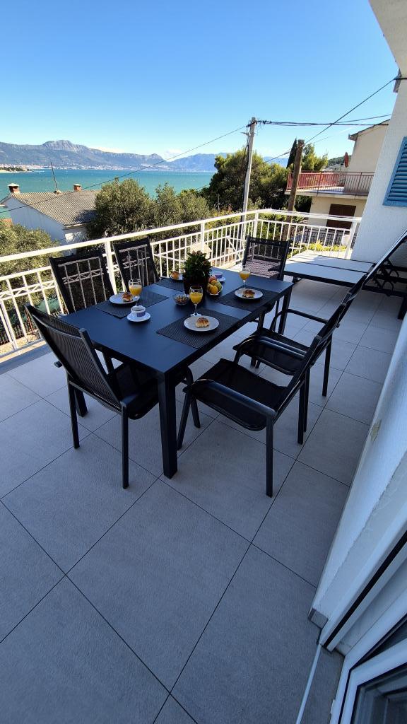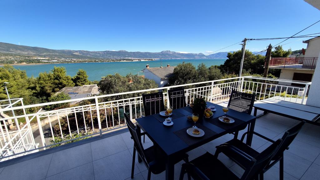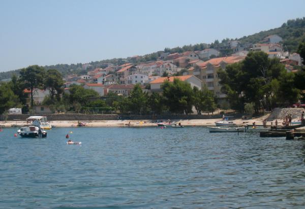 Apartamentele MIRTA sunt situate în partea de nord a insulei Čiovo, la 1,8 kilometri est de podul care leagă orașul vechi Trogir cu Čiovo. Sunt situate intr-un loc linistit, langa o padure de pini si mare. Plaja cu pietriș este situată la poalele apartamentului. Apartamentul 1 este situat la primul etaj al unei case inconjurate de verdeata. Este compus din doua dormitoare, living cu sufragerie, bucatarie si baie. Este echipat pentru a găzdui 4-6 persoane. Dormitoarele au pat dublu, iar livingul are un pat suplimentar pentru două persoane. Apartamentul 2 este situat la parter. Este compus din doua dormitoare (paturi duble), living cu sufragerie si bucatarie, si baie. Apartamentele au parcare proprie, intrare separată și grătar cu gaz. Ambele apartamente au o terasă cu vedere frumoasă la mare și mobilier de grădină. Terasele sunt perfecte pentru distracția pe tot parcursul zilei și socializarea în aer curat.