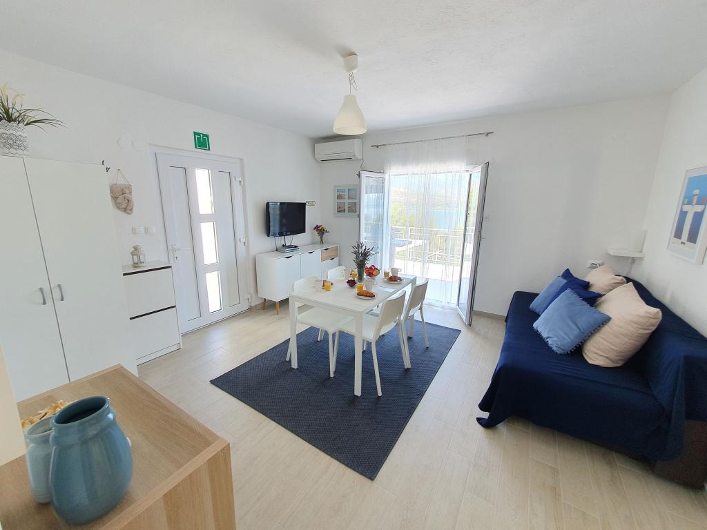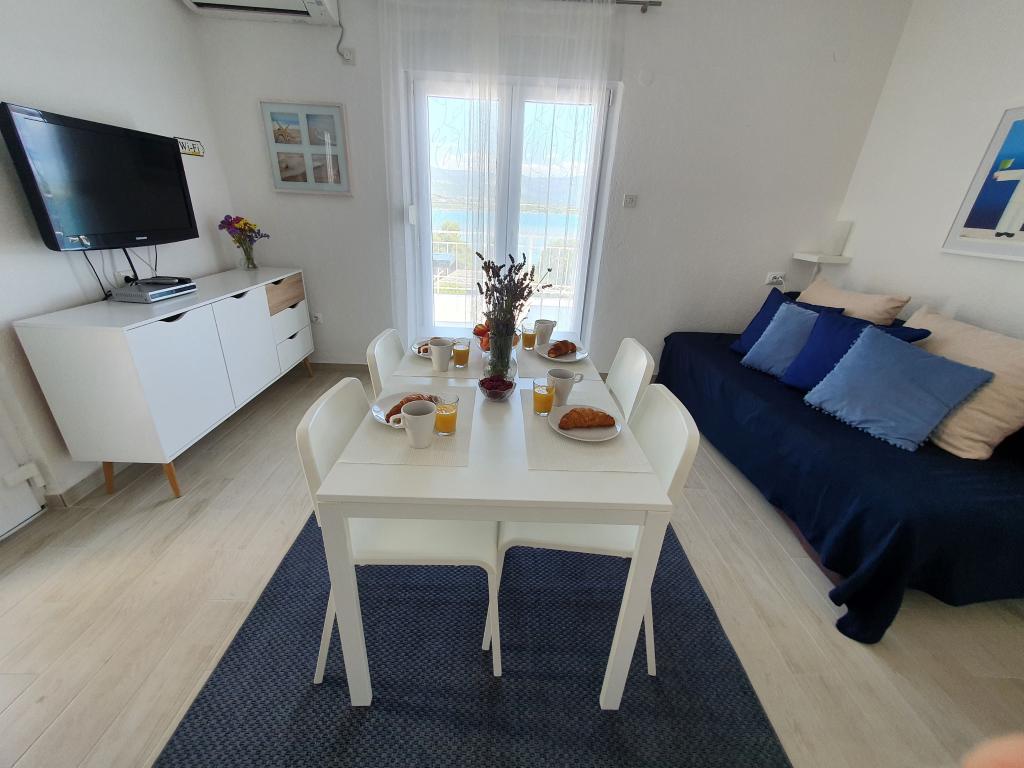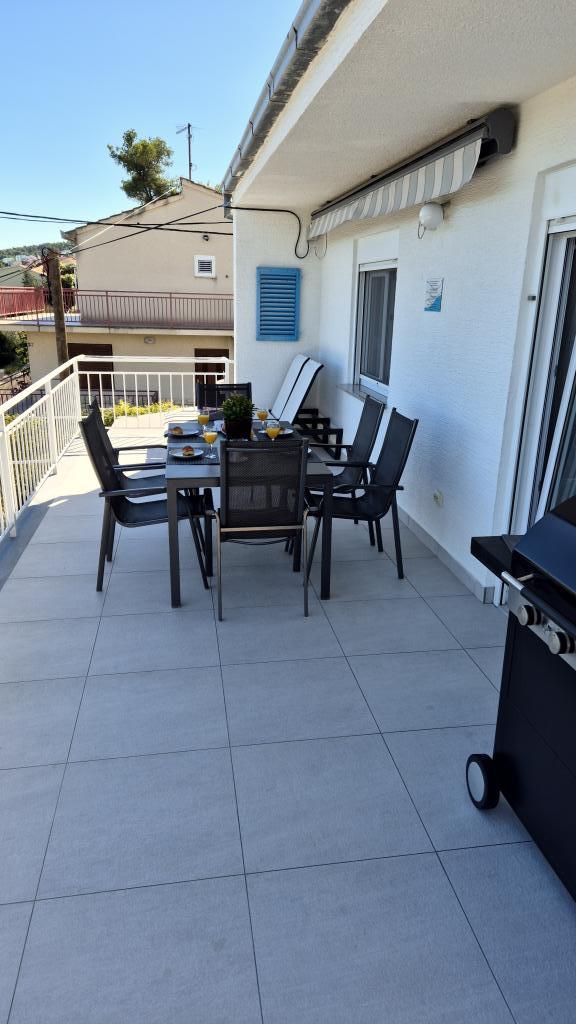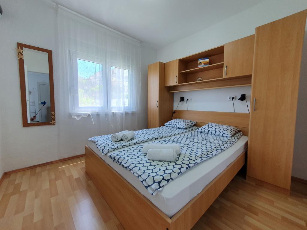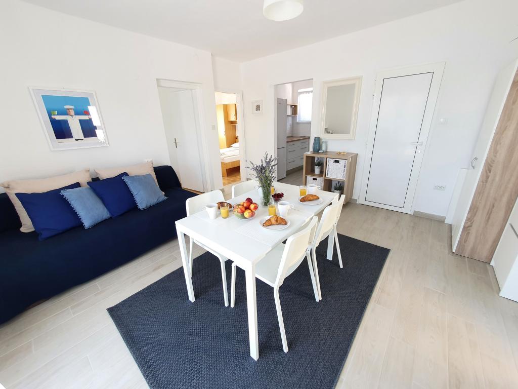 Apartamentele MIRTA sunt situate în partea de nord a insulei Čiovo, la 1,8 kilometri est de podul care leagă orașul vechi Trogir cu Čiovo. Sunt situate intr-un loc linistit, langa o padure de pini si mare. Plaja cu pietriș este situată la poalele apartamentului. Apartamentul 1 este situat la primul etaj al unei case inconjurate de verdeata. Este compus din doua dormitoare, living cu sufragerie, bucatarie si baie. Este echipat pentru a găzdui 4-6 persoane. Dormitoarele au pat dublu, iar livingul are un pat suplimentar pentru două persoane. Apartamentul 2 este situat la parter. Este compus din doua dormitoare (paturi duble), living cu sufragerie si bucatarie, si baie. Apartamentele au parcare proprie, intrare separată și grătar cu gaz. Ambele apartamente au o terasă cu vedere frumoasă la mare și mobilier de grădină. Terasele sunt perfecte pentru distracția pe tot parcursul zilei și socializarea în aer curat.