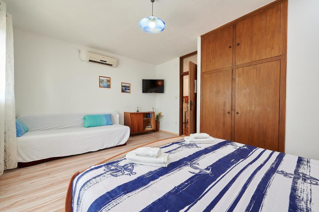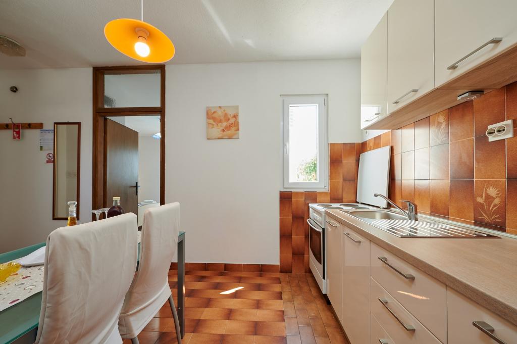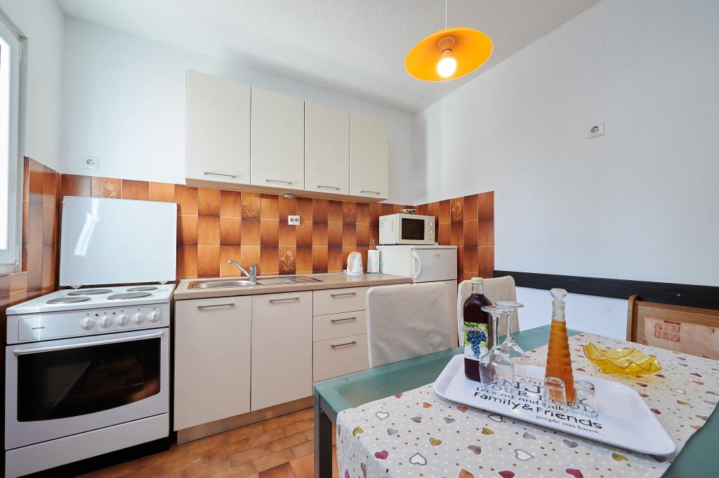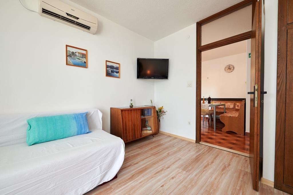 Apartamentele sunt situate pe insula Ciovo 300 de metri de orașul vechi și la 50 de metri de plajă. Apartamentele sunt complet mobilate și cu aer condiționat, cu intrare proprie, balcoane private cu vedere la mare si parcare. Parter apartament A2 +1 (cu o singură cameră), care are o capacitate de până la 3 persoane, iar la primul etaj al unui A4 apartament (doua camere), care are o capacitate de pana la 4 persoane. Există o posibilitate de inchiriere doua apartamente atat pentru un maxim de 7 persoane. Aer conditionat si taxa de statiune sunt incluse.