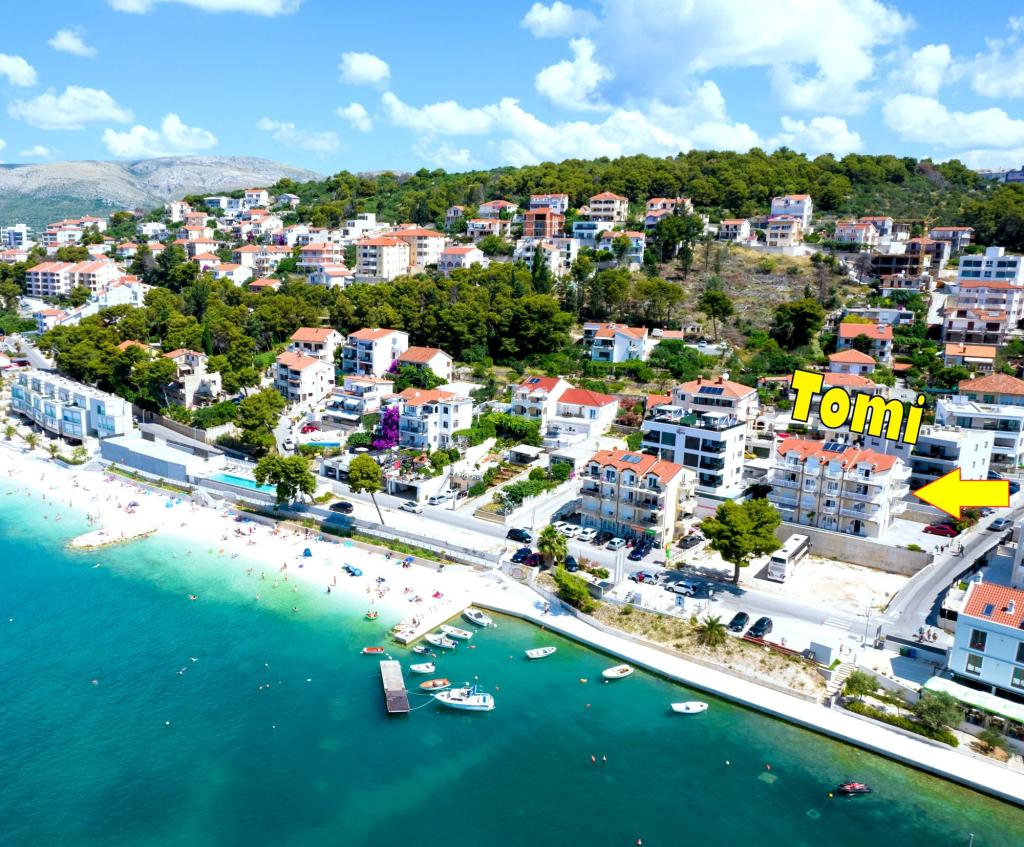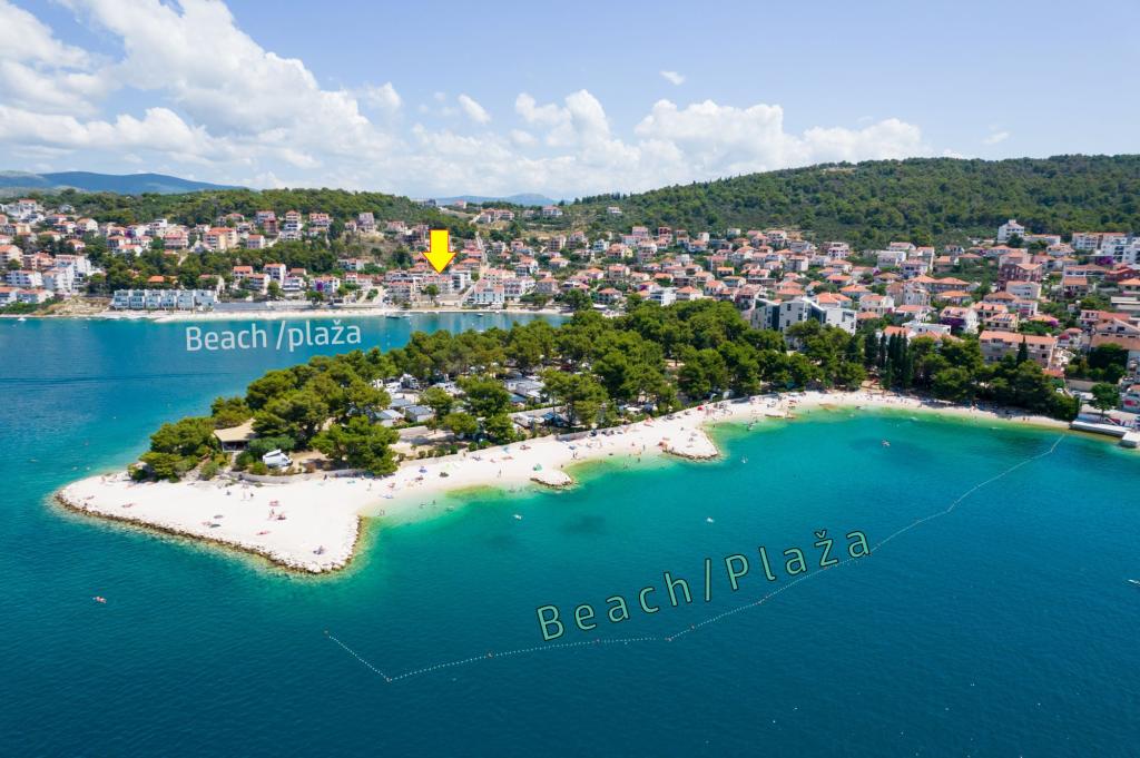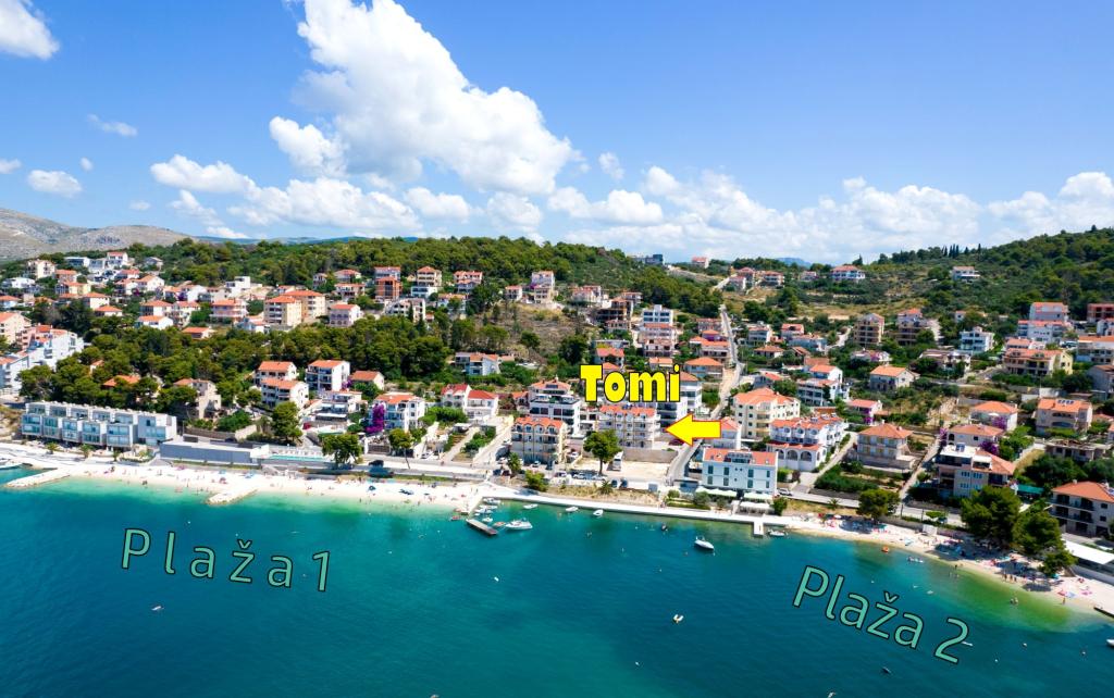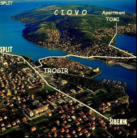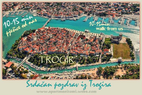 Casa noastră (Thomas Apartamentele) sunt situate lângă mare și nisip (pietriș), plaja de pe insula, în municipiul de Trogir. Trogir istoric al orașului vechi este la numai 1500 de metri de casa noastră, sau de mers pe jos de-a lungul 10 - 15min. În plus față de ceea ce este cunoscut ca un oras frumos, care este un sit al Patrimoniului Mondial sub protecția UNESCO, muzee, monumente istorice, legende, povești, case de piatra, clopotnite, bărci, vele și apusuri de soare frumos ... Trogir este, de asemenea, cunoscut pentru cunoscut pentru ei nopți de vară plină de viață. 50 m sub apartamentul nostru există o plajă de nisip. Nisip plaje unul după altul, în lungime de 2-3 km. Plaja are umbră pentru cei care nu le place lumina directă a soarelui. Alături de casa noastră există un magazin cu alimente. Pentru oaspeții noștri, avem locuri de parcare pentru masina.