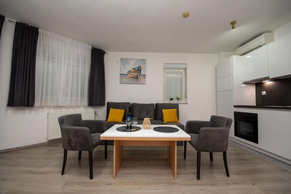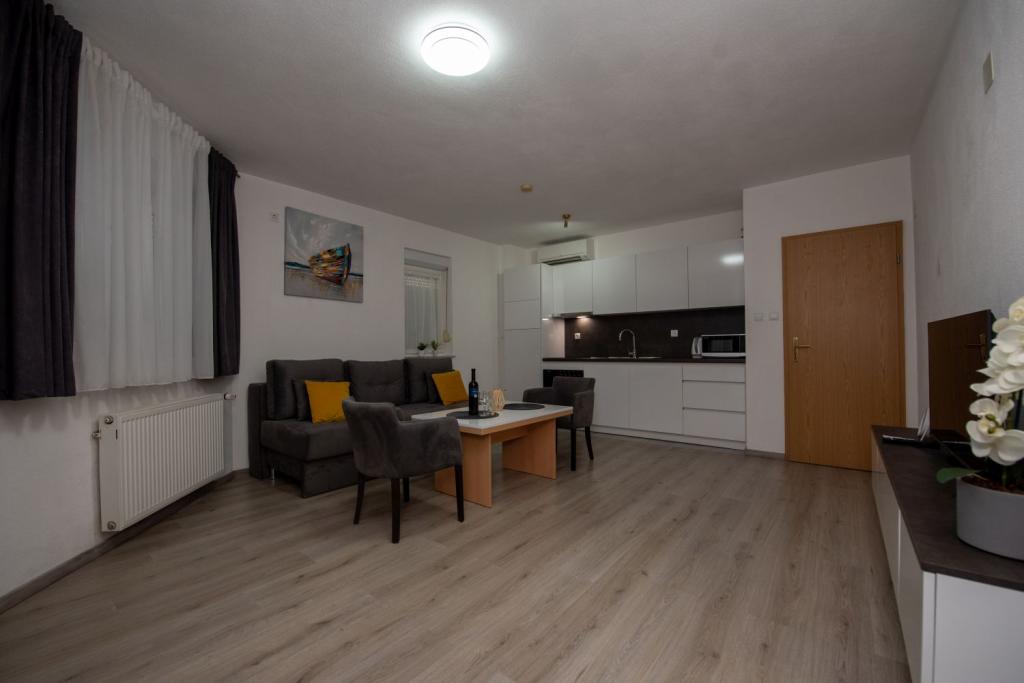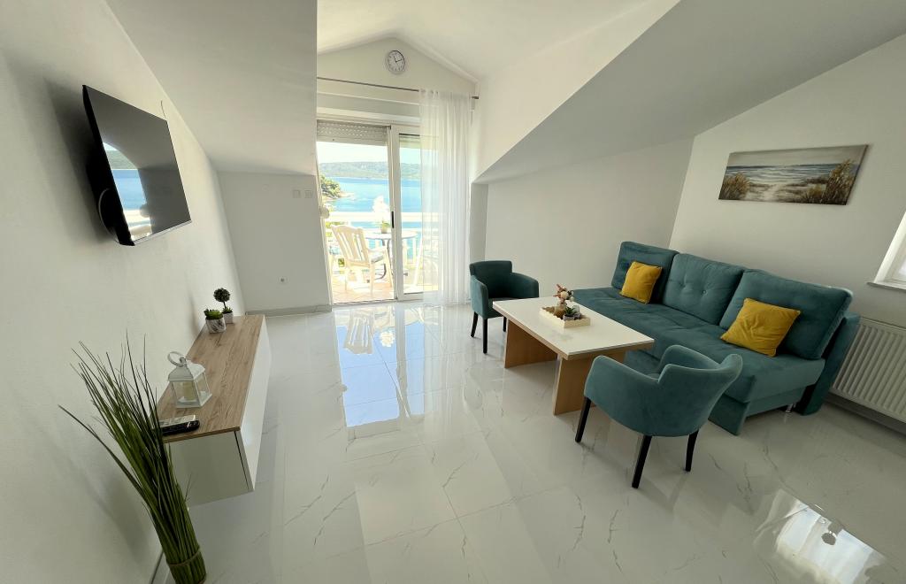 Proprietari foarte drăguți și prietenoși. Apartamentul este frumos, curat, cu aer condiționat, cu terasă și vedere la mare. Unitatea de cazare este situată chiar lângă o plajă cu pietriș foarte frumoasă, iar alimentele sunt chiar lângă cazare. 2-3 minute de brutărie și de taxiul care merge spre Trogir. 15-20 minute de mers pe jos pana in centru si plaja Copacabana. Mulțumesc.