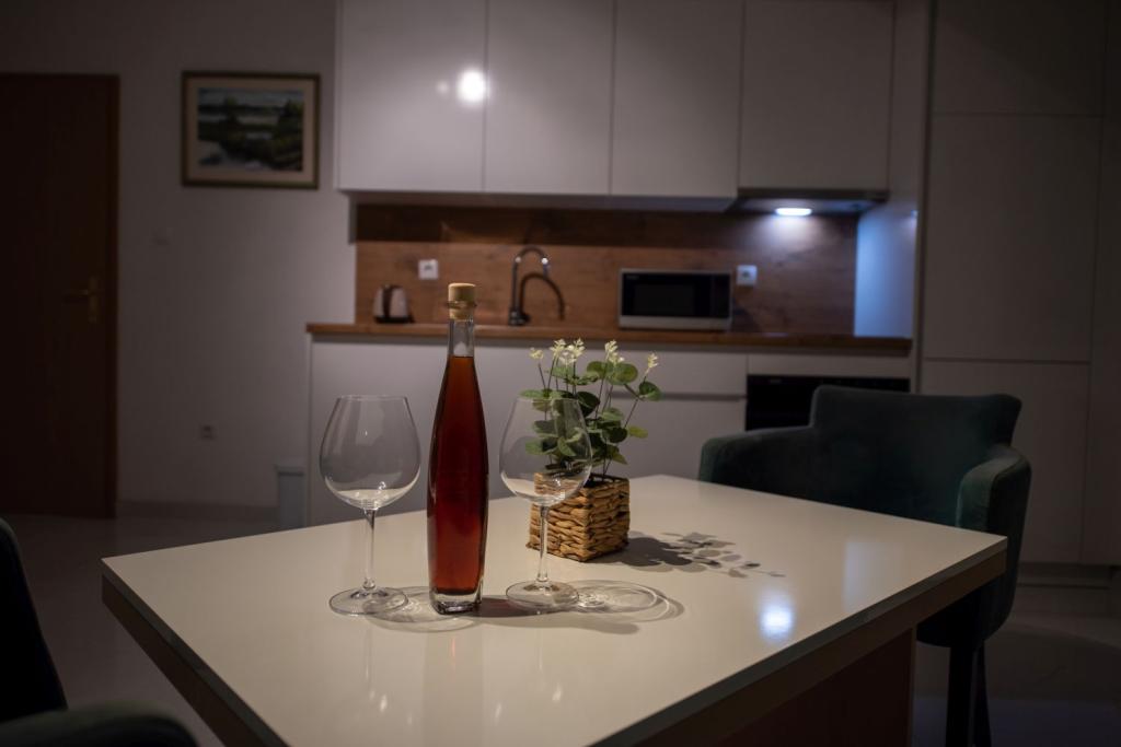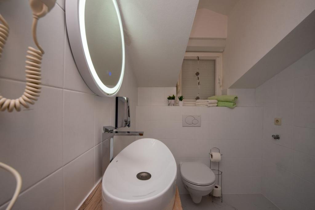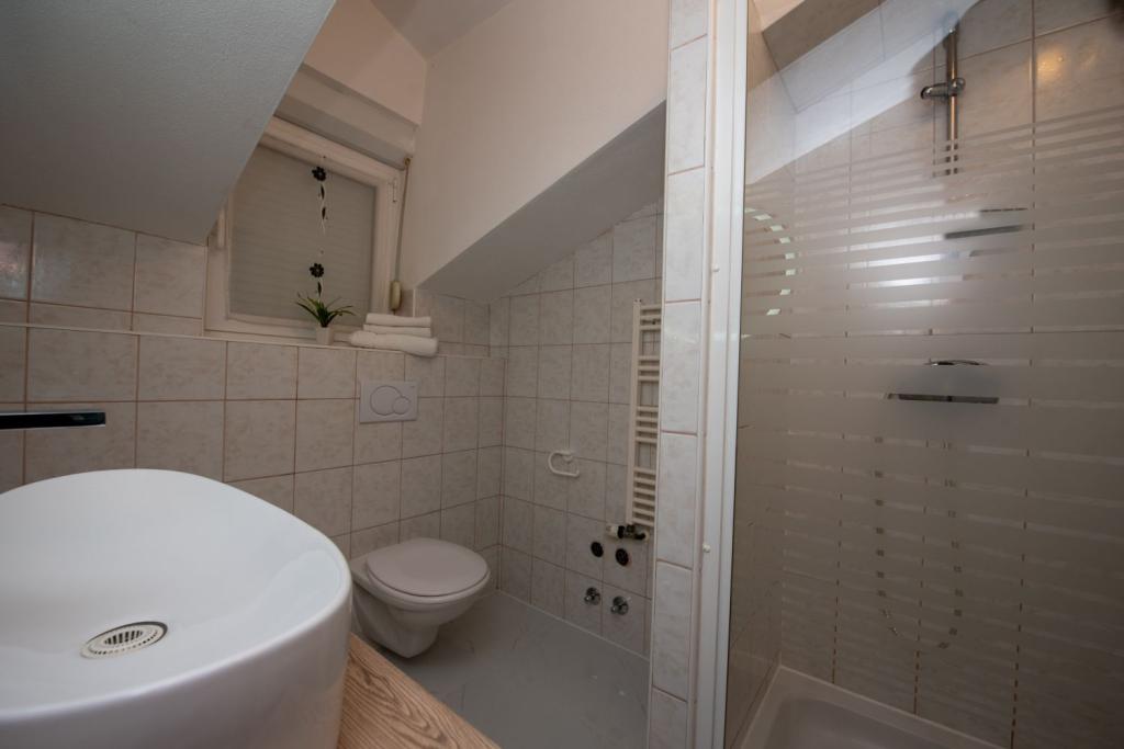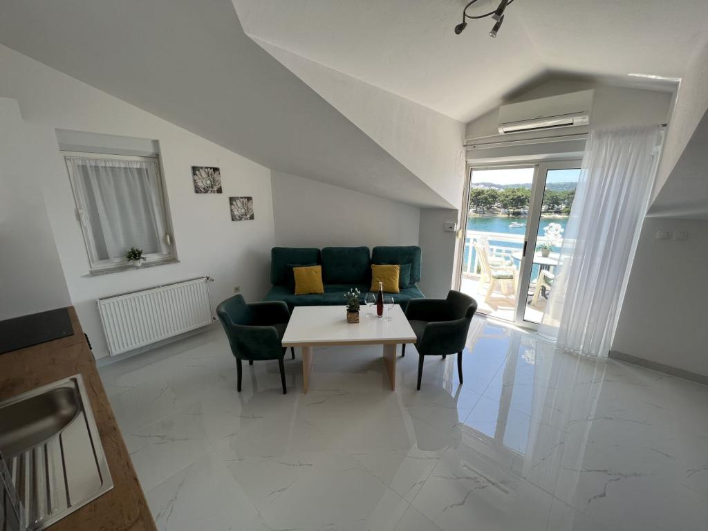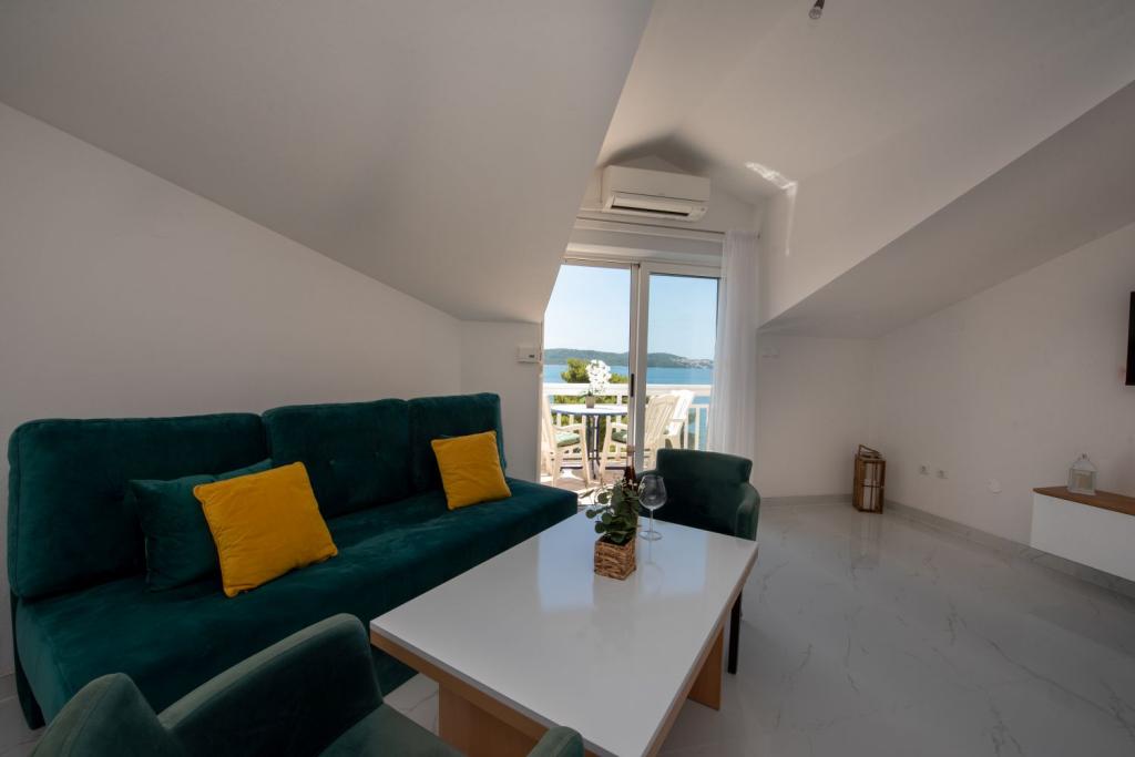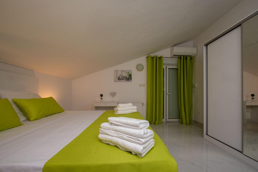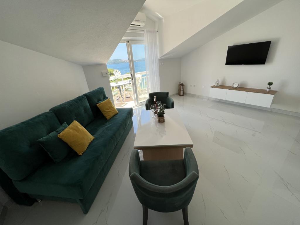 Destul de nouă clădire. Patul a fost foarte bun, în general curat și frumos, gazdă a fost foarte frumos. Magazin într-adevăr aproape 30m. Poate doar minus un pic de o plimbare deluroasă la Trogir, scurtătate oraș 1000m, foarte frumos. Regiunea este, de asemenea, fantastic și pe timp de noapte, deoarece oferă mese și băuturi cu alți prieteni, și baruri pe plajă.