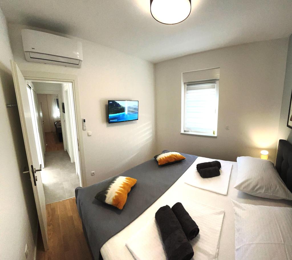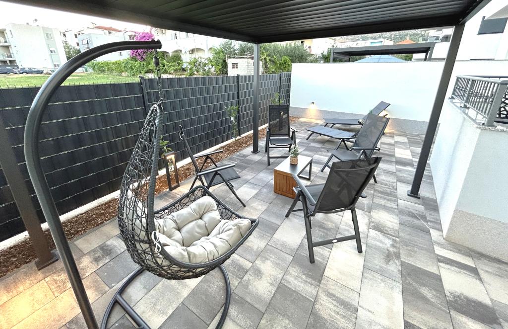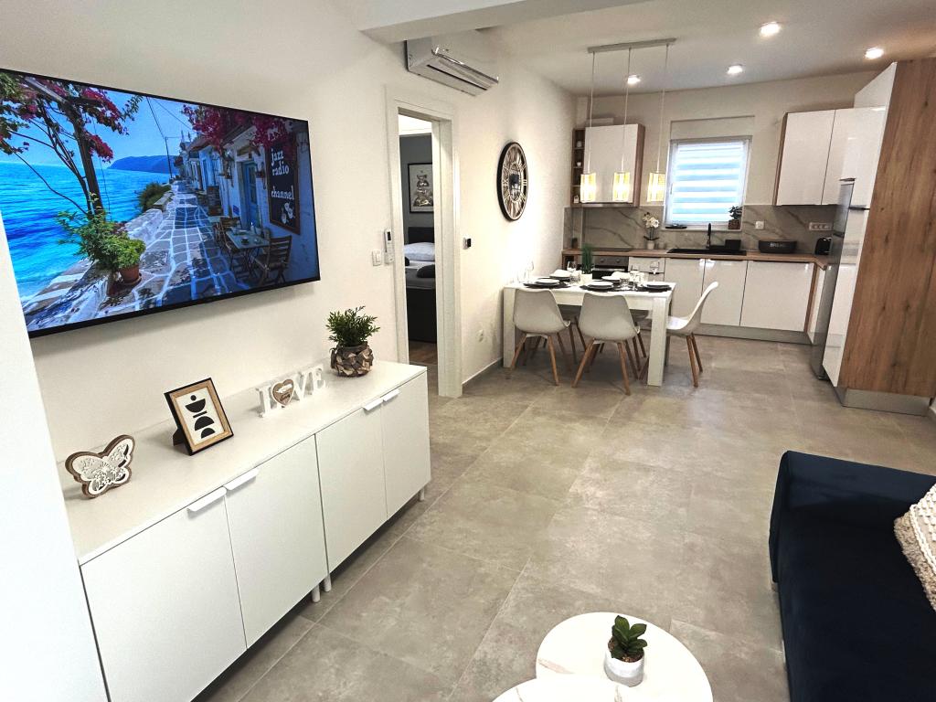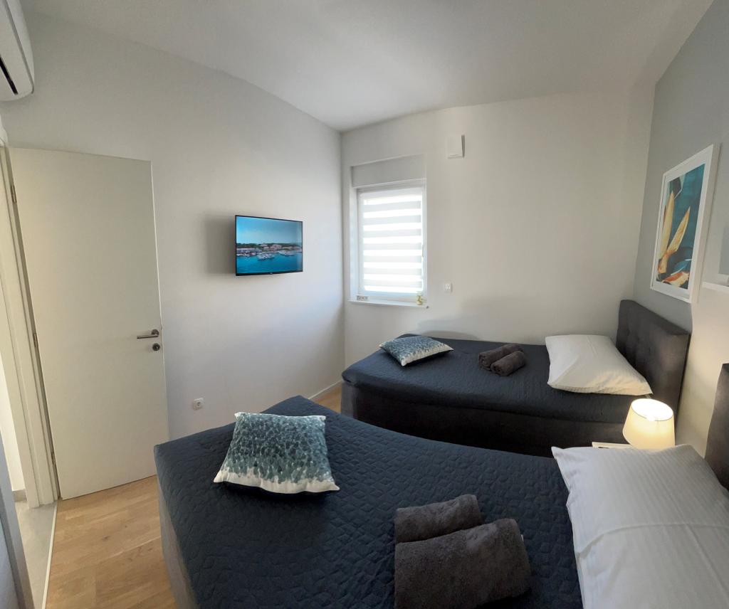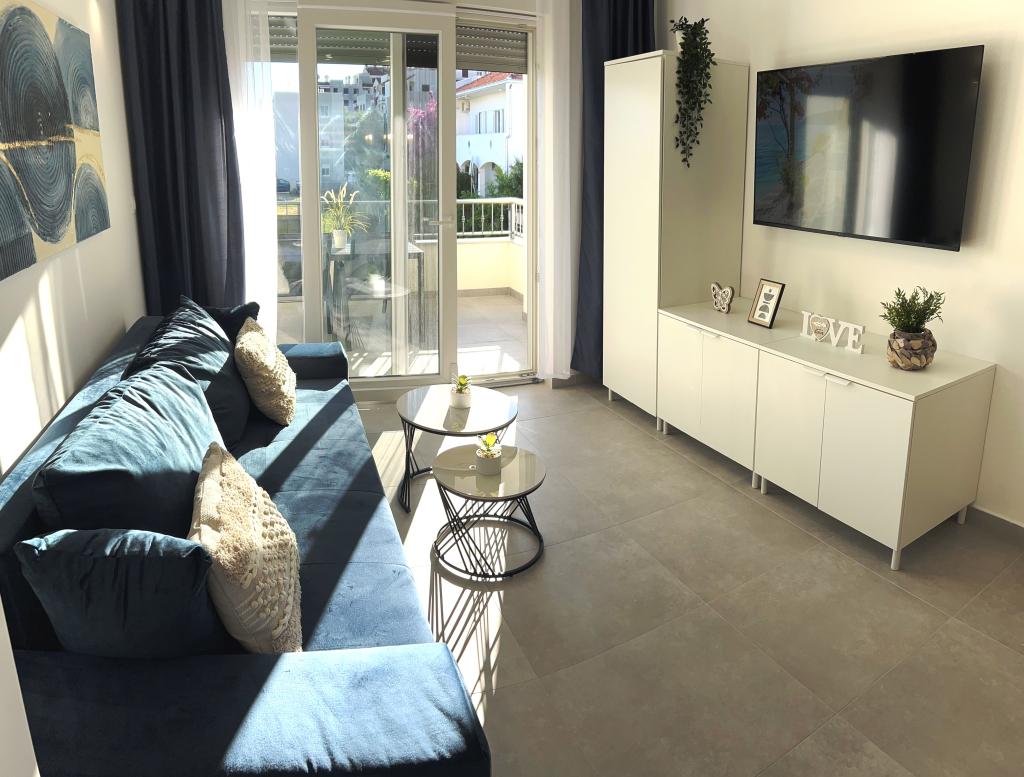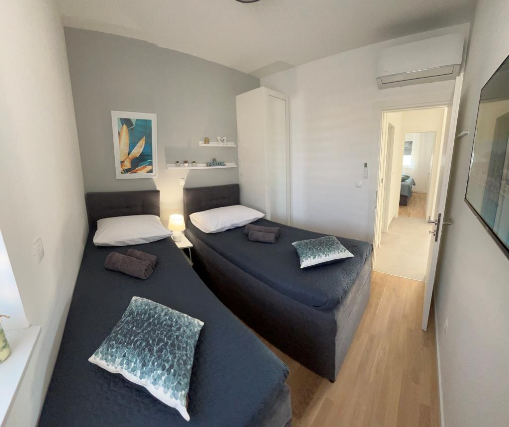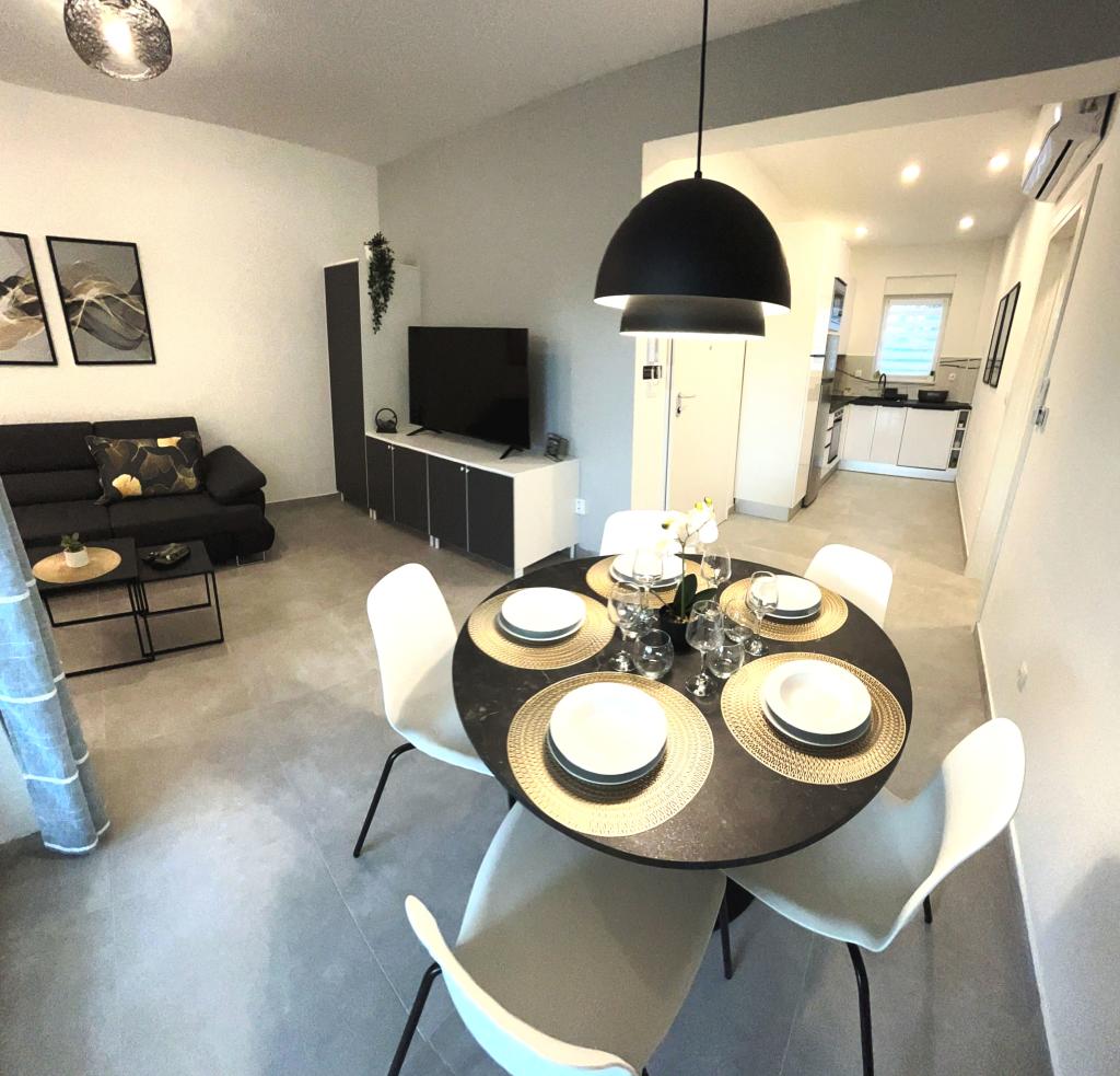 Apartamentele Town Trogir sunt situate pe continentul orașului Trogir, într-o locație excelentă, la doar 400 m de centrul vechi al orașului și la 1000 m de plaja nouă a orașului. Plaja poate fi accesată printr-o promenadă de-a lungul mării. Toate facilitățile principale se află la câțiva pași, o plimbare de 5 până la 10 minute. Apartamentele Town Trogir sunt noi și sunt situate într-o mică clădire rezidențială cu 6 apartamente. Apartamentele au o suprafață de aproximativ 60 m2. Apartamentele sunt situate la parter, etajul 1 și etajul 2. Apartamentele sunt decorate modern și complet utilate. Apartamentele au 2 dormitoare, un living cu sufragerie, o bucătărie complet utilată, o baie și terase mari cu mobilier de grădină la parter. Livingul și dormitoarele au unități de răcire separate. Parcarea gratuită este asigurată în fața clădirii. Lenjeria de pat și prosoapele sunt incluse. WiFi este gratuit. Taxa de turist este inclusă în preț.