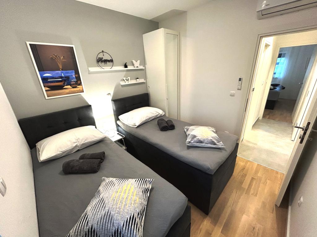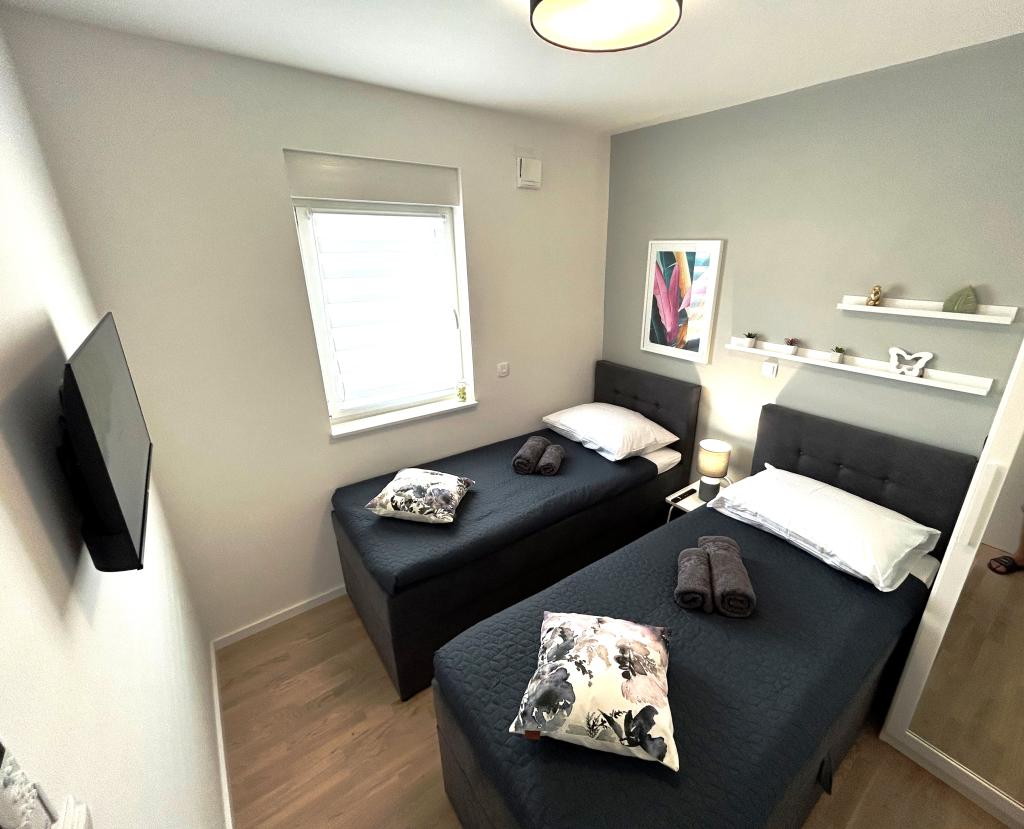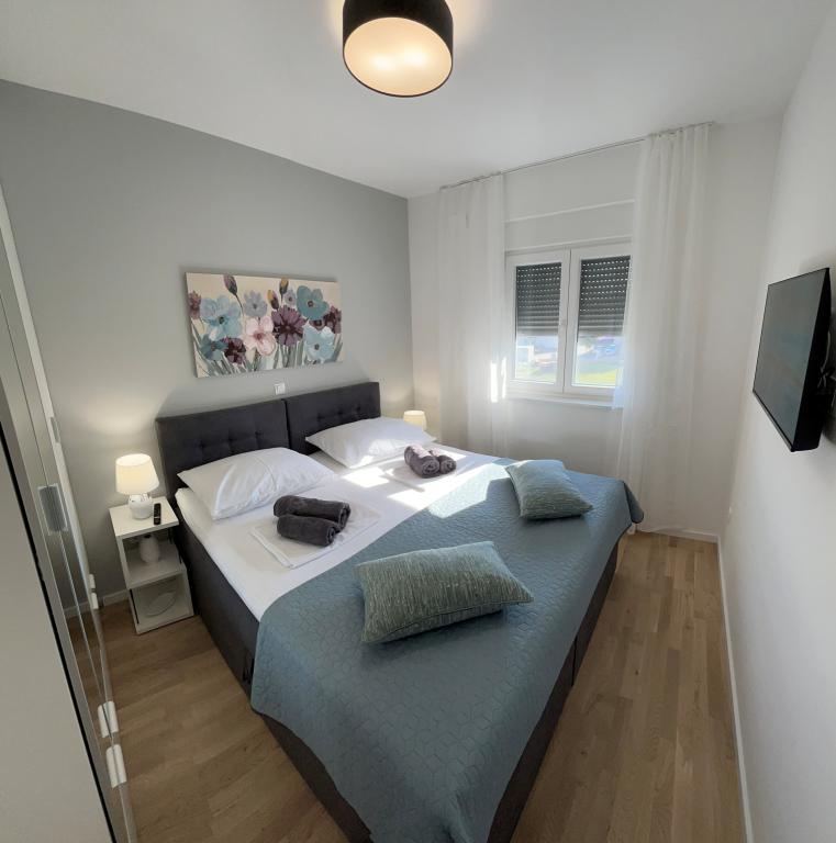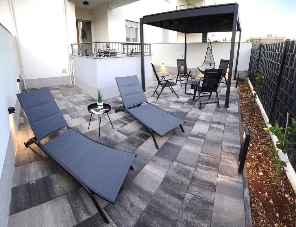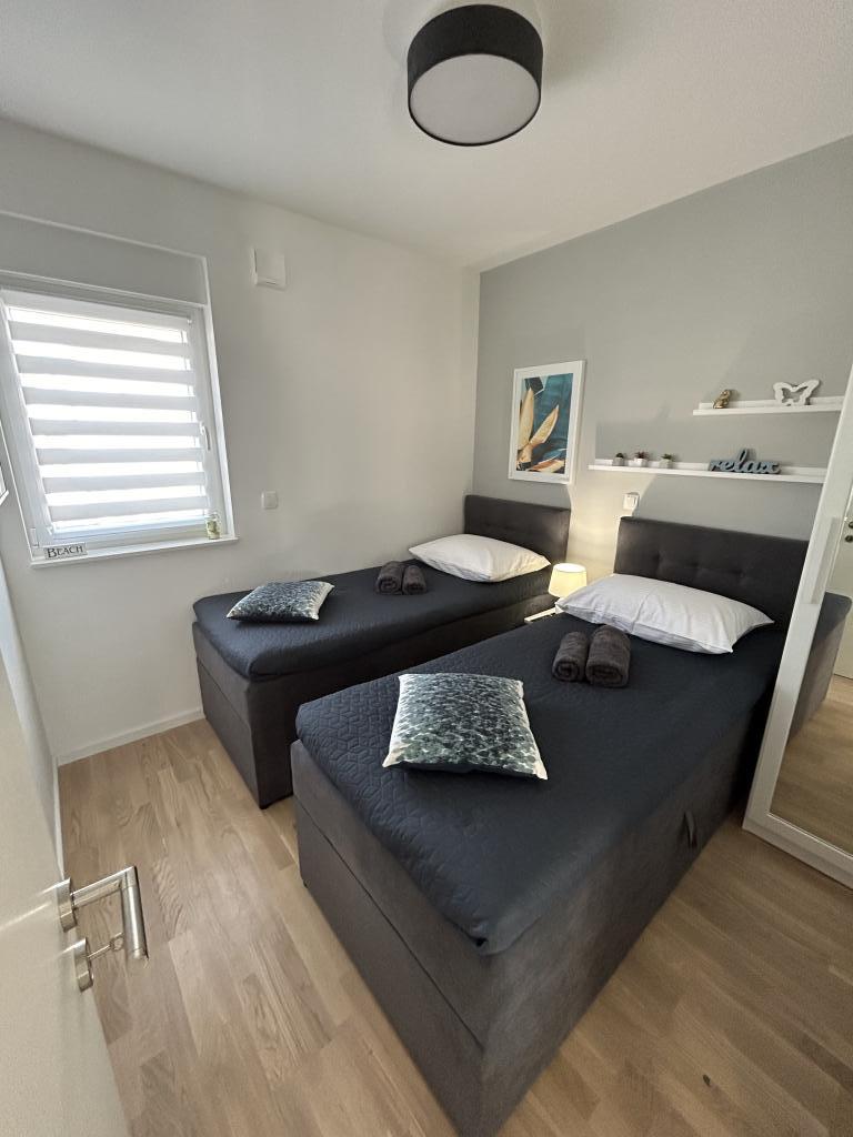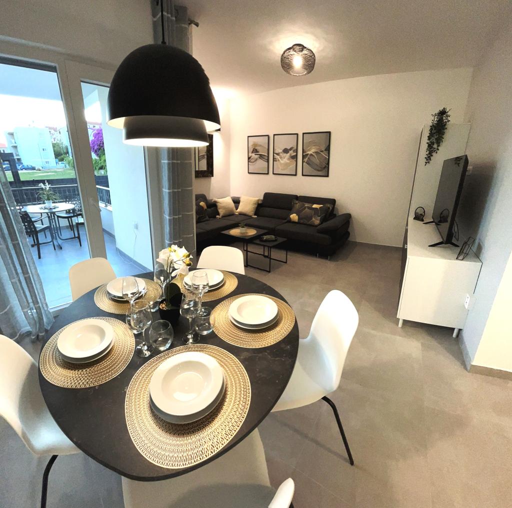 Apartamentele Town Trogir sunt situate pe continentul orașului Trogir, într-o locație excelentă, la doar 400 m de centrul vechi al orașului și la 1000 m de plaja nouă a orașului. Plaja poate fi accesată printr-o promenadă de-a lungul mării. Toate facilitățile principale se află la câțiva pași, o plimbare de 5 până la 10 minute. Apartamentele Town Trogir sunt noi și sunt situate într-o mică clădire rezidențială cu 6 apartamente. Apartamentele au o suprafață de aproximativ 60 m2. Apartamentele sunt situate la parter, etajul 1 și etajul 2. Apartamentele sunt decorate modern și complet utilate. Apartamentele au 2 dormitoare, un living cu sufragerie, o bucătărie complet utilată, o baie și terase mari cu mobilier de grădină la parter. Livingul și dormitoarele au unități de răcire separate. Parcarea gratuită este asigurată în fața clădirii. Lenjeria de pat și prosoapele sunt incluse. WiFi este gratuit. Taxa de turist este inclusă în preț.