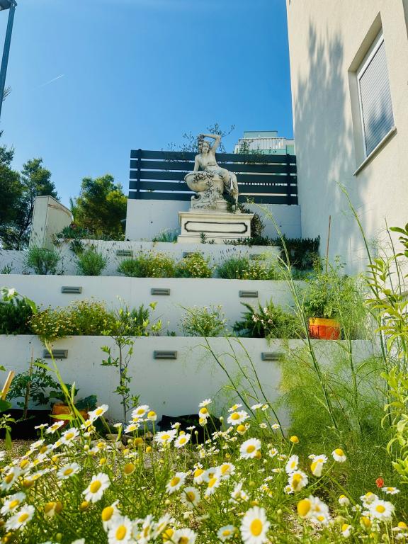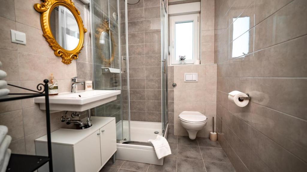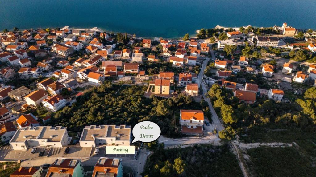 Imobilul PADRE DANTE este recent dotat cu un apartament și camere cu baie, toate noi, cu loc de parcare inclus, sub supraveghere video. Imobilul se află la 150 m de plajă, magazin, restaurant (restaurantul Hotelului Sv.križ este deschis între 6 și 10 luni), dentist, farmacie, iar centrul orașului Trogir este la doar aproximativ 4 km de proprietate și la aproximativ 6 km de aeroport.