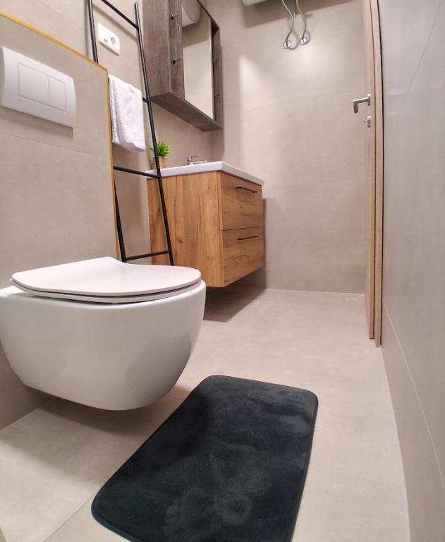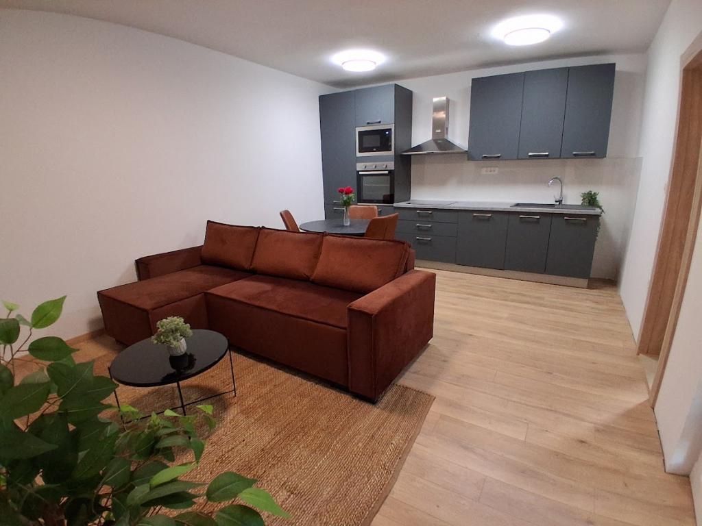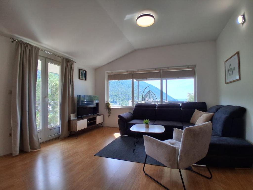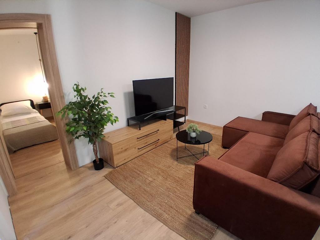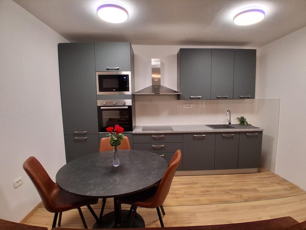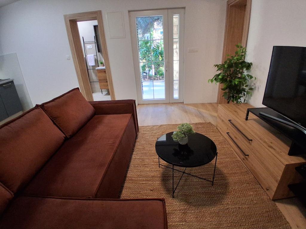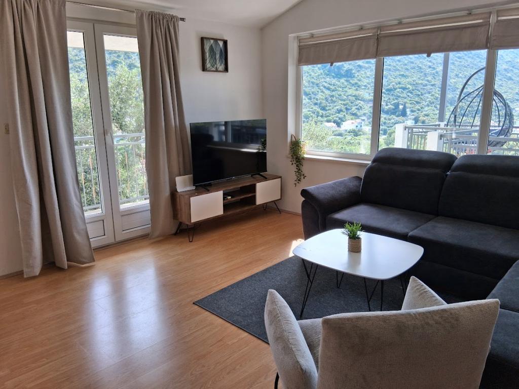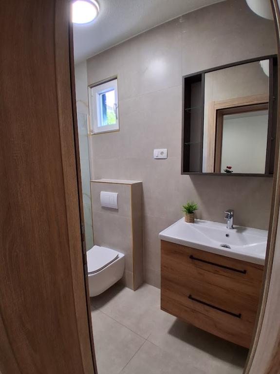 Apartament mare cu două dormitoare, complet și modern echipat, cu vedere la mare și terasă mare acoperită - întregul etaj și apartament cu un dormitor la parter, cu o terasă minunată. APARTAMENT CU DOUĂ DORMITOARE este format din două dormitoare cu paturi duble, o baie, bucătărie spațioasă și living cu canapea care se transformă în pat, dacă este necesar. APARTAMENT CU UN DORMITOR este format dintr-o cameră cu pat dublu plus pat suplimentar pentru o a treia persoană. Există, de asemenea, posibilitatea unei canapele extensibile în living. La 5-7 minute de plaja frumoasă și de barul de pe plajă; Distanța până la centru este de aproximativ 10 minute de mers pe jos. Prețul include parcare, WI-FI, aer condiționat în fiecare cameră, prosoape, mașină de spălat și mașină de spălat vase, toaletă, fierbător electric, aparat de cafea (apartament cu două dormitoare), uscător de păr, fier de călcat și masă de călcat (apartament cu două dormitoare).