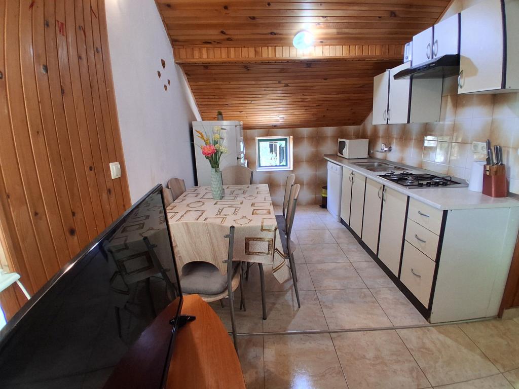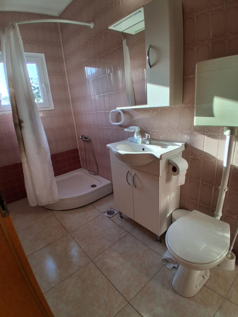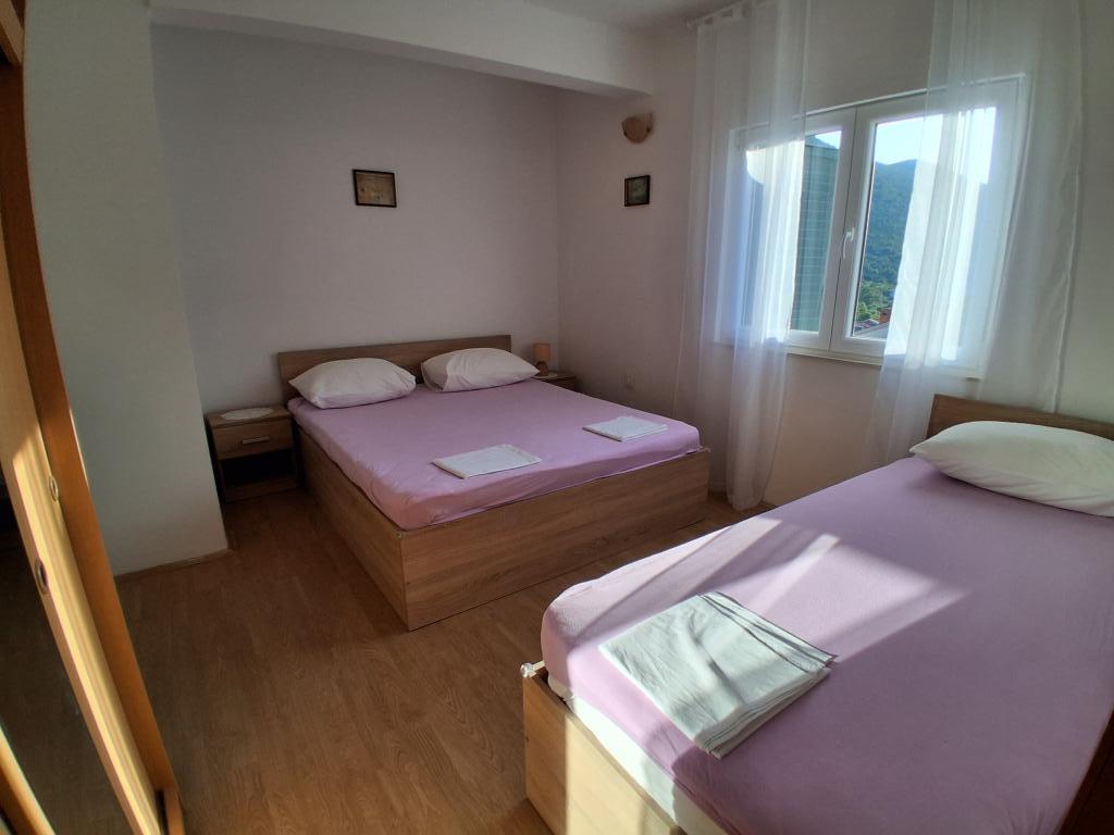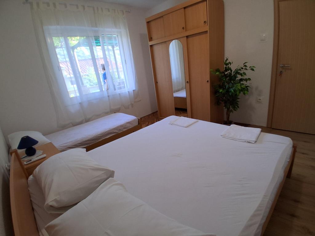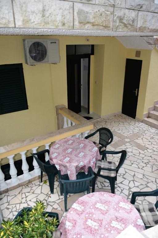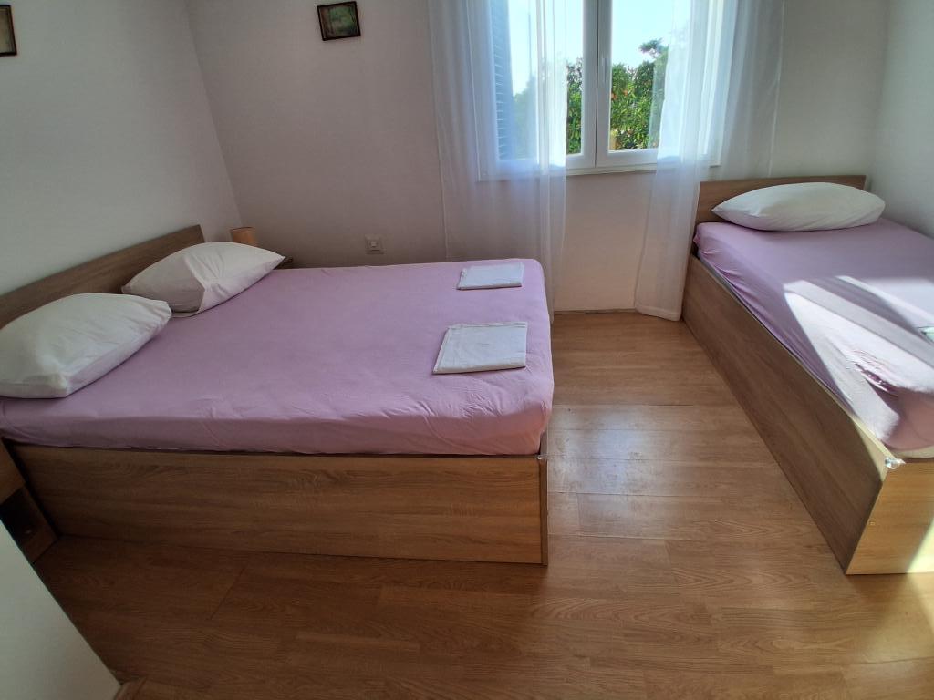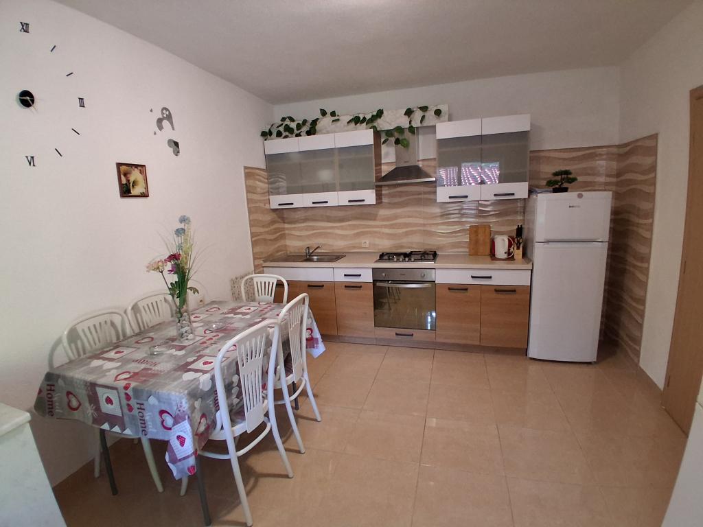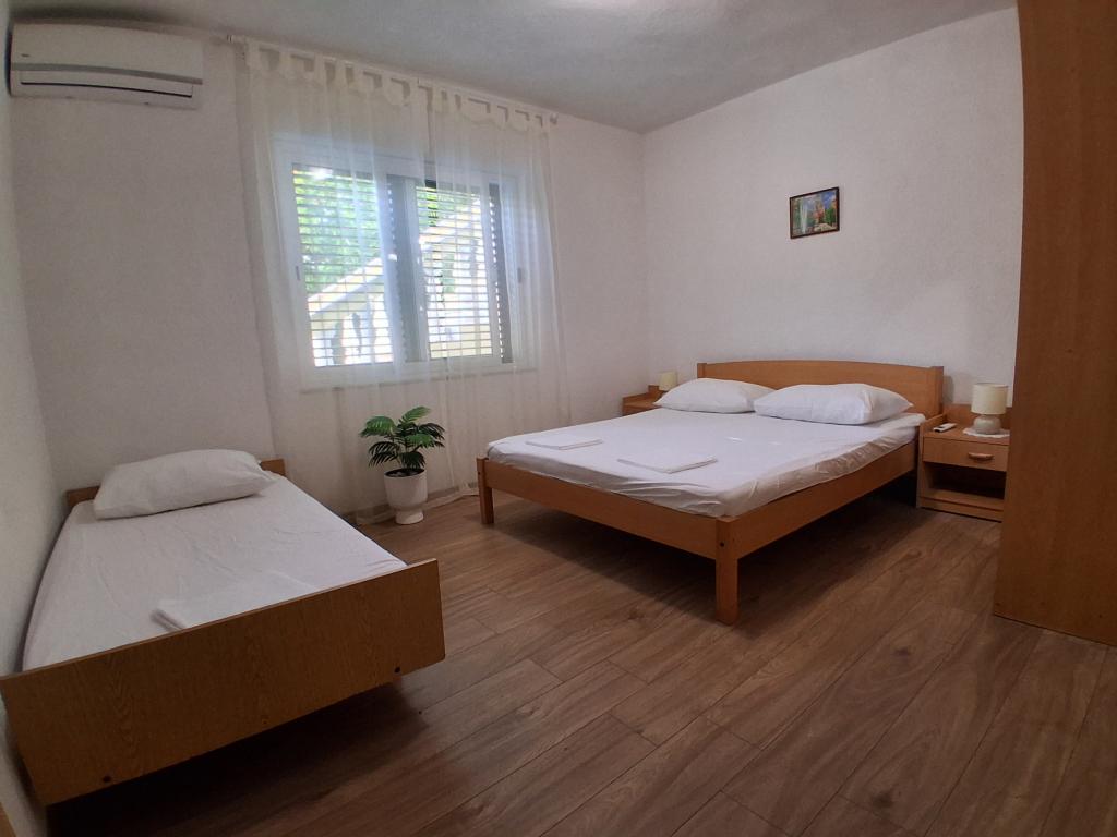 Apartament A1. - Situat la parter. Se compune din 3 dormitoare cu baie proprie, capacitate de 6 plus 2 paturi. Bucatarie complet echipata. Terasă cu TV, gril. Apartamentul poate fi inchiriat ca camere cu utilizare bucătărie. Apartament A2. - Situat la primul etaj. Acesta constă dintr-un dormitor cu trei paturi, baie, living, bucatarie, TV. canapea cu un pat 140x200cm. , Balcon, terasă. Aerul condiționat este suplimentar plătește 5 € pe zi. Grill este comună pe teren. Apartament A3. - Situat la primul etaj. Acesta constă dintr-un dormitor cu trei paturi, baie, bucatarie, living cu TV și canapea extensibilă cu pat 140x200cm, balcon, terasă. Aerul condiționat este suplimentar plătește 5 € pe zi. Grill este comună pe teren. Apartament A4. - Situat la etajul al doilea. Se compune din trei dormitoare, capacitate 6 plus doua doua bai situate în hol, bucatarie, TV, balcon, terasă. Parcare. Situat la 50 de metri de casa