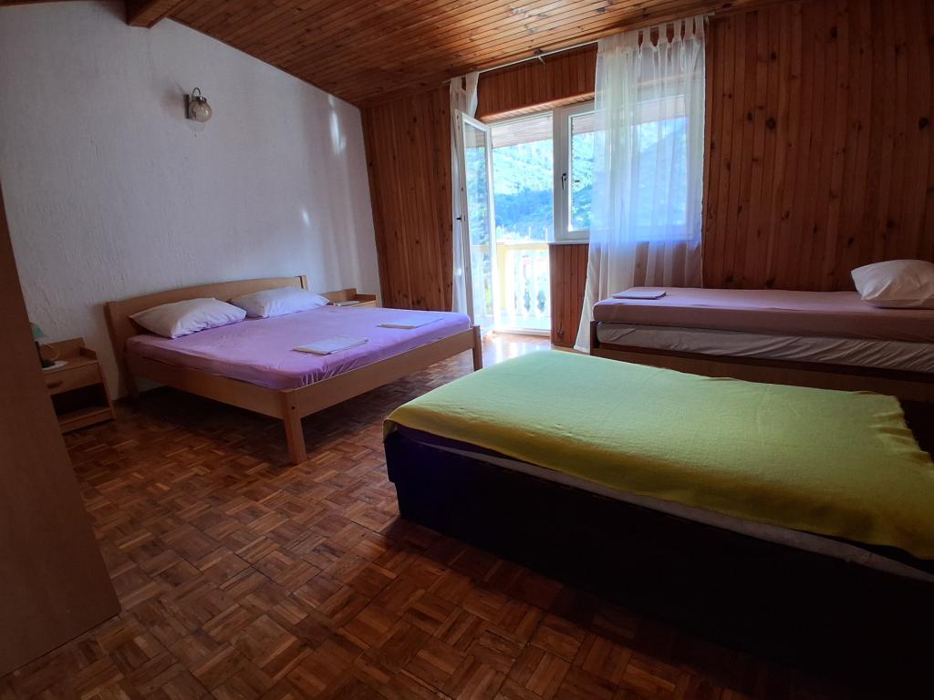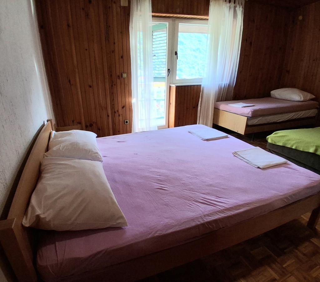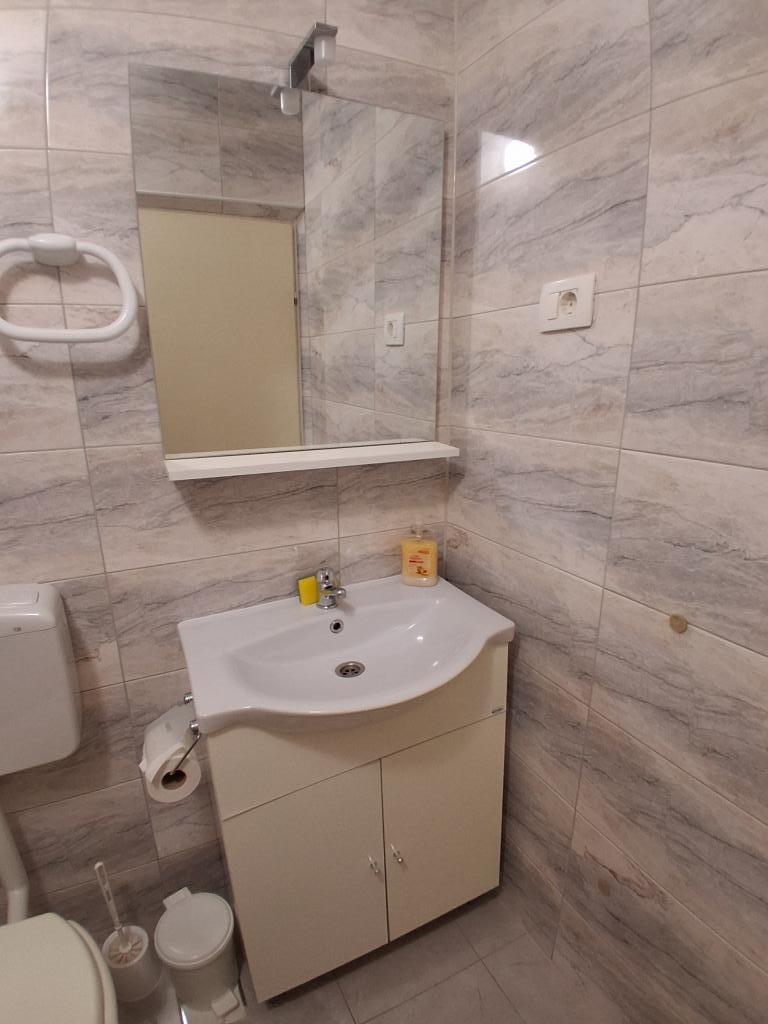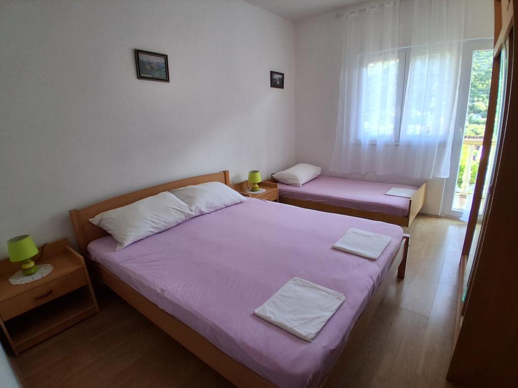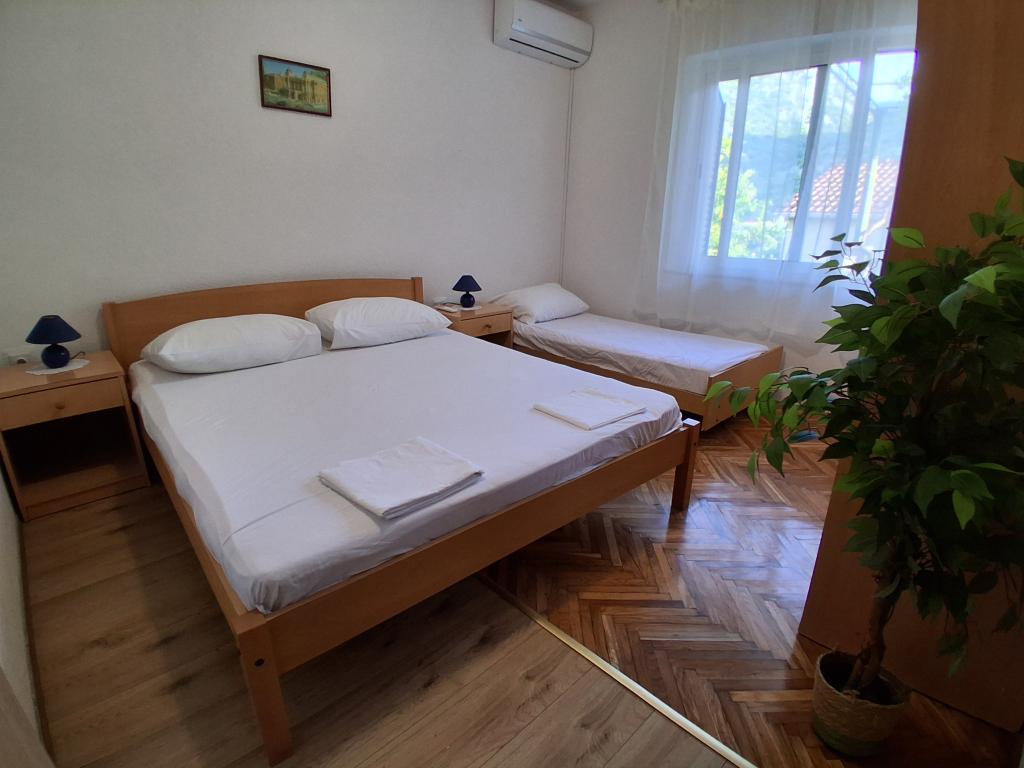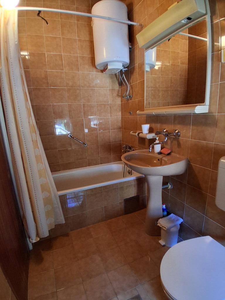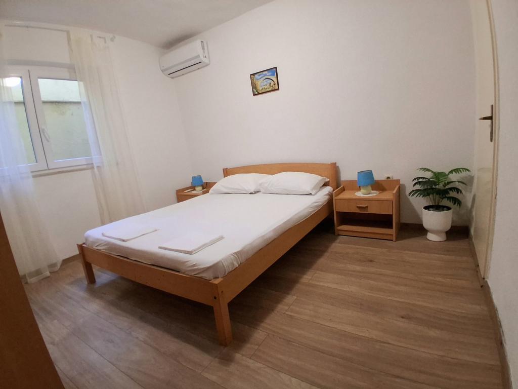 Apartament A1. - Situat la parter. Se compune din 3 dormitoare cu baie proprie, capacitate de 6 plus 2 paturi. Bucatarie complet echipata. Terasă cu TV, gril. Apartamentul poate fi inchiriat ca camere cu utilizare bucătărie. Apartament A2. - Situat la primul etaj. Acesta constă dintr-un dormitor cu trei paturi, baie, living, bucatarie, TV. canapea cu un pat 140x200cm. , Balcon, terasă. Aerul condiționat este suplimentar plătește 5 € pe zi. Grill este comună pe teren. Apartament A3. - Situat la primul etaj. Acesta constă dintr-un dormitor cu trei paturi, baie, bucatarie, living cu TV și canapea extensibilă cu pat 140x200cm, balcon, terasă. Aerul condiționat este suplimentar plătește 5 € pe zi. Grill este comună pe teren. Apartament A4. - Situat la etajul al doilea. Se compune din trei dormitoare, capacitate 6 plus doua doua bai situate în hol, bucatarie, TV, balcon, terasă. Parcare. Situat la 50 de metri de casa