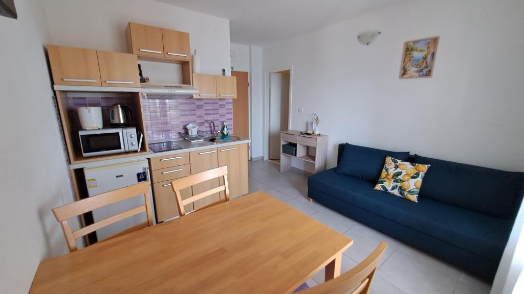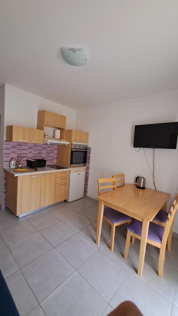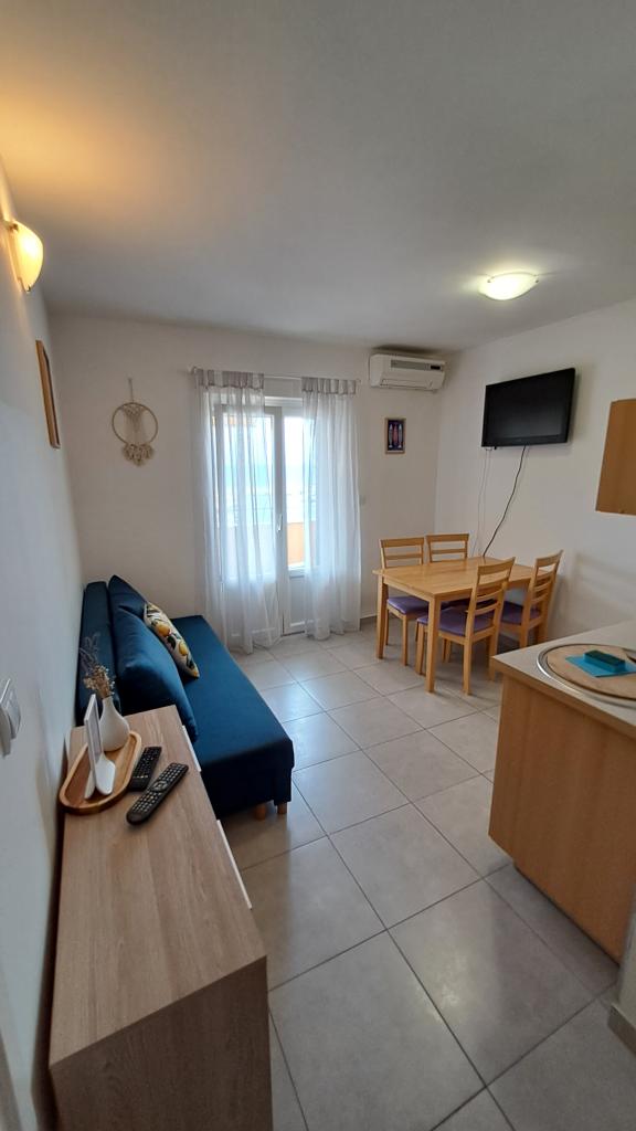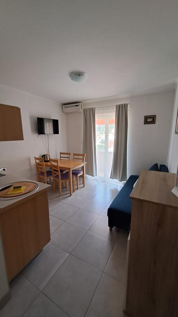 Complet nou și modern mobilat apartament în Trpanj, situat primul rând la mare, la etajul al doilea al casei. Complexul este situat la câțiva pași de plajă și la câteva minute de centru. Apartamentul este alcătuit dintr-un dormitor, bucătărie complet utilată în sala de mese și living, baie și terasă mare. Camera include un pat dublu și un pat suplimentar, iar în camera de zi o canapea extensibilă pentru până la două persoane.