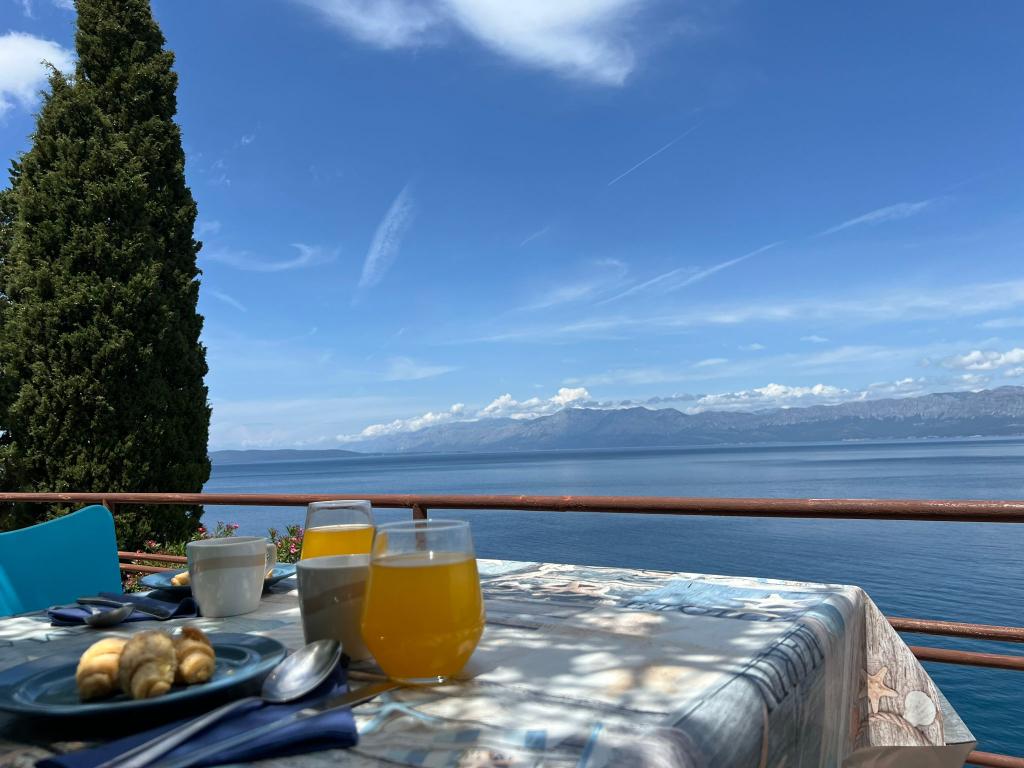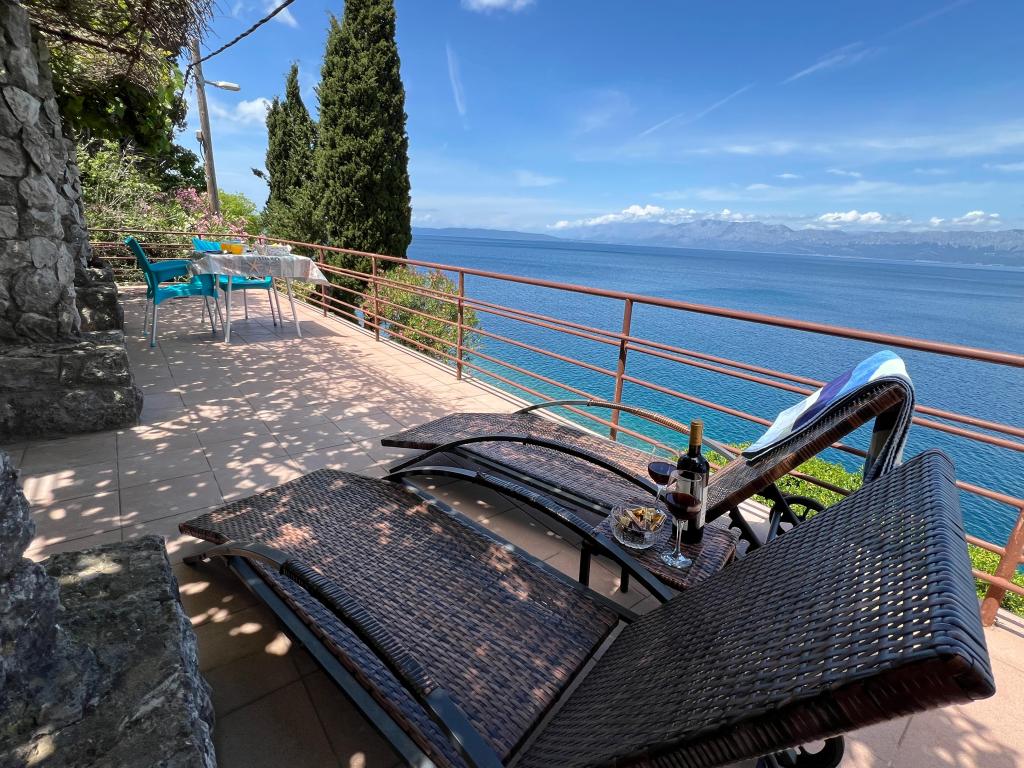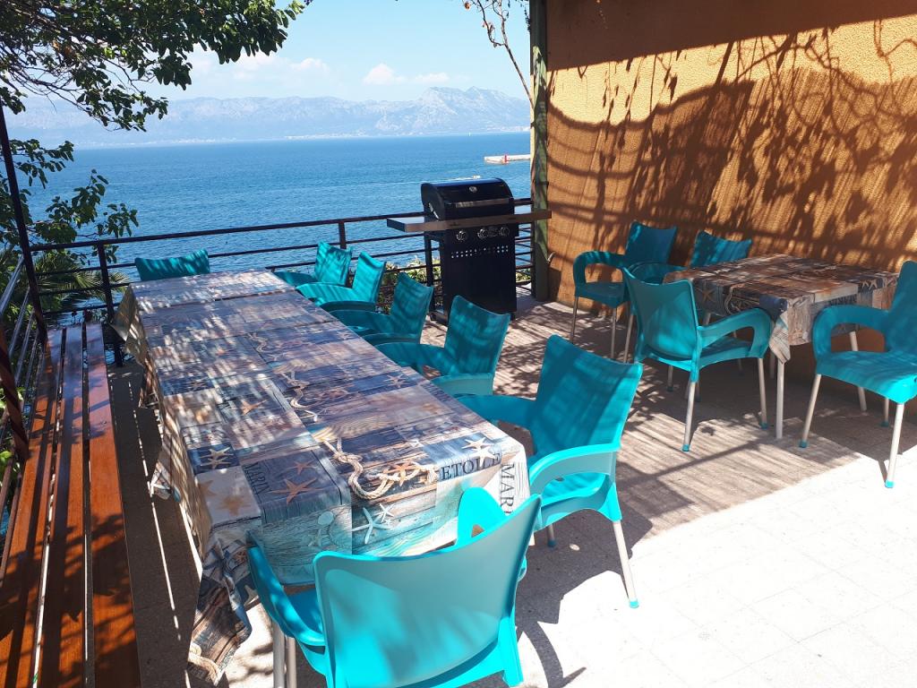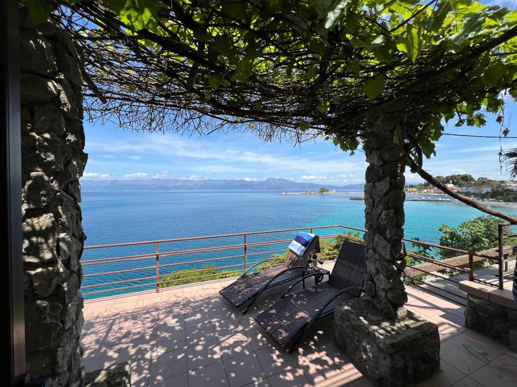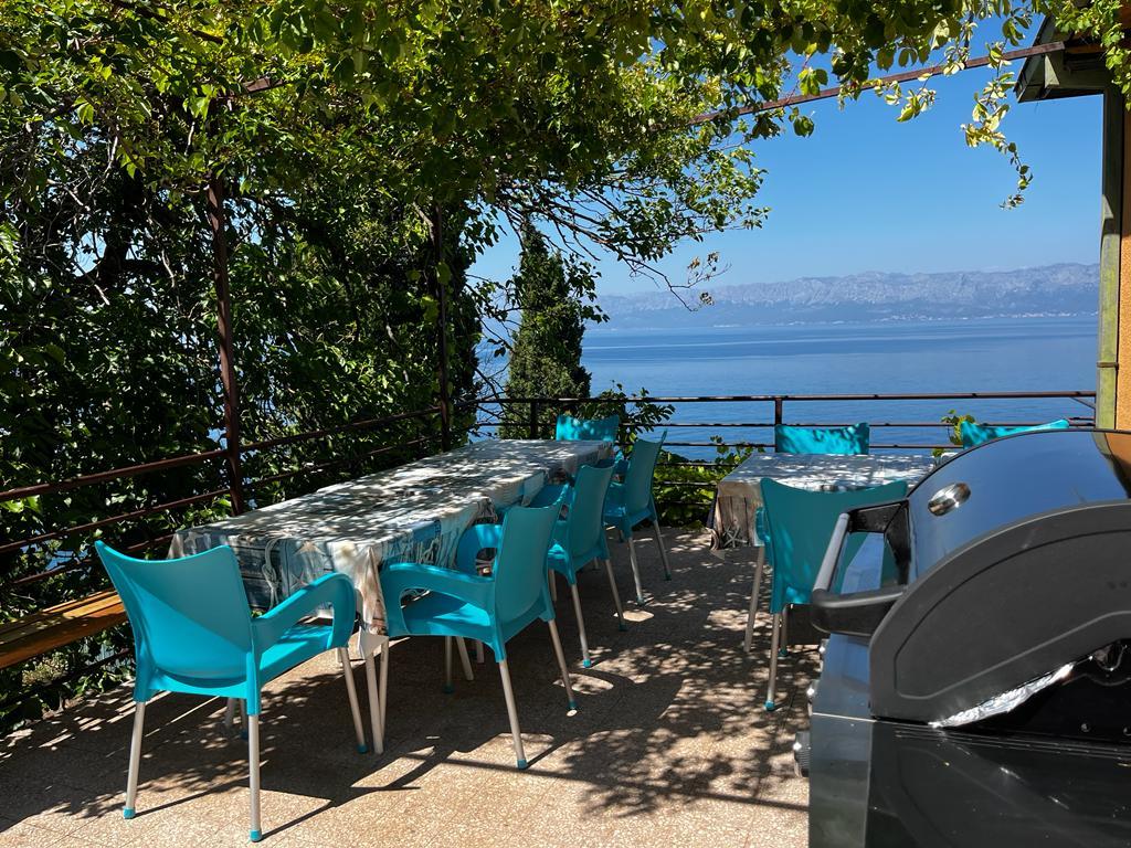 Bine ați venit în vila noastră, cuibărită în mijlocul frumuseții senine a naturii și situată chiar deasupra mării sclipitoare, chiar lângă plajă. Vila Montana oferă o experiență extraordinară într-un peisaj superb și o atmosferă relaxantă. Studioul de la primul etaj este unic, combinând designul modern cu piatra indigenă, pe două niveluri, cu vedere deschisă la mare și o terasă spațioasă. Ideal pentru cupluri. Studioul de la etajul al doilea este format din 2 dormitoare, o baie, o bucătărie modern utilată și un living, precum și o terasă privată. Potrivit pentru 4 persoane. La etajul al treilea există 2 apartamente, care sunt adesea închiriate împreună. Primul, cu balcoane și o priveliște frumoasă, se întinde pe o suprafață de 90 m2 și poate găzdui confortabil 8 oaspeți. Este format dintr-un living, trei dormitoare (3+3+2), două băi și o bucătărie modernă bine echipată. Al doilea apartament pentru 4 persoane este format din două dormitoare, două băi, o bucătărie modernă și un living. De pe terasa spațioasă vi se va oferi o priveliște incredibilă asupra panoramei încântătoare.