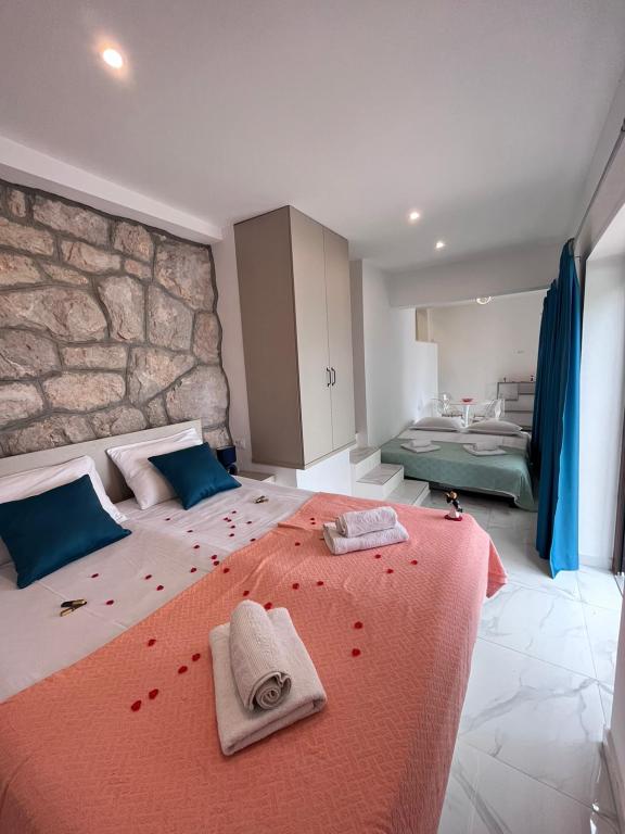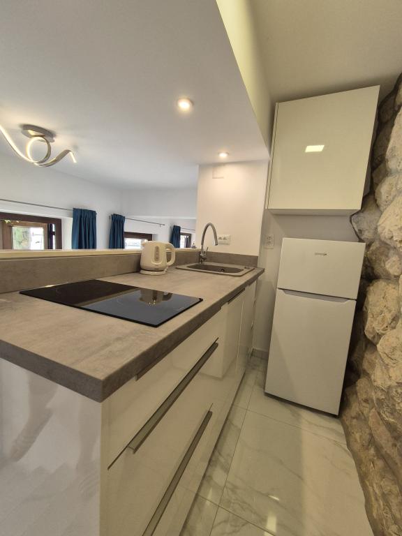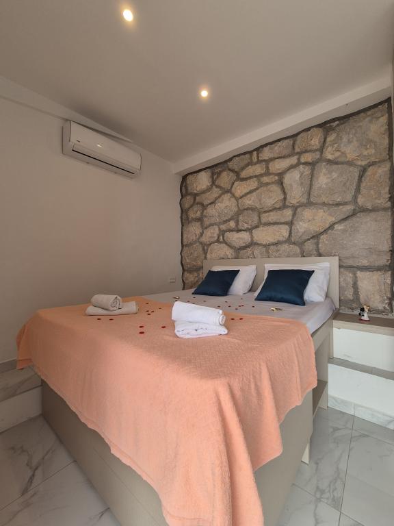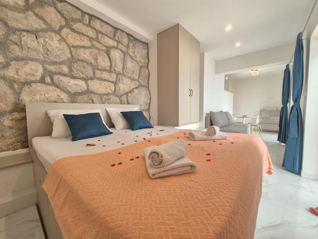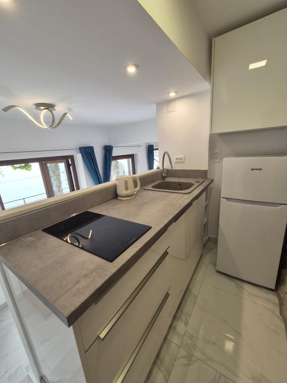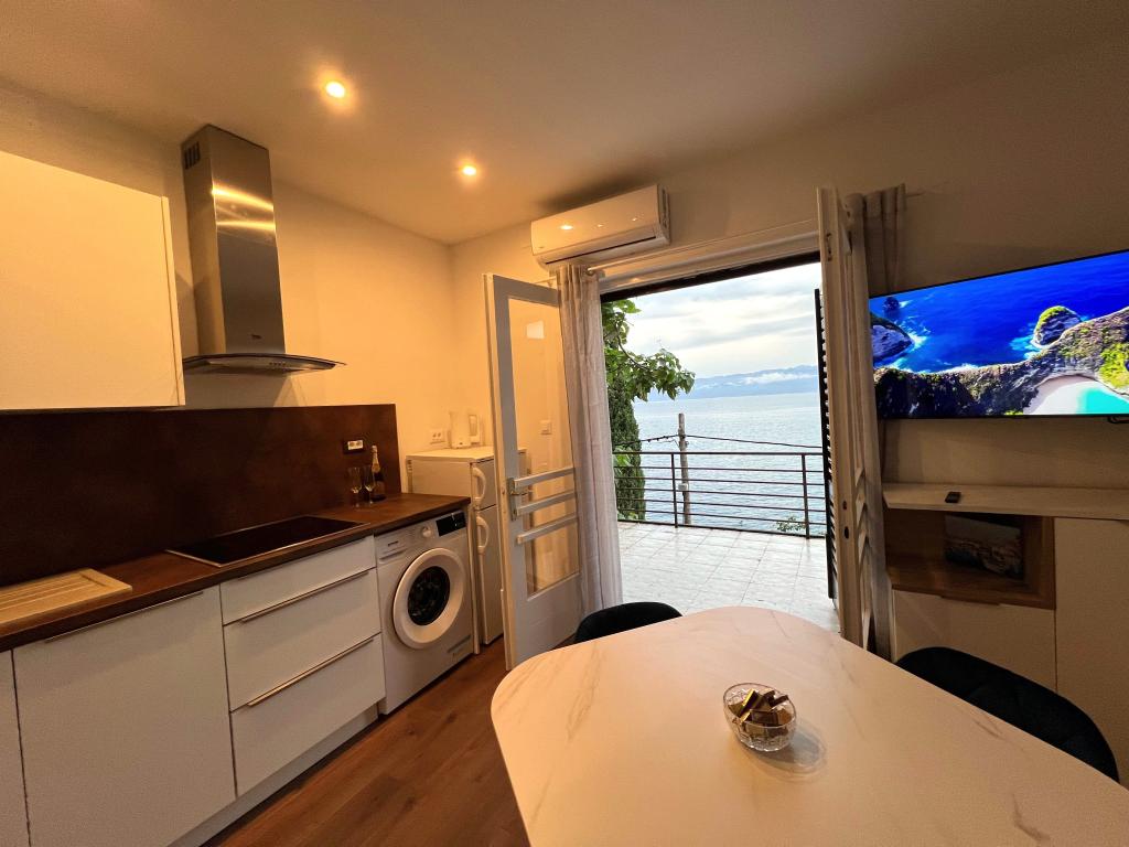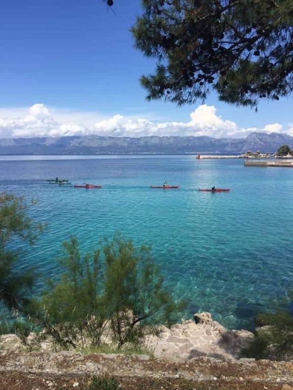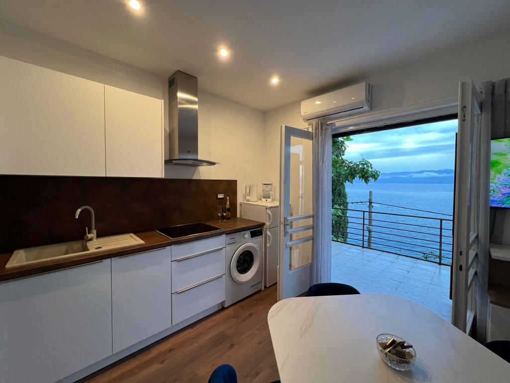 Bine ați venit în vila noastră, cuibărită în mijlocul frumuseții senine a naturii și situată chiar deasupra mării sclipitoare, chiar lângă plajă. Vila Montana oferă o experiență extraordinară într-un peisaj superb și o atmosferă relaxantă. Studioul de la primul etaj este unic, combinând designul modern cu piatra indigenă, pe două niveluri, cu vedere deschisă la mare și o terasă spațioasă. Ideal pentru cupluri. Studioul de la etajul al doilea este format din 2 dormitoare, o baie, o bucătărie modern utilată și un living, precum și o terasă privată. Potrivit pentru 4 persoane. La etajul al treilea există 2 apartamente, care sunt adesea închiriate împreună. Primul, cu balcoane și o priveliște frumoasă, se întinde pe o suprafață de 90 m2 și poate găzdui confortabil 8 oaspeți. Este format dintr-un living, trei dormitoare (3+3+2), două băi și o bucătărie modernă bine echipată. Al doilea apartament pentru 4 persoane este format din două dormitoare, două băi, o bucătărie modernă și un living. De pe terasa spațioasă vi se va oferi o priveliște incredibilă asupra panoramei încântătoare.