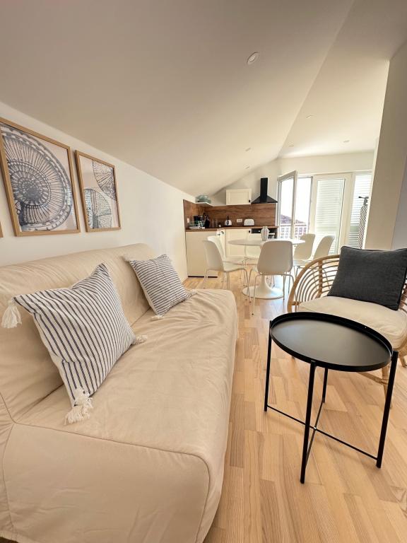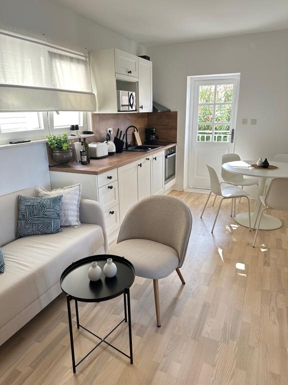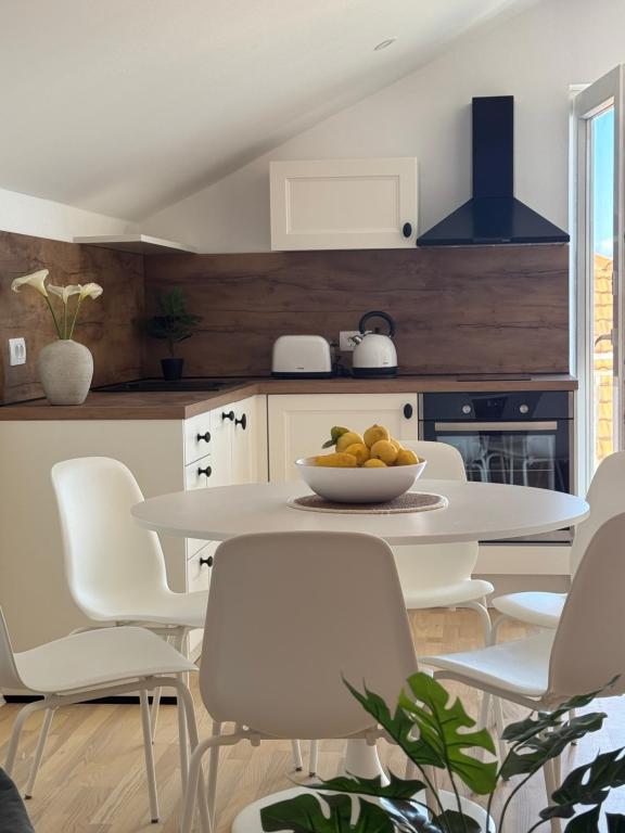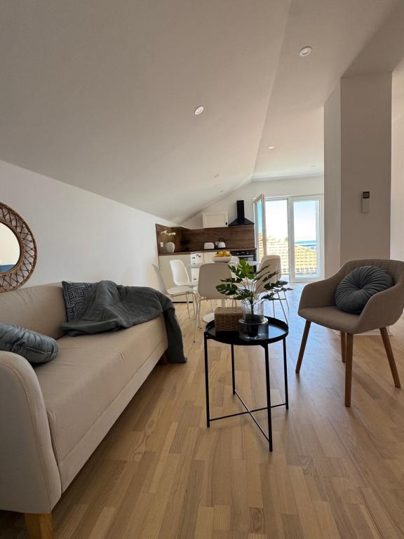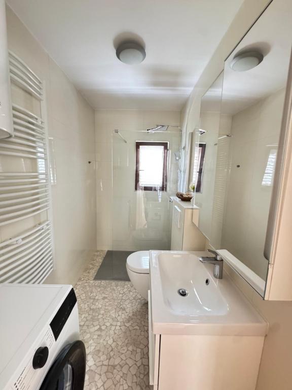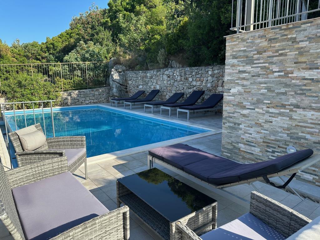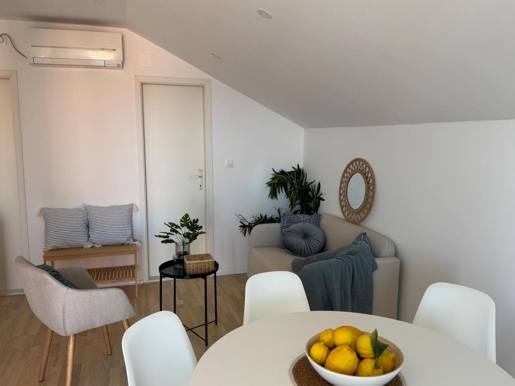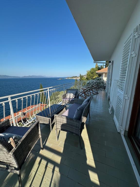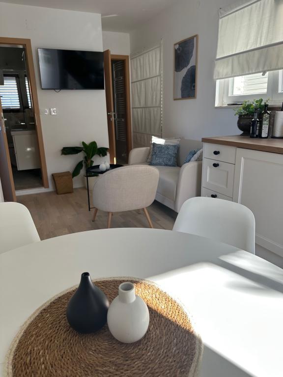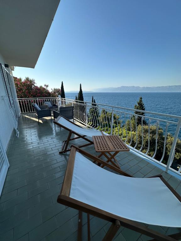 Apartamente complet mobilate modern, într-o zonă liniștită, situate în al doilea rând la mare; Complexul este situat la 15 minute de mers pe jos de centru și la 10 minute de mers pe jos de plaja cu pietriș sau la doar 20-30 de metri de o plajă stâncoasă sau betonată. Apartamentul 2 este închiriat cu o piscină infinită privată cu șezlonguri și duș și o vedere frumoasă la mare. Fiecare apartament este dotat cu două băi moderne cu încălzire prin pardoseală.