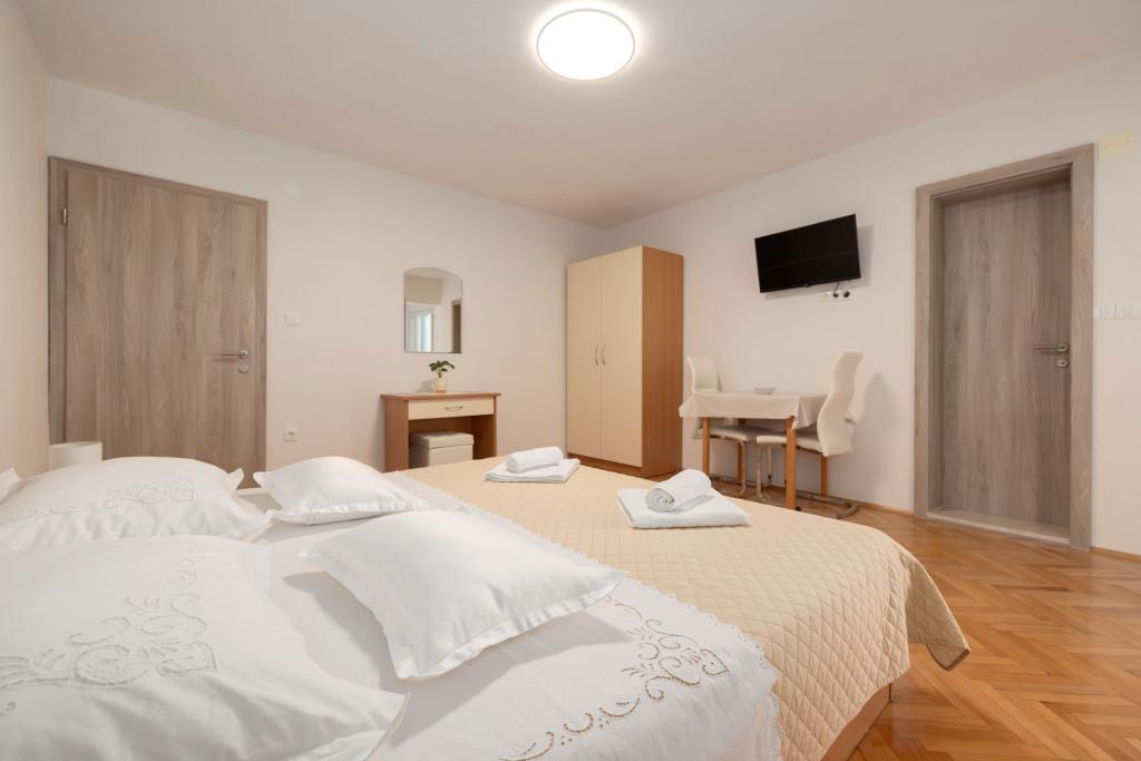 Ne aflăm în Tucepi, un loc frumos pe Riviera Makarska. Oferim apartamente moderne la doar câteva minute de plajele cu nisip. Gazdele prietenoase, cu experiență bogată în turism, vă vor sta în orice moment. Terasele apartamentelor noastre oferă o vedere frumoasă la mare și centrul orașului Tucepi. care se află la aproximativ 10 minute de mers pe jos de noi pe o promenadă frumoasă. Toate unitățile noastre de cazare sunt cu aer condiționat. Vă dorim o vacanță plăcută alături de noi și așteptăm cu nerăbdare sosirea voastră!