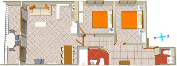 Apartament pentru patru persoane, cu două paturi suplimentare (68 m2)
