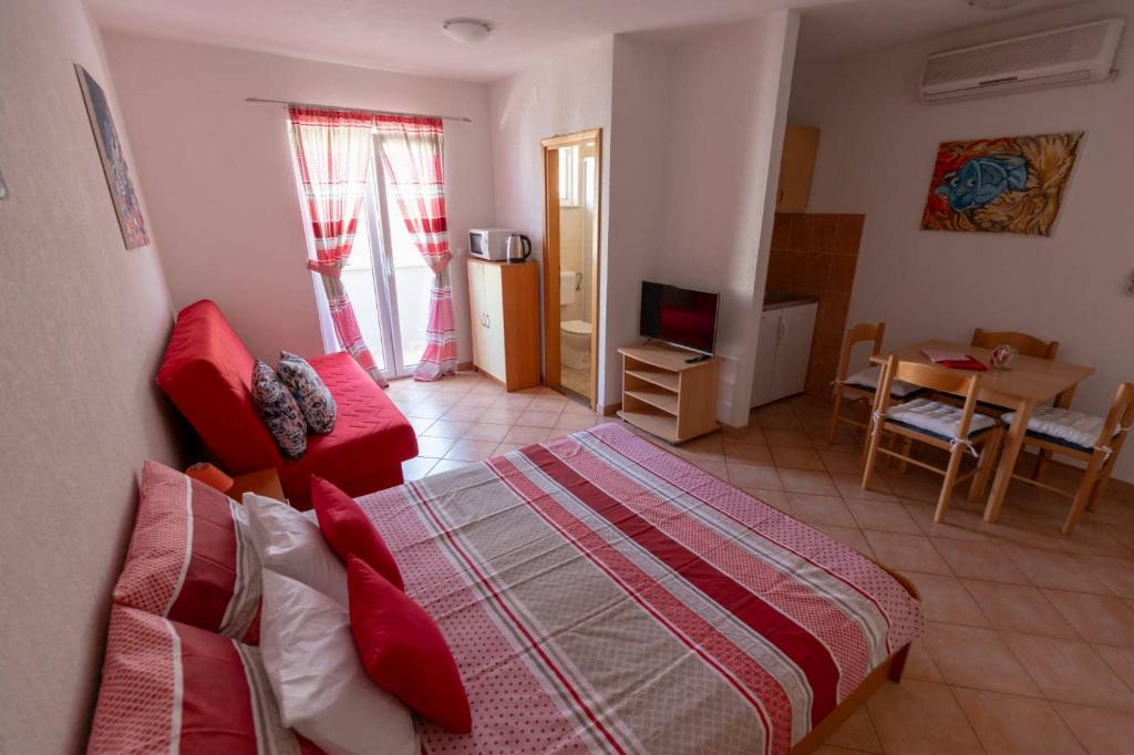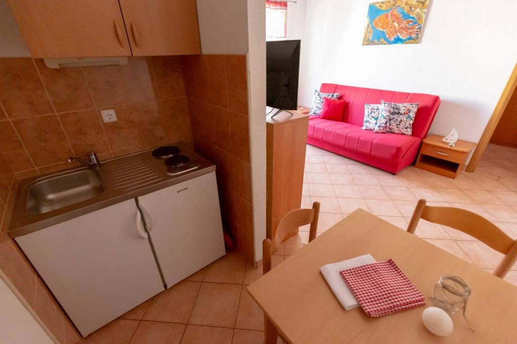 Apartamentele sunt situate la 30 de metri de mare, in apropierea apartamentului se afla restaurante, baruri, supermarket si alte facilitati. Cu o taxă suplimentară de 6 euro de persoană pe noapte oferim micul dejun în clădirea de lângă plajă. Ideal pentru o vacanță fără mașini. Simțiți farmecul perlelor Dalmației, relaxați-vă pe plajele care se întind pe 3 km cu reflectarea mării cristaline