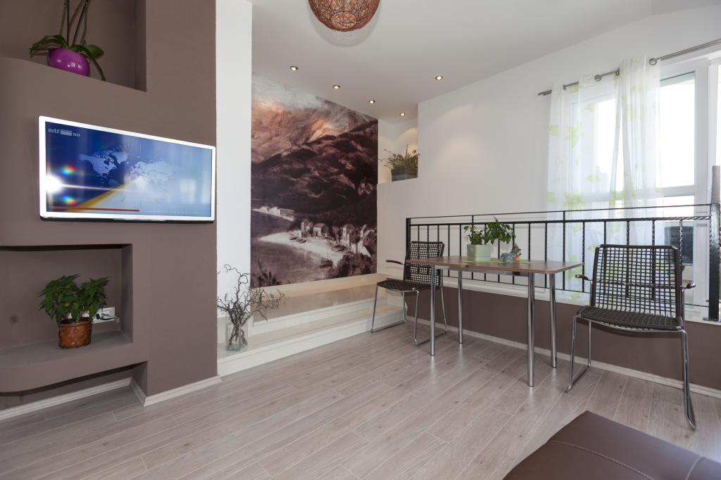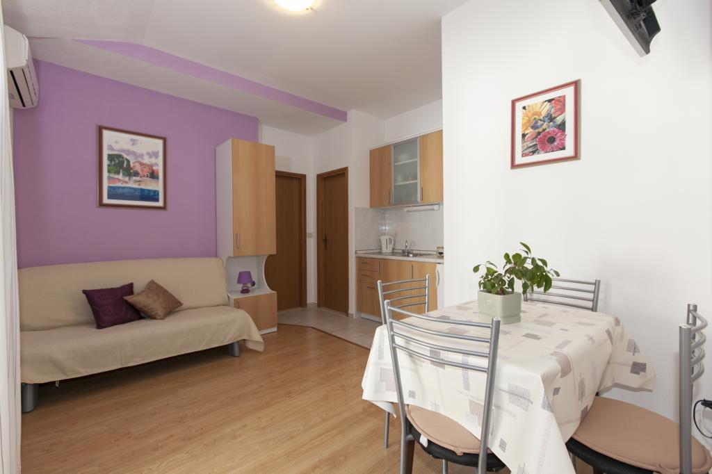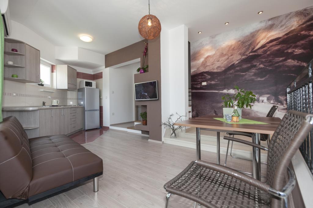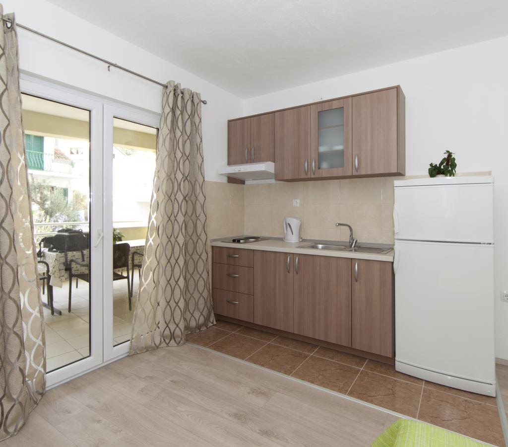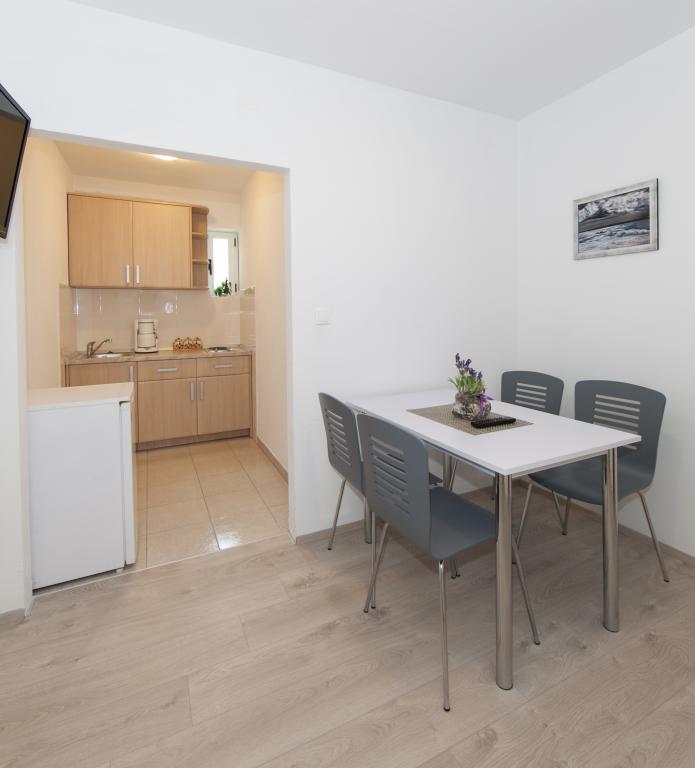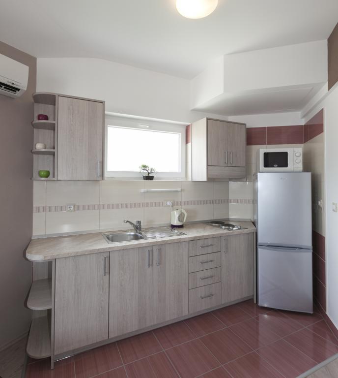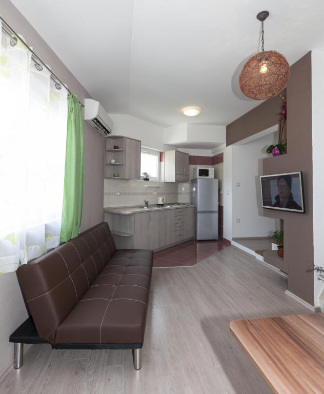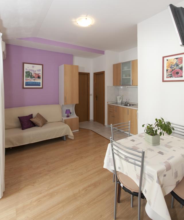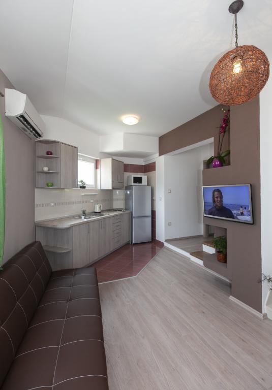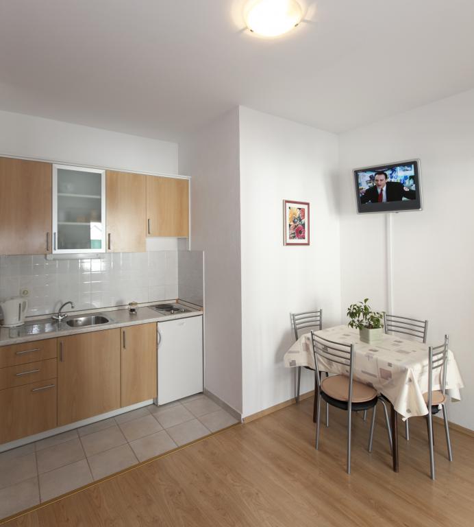 Apartamentele sunt complet echipate și sunt situate la doar 3 - 4 minute de plajă și 7 - 8 minute de mers pe jos de centru. Numeroase restaurante și supermarketuri sunt situate de-a lungul plajei. Stația de autobuz este la un minut de mers pe jos. În funcție de apartament, fiecare are o terasă mare sau un balcon mai mare.