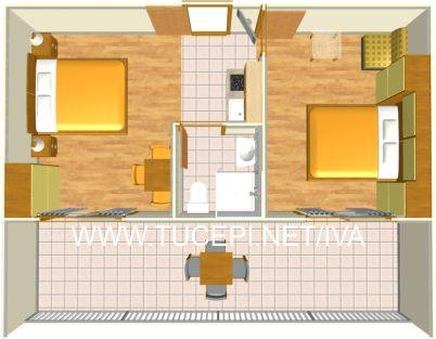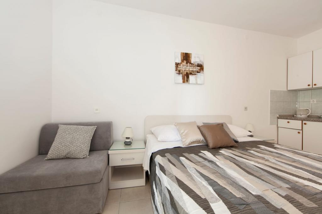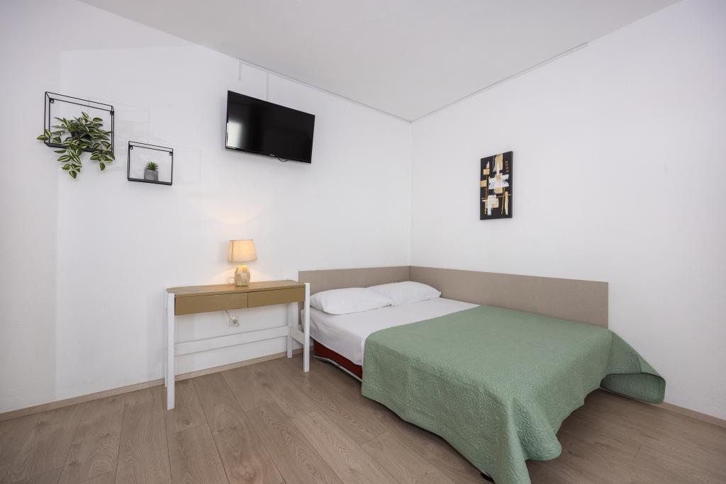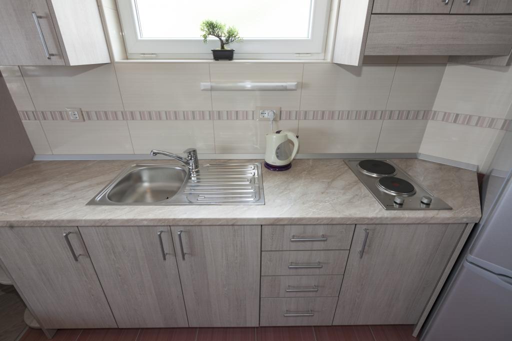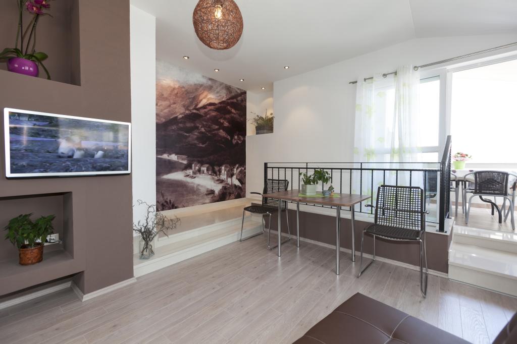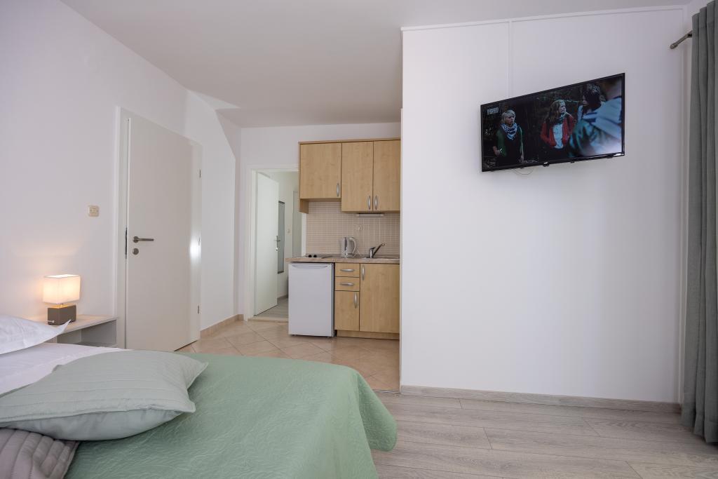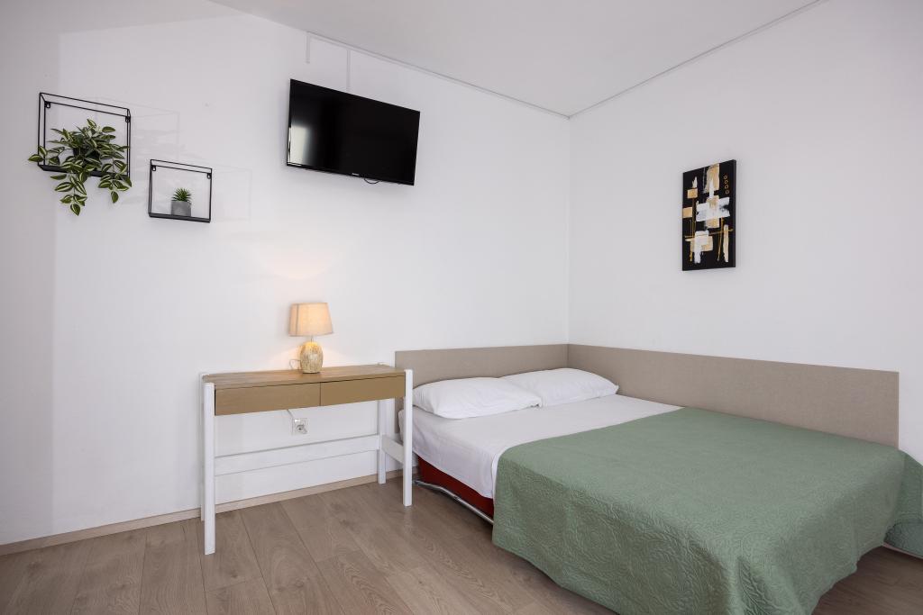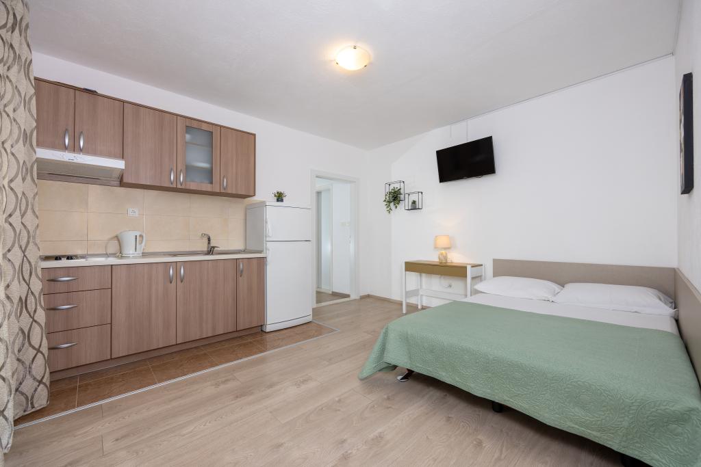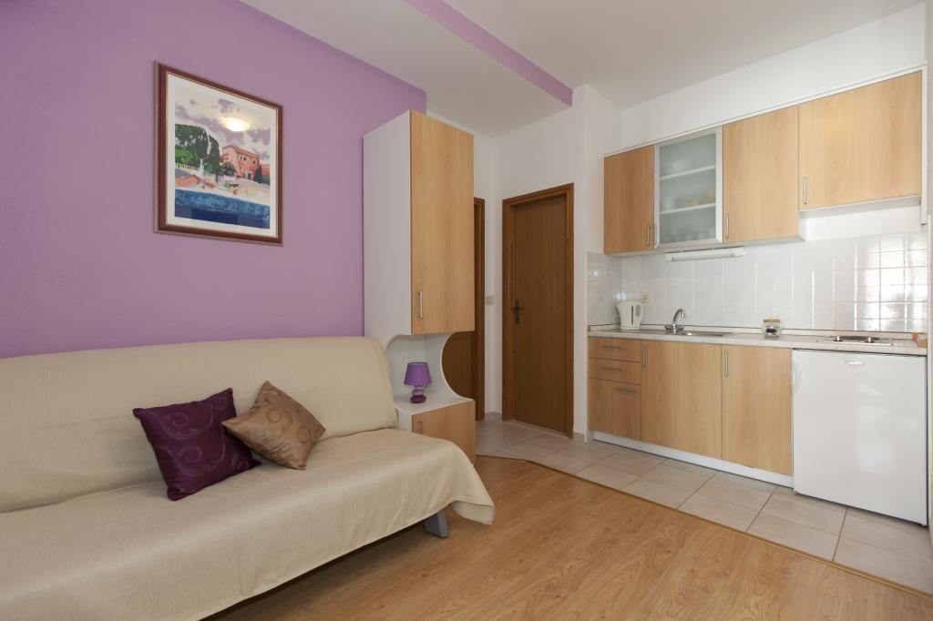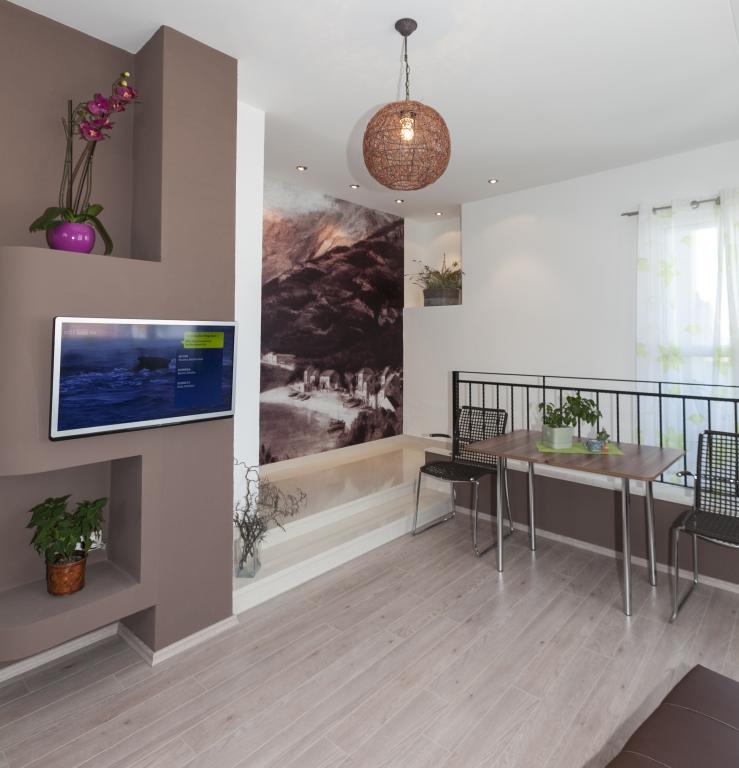 Apartamentele sunt complet echipate și sunt situate la doar 3 - 4 minute de plajă și 7 - 8 minute de mers pe jos de centru. Numeroase restaurante și supermarketuri sunt situate de-a lungul plajei. Stația de autobuz este la un minut de mers pe jos. În funcție de apartament, fiecare are o terasă mare sau un balcon mai mare.