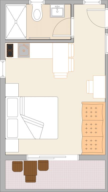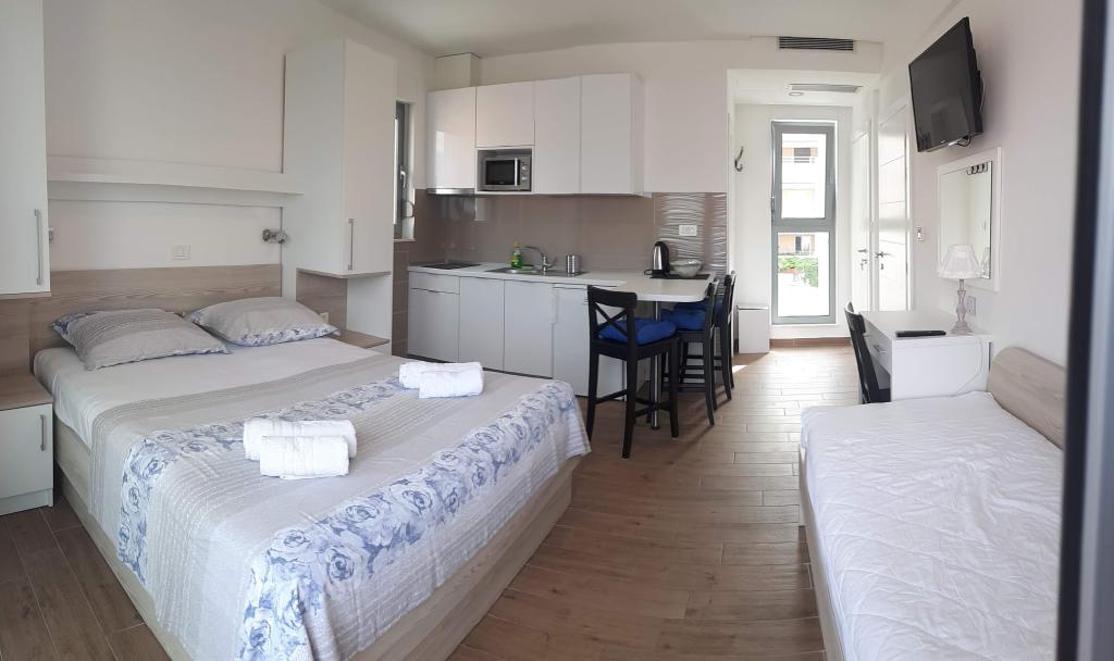 Toate apartamentele oferă o priveliște frumoasă la mare și posibilitatea de a lua mesele pe terasă.