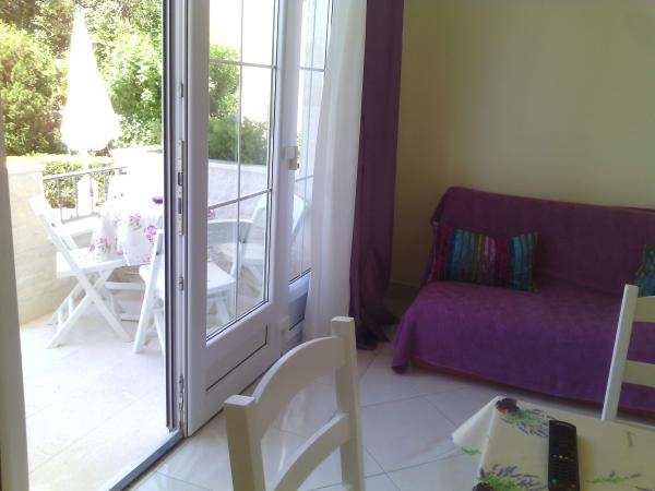 Apartamentele sunt situate la 20 de metri de plajă și la 100 de metri de centru. In curte exista un pasaj subteran direct catre plaja, nu este nevoie sa traversati drumul. Parcarea gratuită este disponibilă în curte. In apropierea casei se afla restaurante, magazine, posta, farmacie, biserica. În apartamente este disponibil Wi-Fi gratuit. Toate apartamentele sunt dotate cu aer condiționat. Apartamentele sunt dotate cu toate ustensilele necesare, vesela, prosoape și șervețele. Lenjeria de pat se schimba la fiecare 7 zile (daca stai mai mult de 10 zile). Zona liberă COVID-19: Toate apartamentele pot avea intrare separată fără contact cu alți oaspeți și sunt dotate cu dezinfectanți