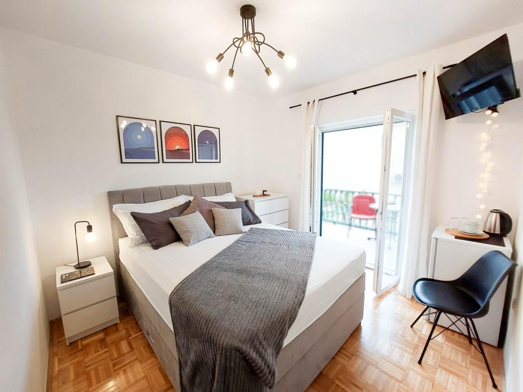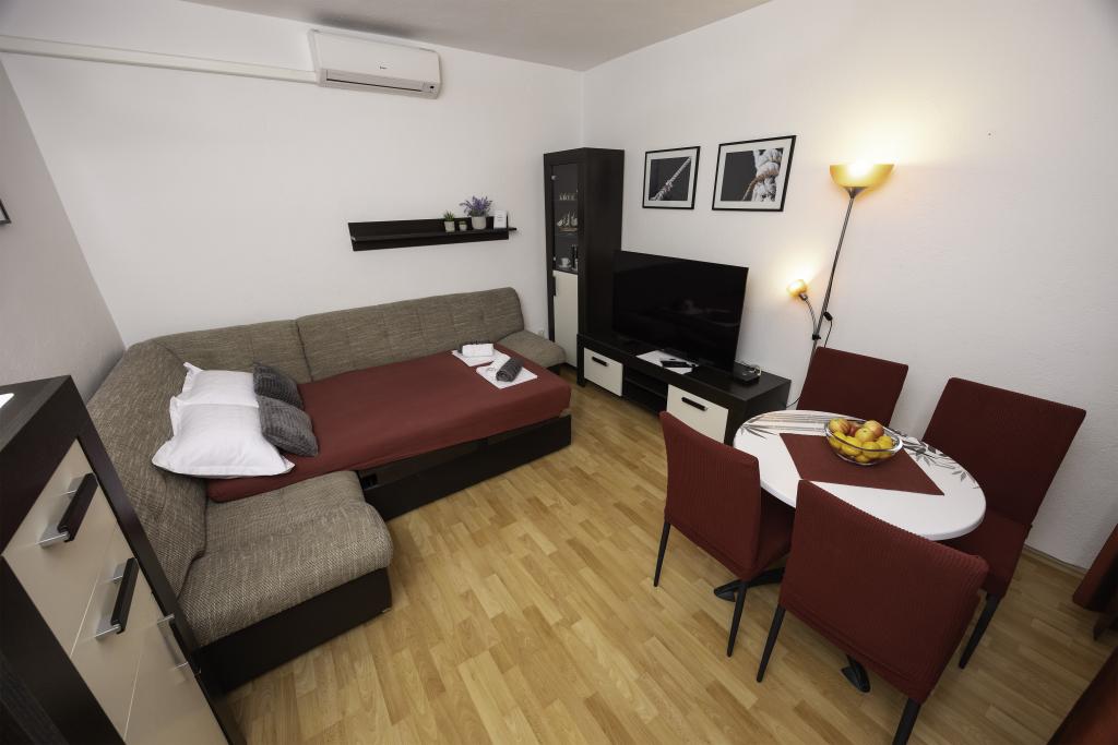 Apartamentul este situat în apropiere de plaja, cca. 1-2 minute pe jos. Aer conditionat in ambele camere, cu un control de la distanță separat, balcon de Biokovo, parcare super-. Sefii au fost foarte politicos și plăcut. Apartamentul poate recomanda.
