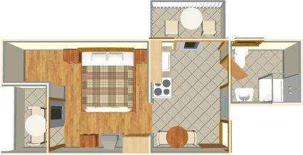 Apartament studio pentru două persoane cu pat suplimentar (0 m2)