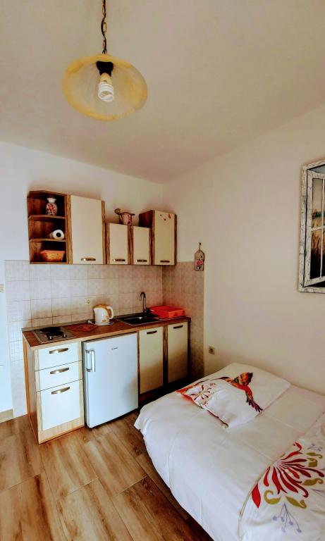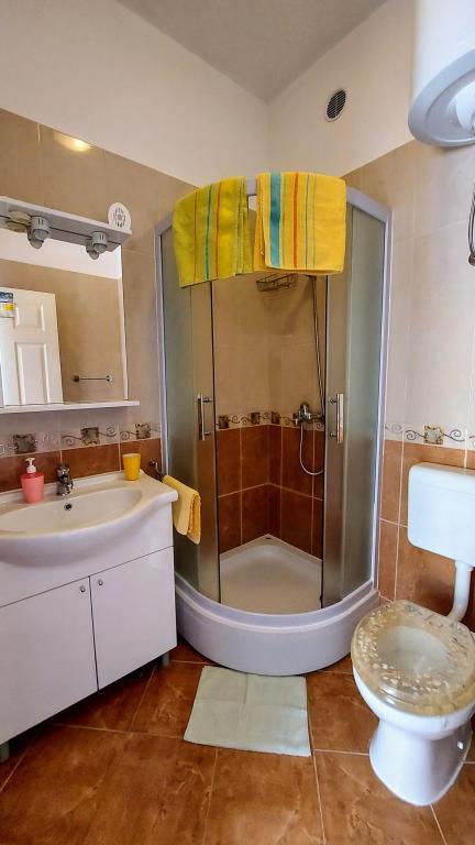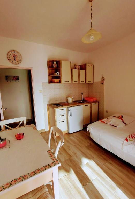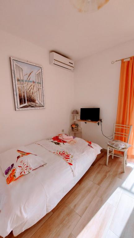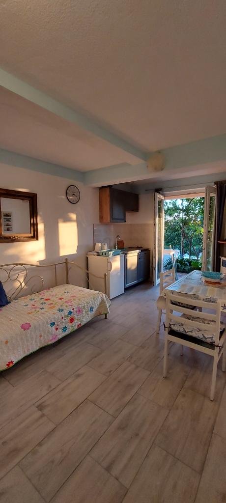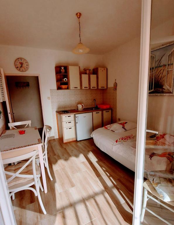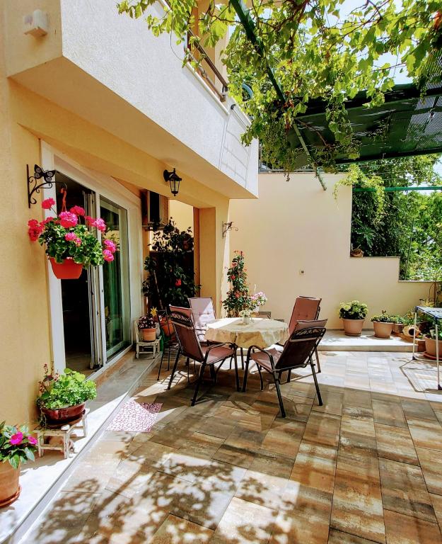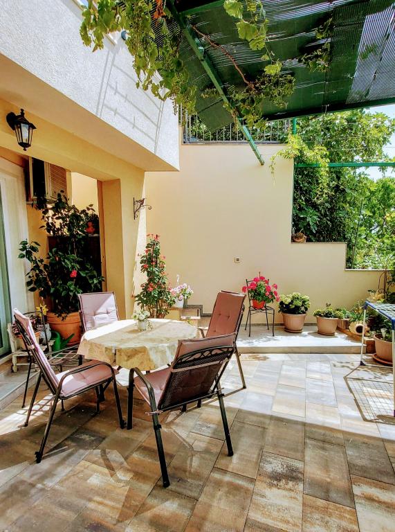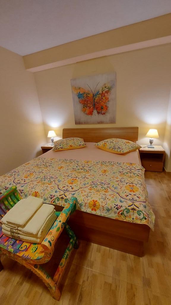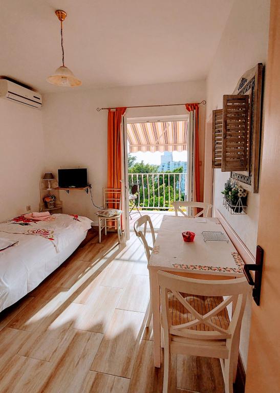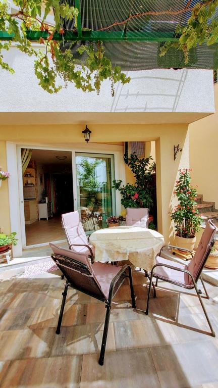 Taxa de rezidenta este inclusa in pret.Căutam o cazare potrivită pentru o familie cu copii mici... o bucătărie suficient utilată (dacă lipsea ceva, proprietara ne aducea totul), o cameră suficient de mare pentru 4 persoane și o terasă frumoasă cu vedere la mare. Toate la umbra plantelor cultivate în grădină. Lumini aprinse seara, ceea ce a fost deosebit de apreciat de copii, liniște nocturnă. Micuților noștri pasionați de animale le-au plăcut și pisicile din casă și faptul că se uitau în garajul proprietarului. Țânțarii nu ne-au deranjat, iar doamna Nensi ne-a răsfățat constant și ne-a întrebat dacă totul este în regulă. Pentru mine, o vacanță frumoasă cu copii. Promenada este la mică distanță de mers pe jos, sunt scări peste tot către promenadă și plajă. Magazinele sunt la mică distanță de mers pe jos. Comunicarea în fața unității de cazare a fost perfectă și, de asemenea, la fața locului. Singurul lucru care strică totul este drumul din fața casei, dar unitatea de cazare este mult mai sus, chiar dacă eram la parter. Nici măcar acesta nu se auzea noaptea. Așadar, mulțumiri lui Nensi.