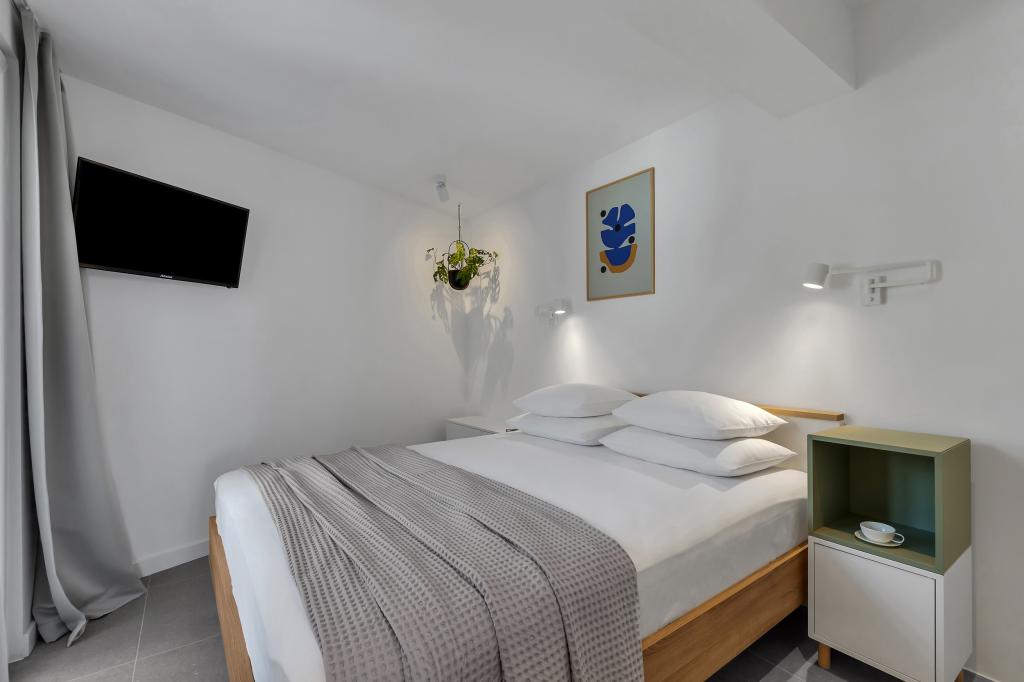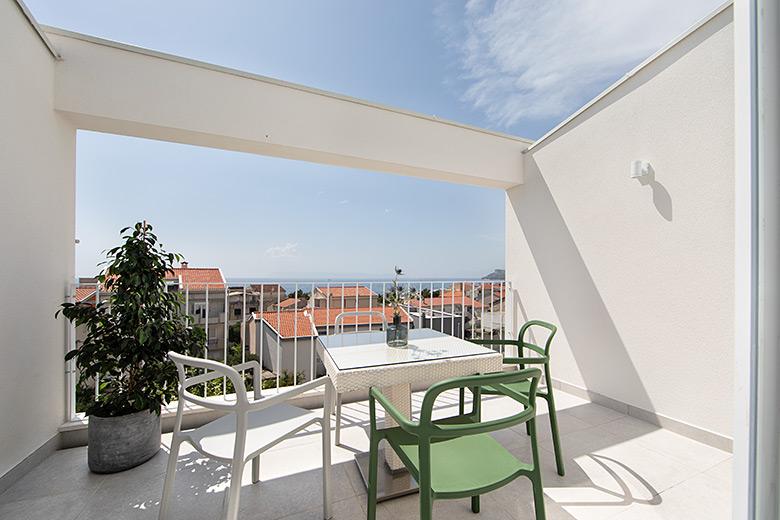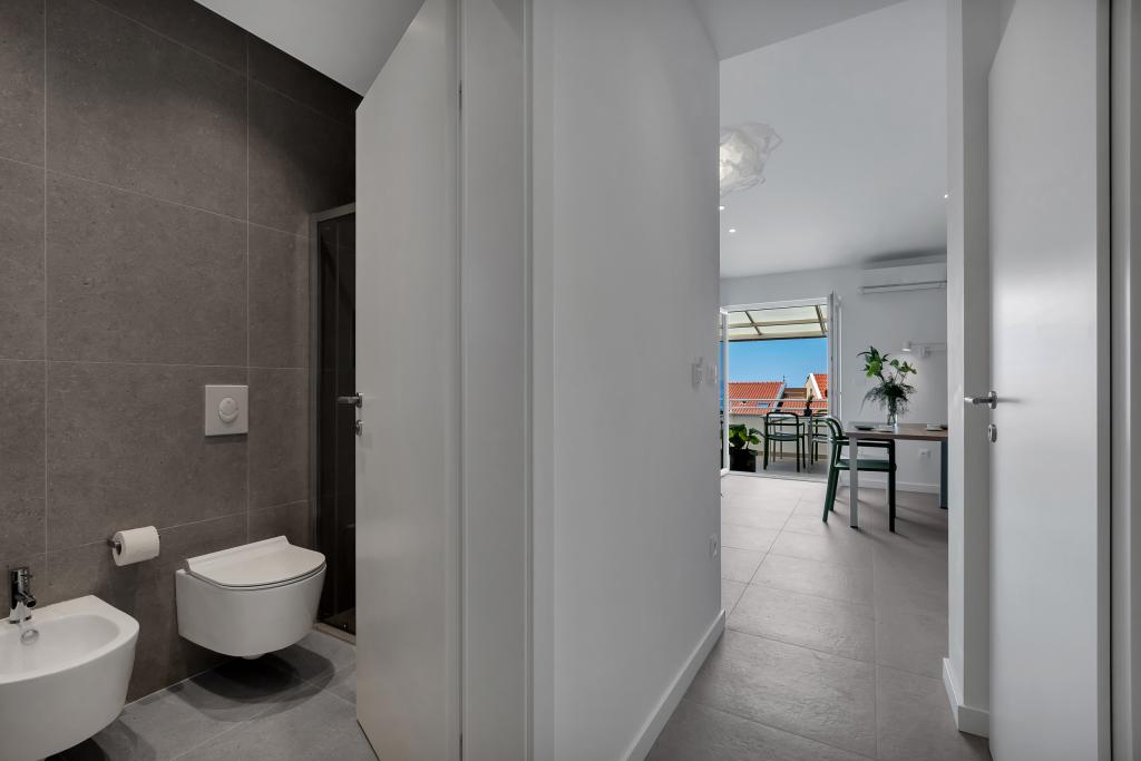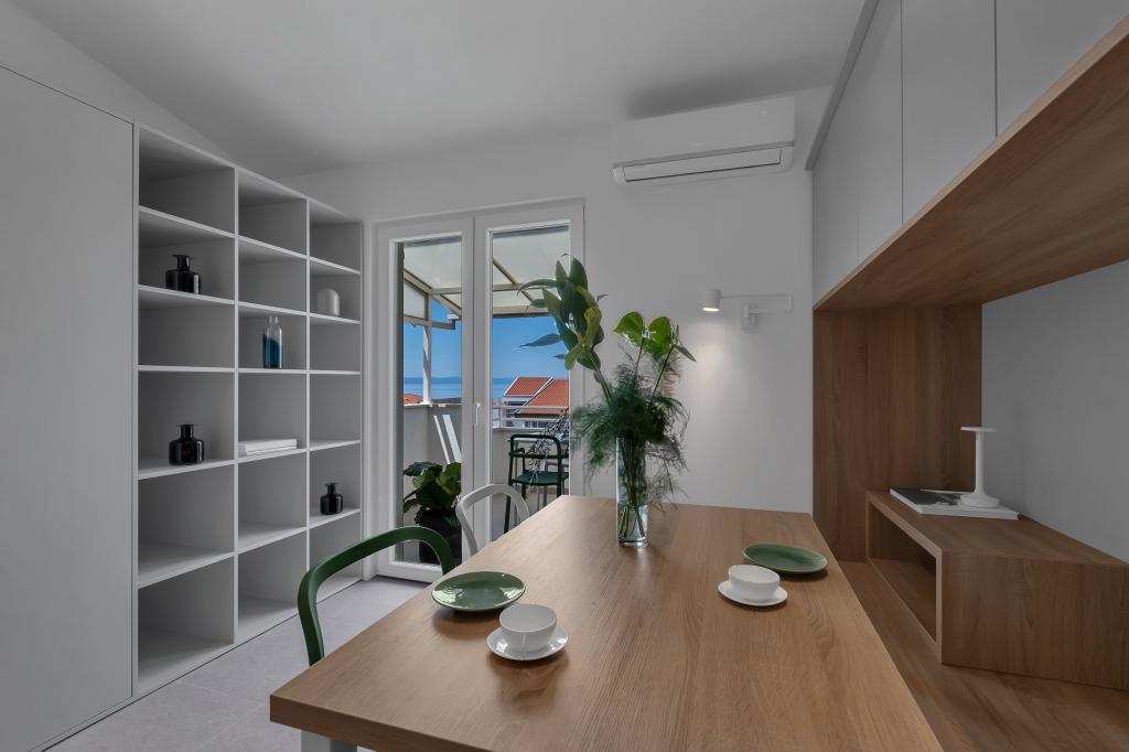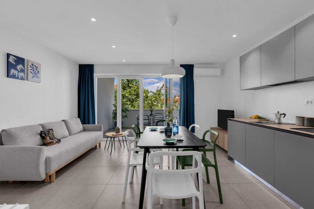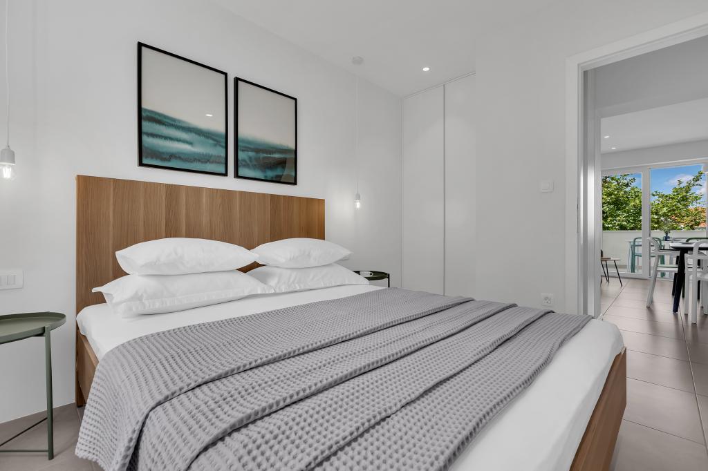 Apartamentele nr. 18 sunt situate aproape de mare și o plajă cu pietriș decorată cu pini creând o umbră plăcută. Apartamentele sunt recent renovate, complet echipate cu loggii mari și parcare privată. La doar câteva minute de mers pe jos de centrul orașului și de toate facilitățile importante.