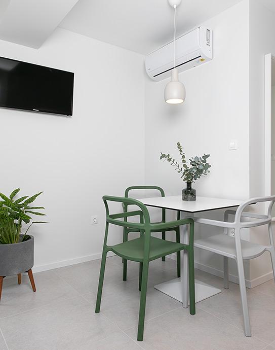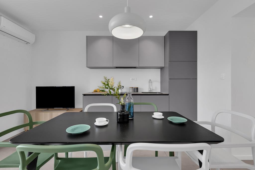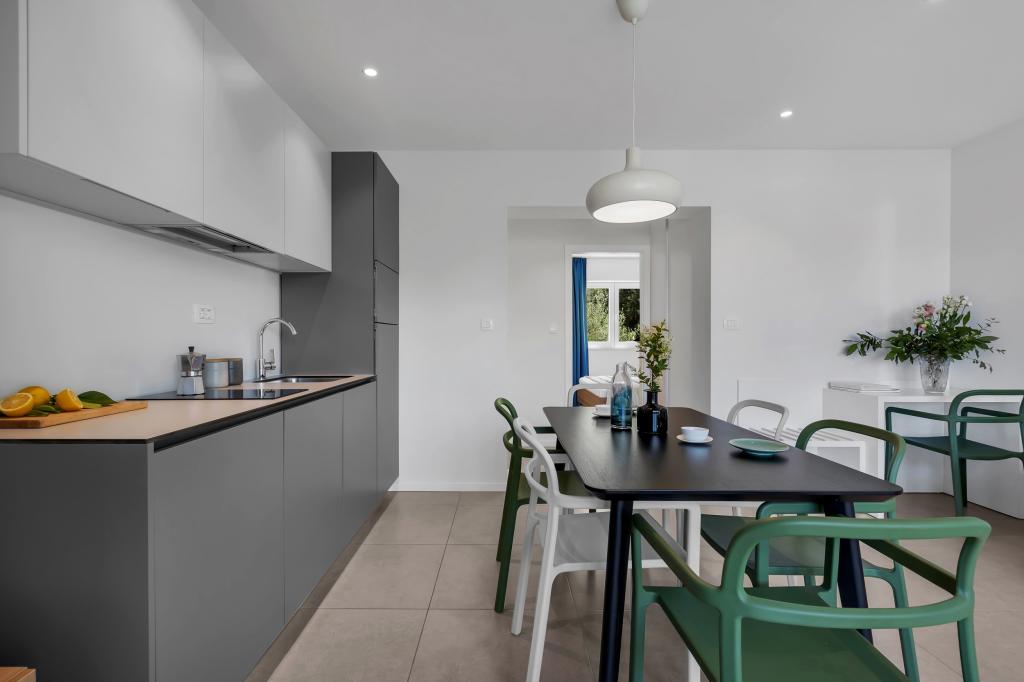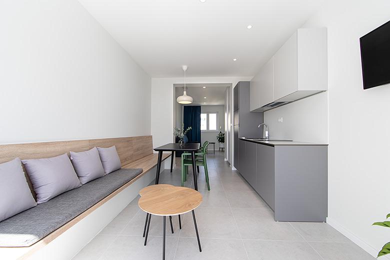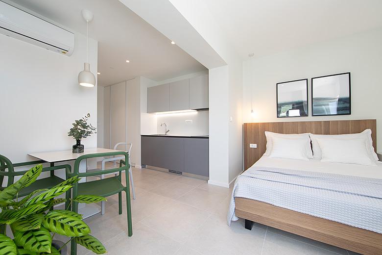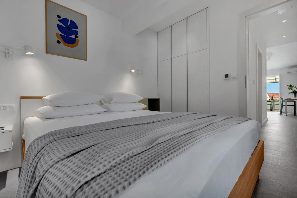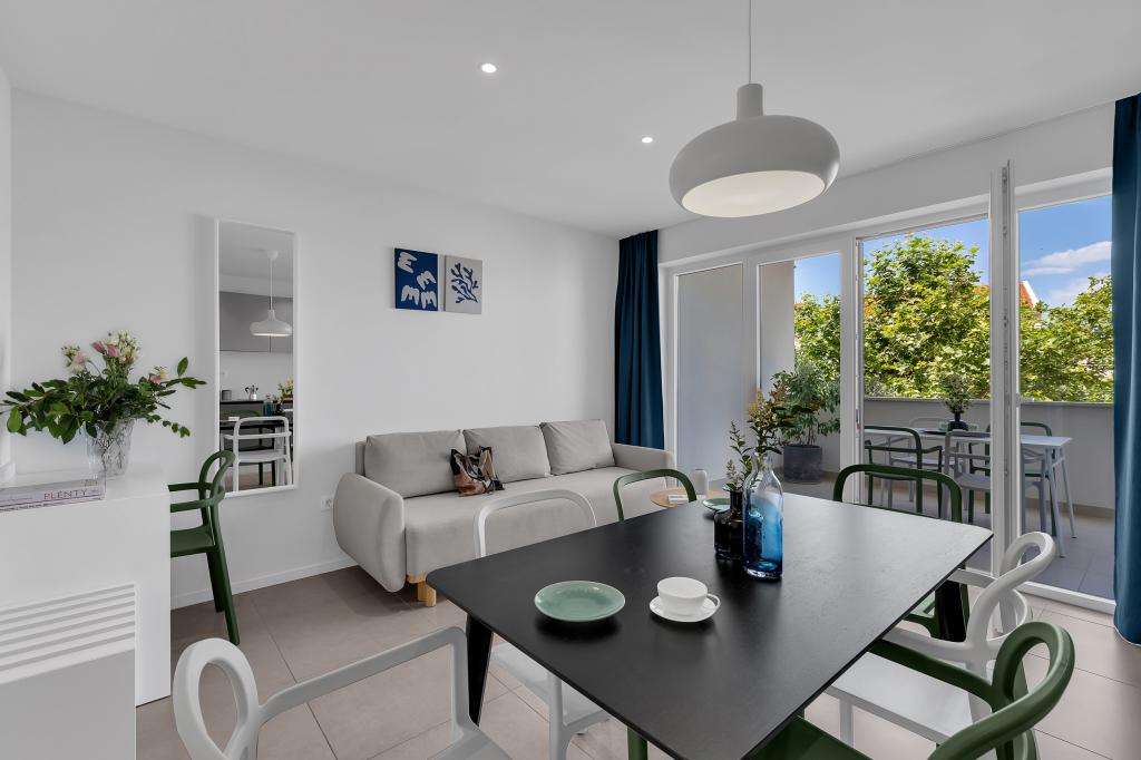 Apartamentele nr. 18 sunt situate aproape de mare și o plajă cu pietriș decorată cu pini creând o umbră plăcută. Apartamentele sunt recent renovate, complet echipate cu loggii mari și parcare privată. La doar câteva minute de mers pe jos de centrul orașului și de toate facilitățile importante.