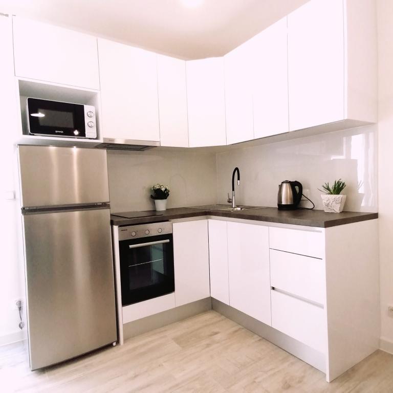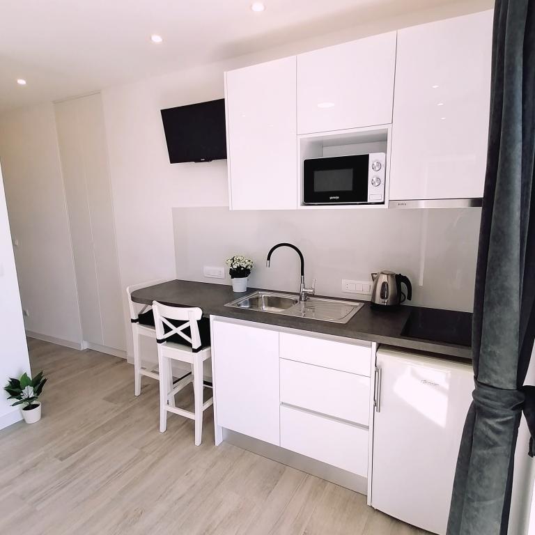 Cazarea a fost excelenta, garsoniera exact ca in fotografii, totul este nou si la comanda. Apartamentul este curat si ordonat, balconul este mare, cu sezlong. Apartamentul are tot ce ai nevoie pentru un sejur. Gazdele sunt discrete, dar mereu disponibile. Totul de laudat!