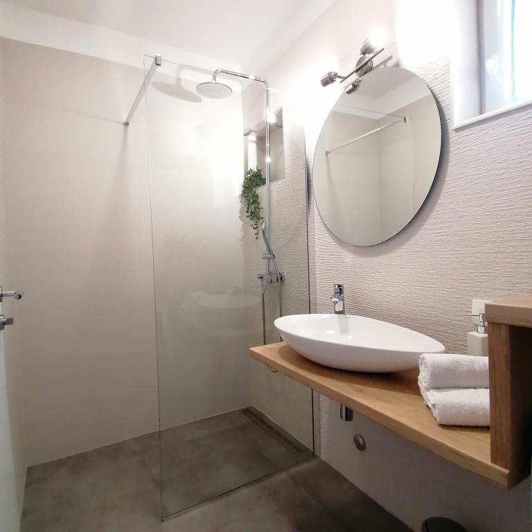 Suntem la doar 40 m de plajă. De pe balconul apartamentelor noastre, există o priveliște frumoasă asupra mării și a insulelor din apropiere. Apartamentele sunt recent renovate. Parcarea se află în curtea casei. Gazdele amabile vă stau mereu la dispoziție.
