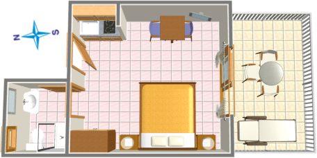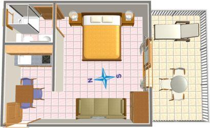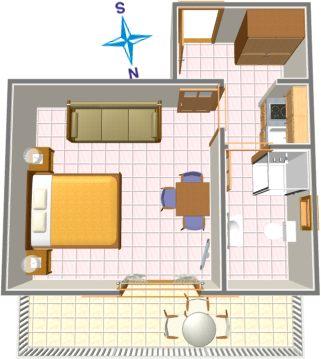 Apartament pentru două persoane, cu două paturi suplimentare (22 m2)