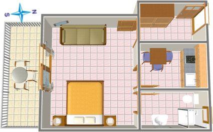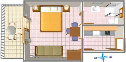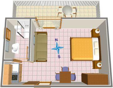 Apartament pentru două persoane, cu două paturi suplimentare (25 m2)
