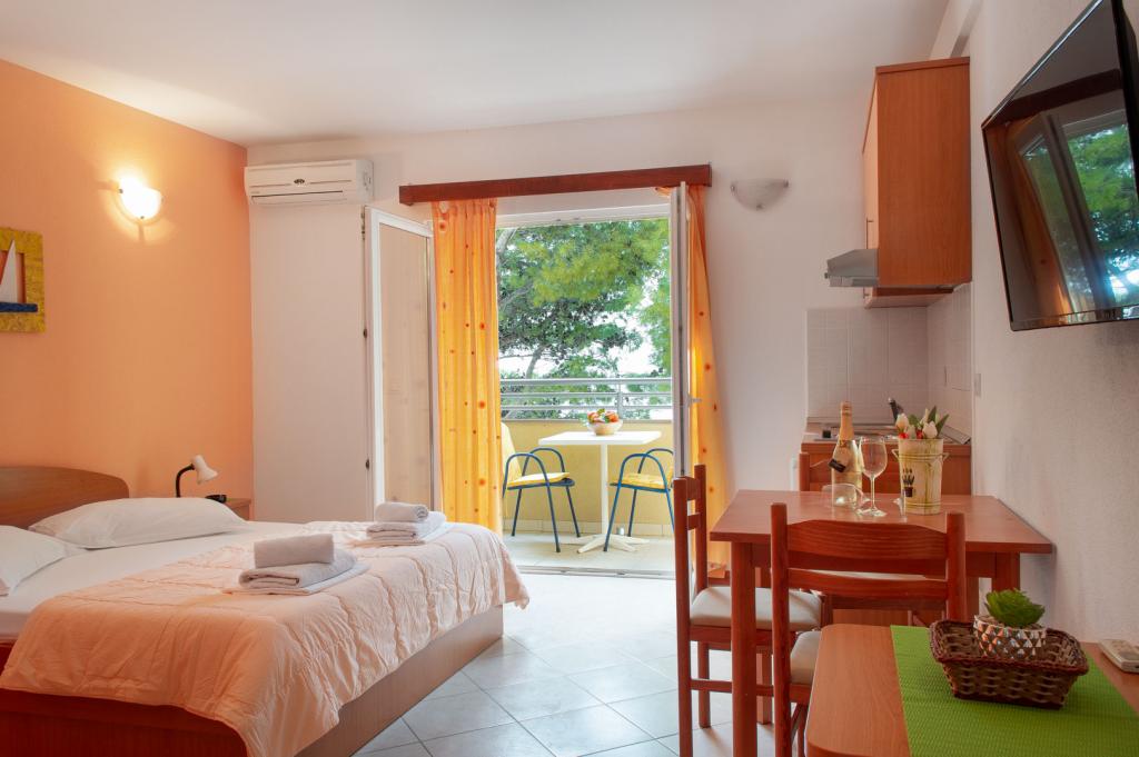 Această facilitate este situată pe una dintre cele mai bune plaje din regiune. La primul și al doilea etaj al casei există 8 apartamente de închiriat. Toate au balcoane orientate spre sud, cu scaune. Fiecare apartament are bucătărie utilată, cuptor cu microunde, ceainic, aer condiționat, Wi-Fi gratuit și parcare. Serviciul de spălătorie este disponibil pentru o mică taxă. Parcarea este situată în apropiere. Pentru orice informații suplimentare despre apartamente individuale sau oraș, nu ezitați să ne contactați.