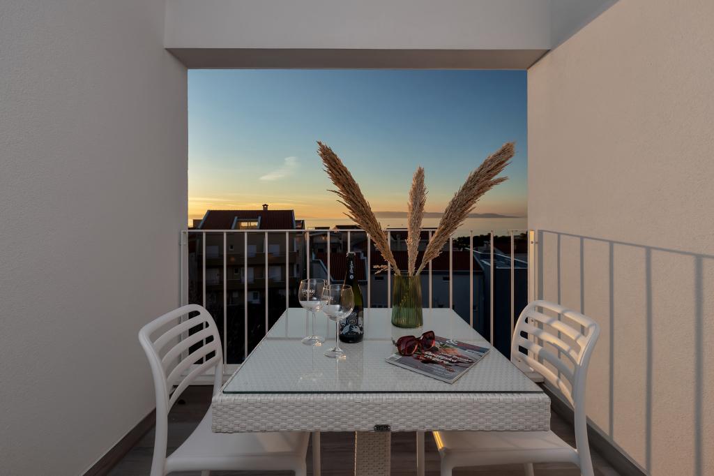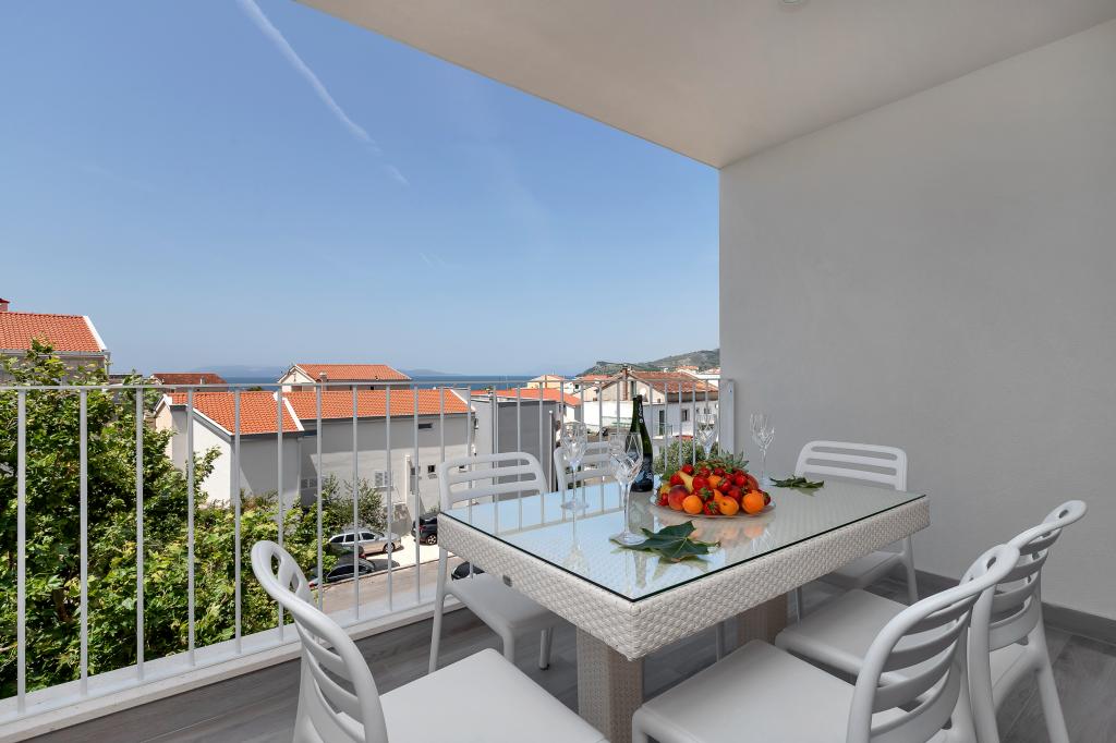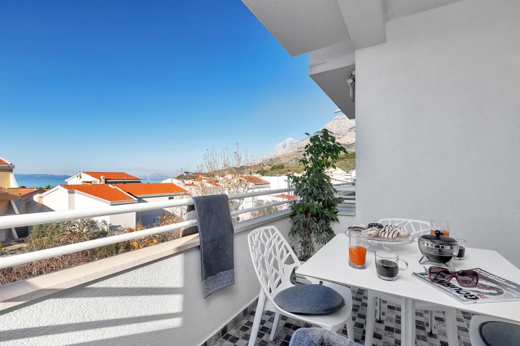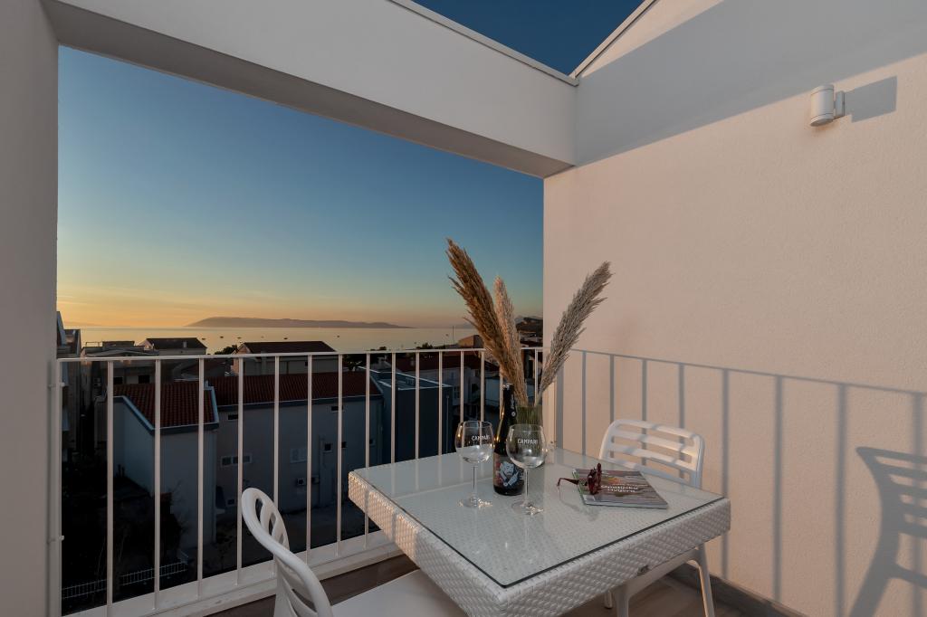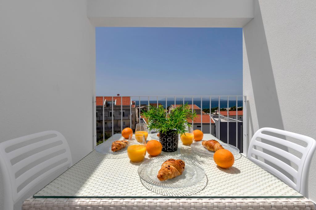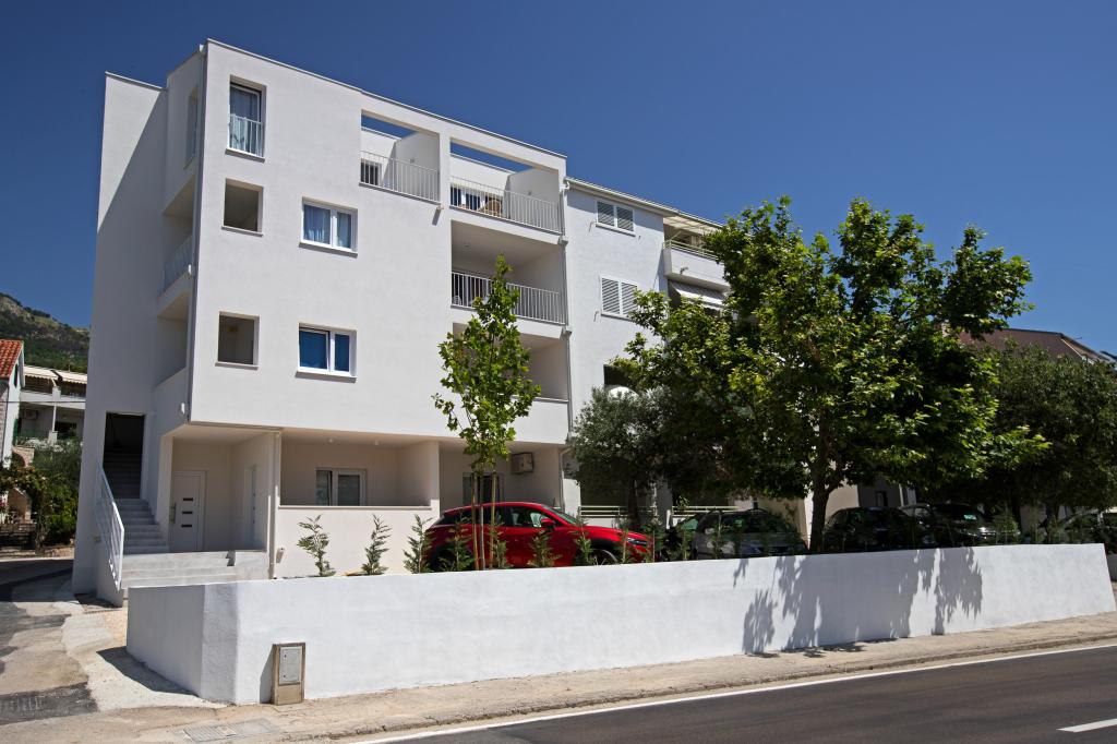 Apartamente moderne, complet echipate, situate la doar 5 minute de mers pe jos de plajă și 10 minute de mers pe jos de centru. În imediata vecinătate se găsesc cafenele, restaurante și supermarketuri. Stația de autobuz se află la un minut de mers pe jos. Fiecare apartament are o terasă confortabilă cu vedere la mare și loc de parcare.