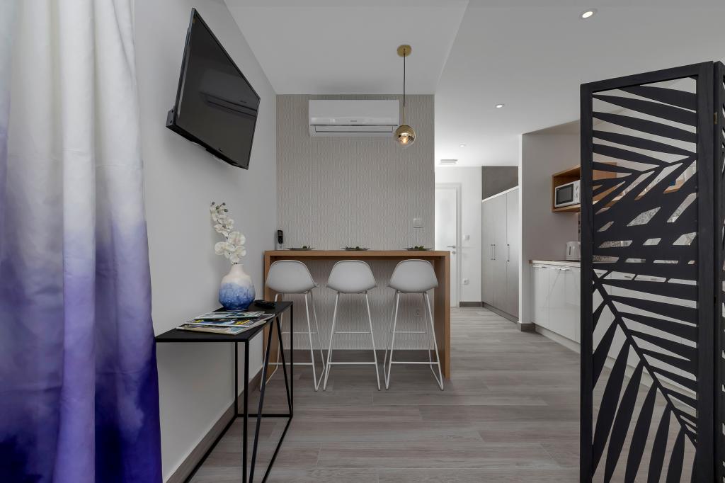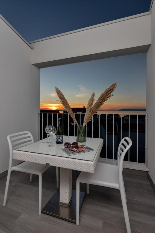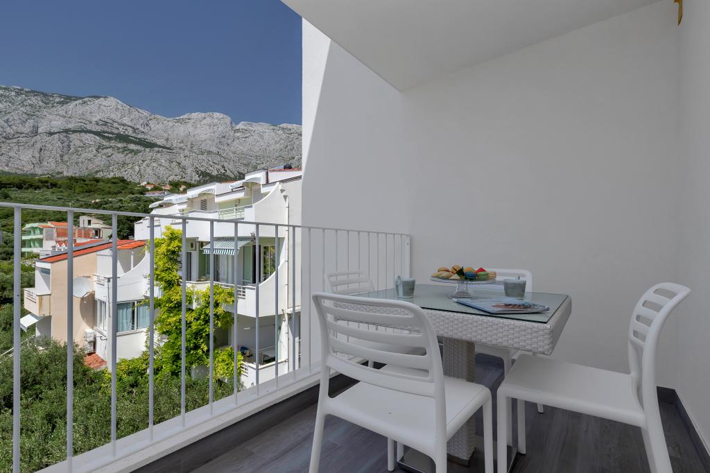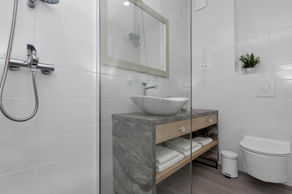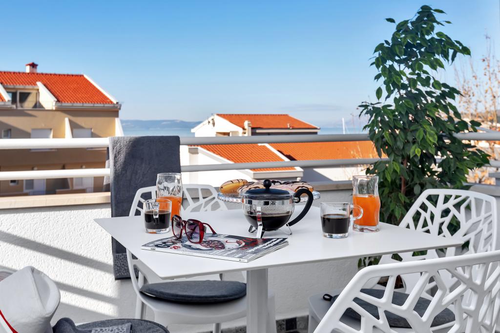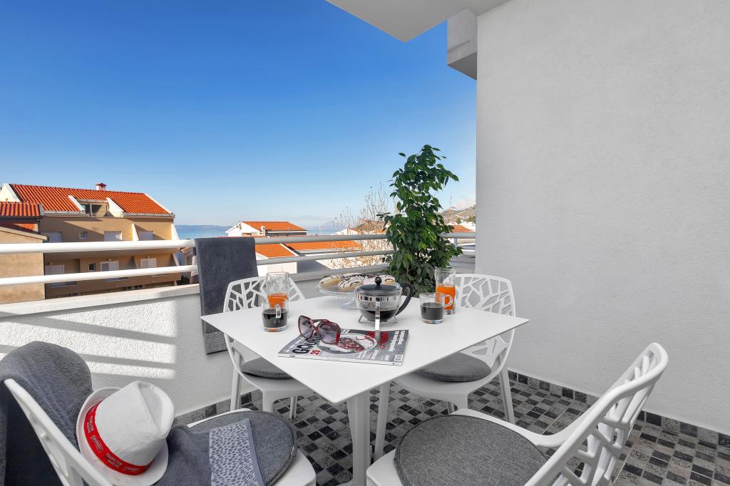 Apartamente moderne, complet echipate, situate la doar 5 minute de mers pe jos de plajă și 10 minute de mers pe jos de centru. În imediata vecinătate se găsesc cafenele, restaurante și supermarketuri. Stația de autobuz se află la un minut de mers pe jos. Fiecare apartament are o terasă confortabilă cu vedere la mare și loc de parcare.