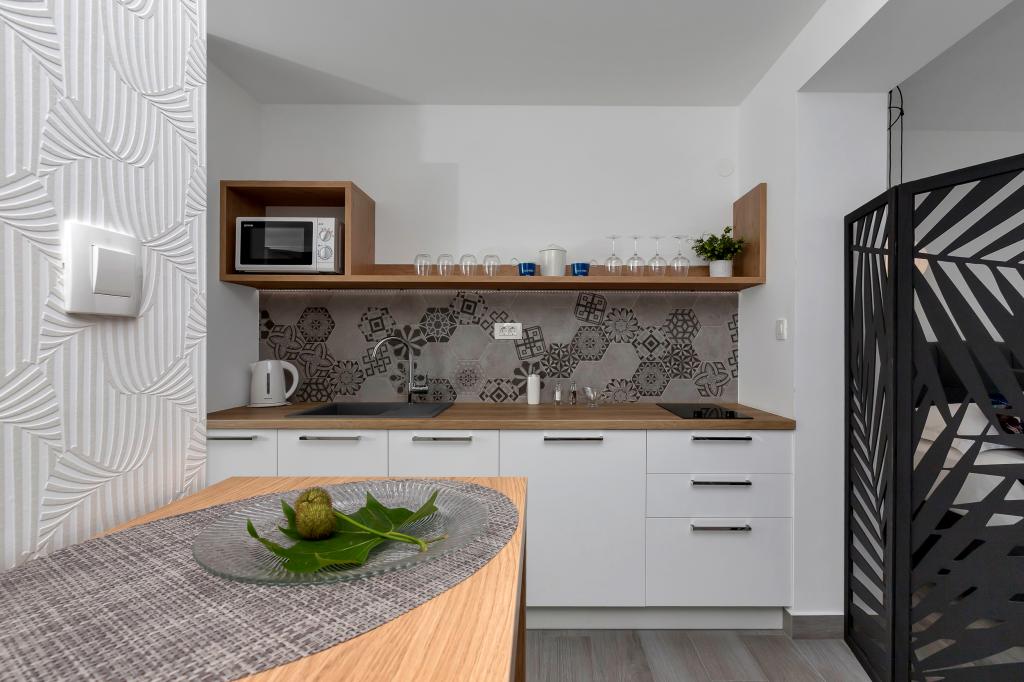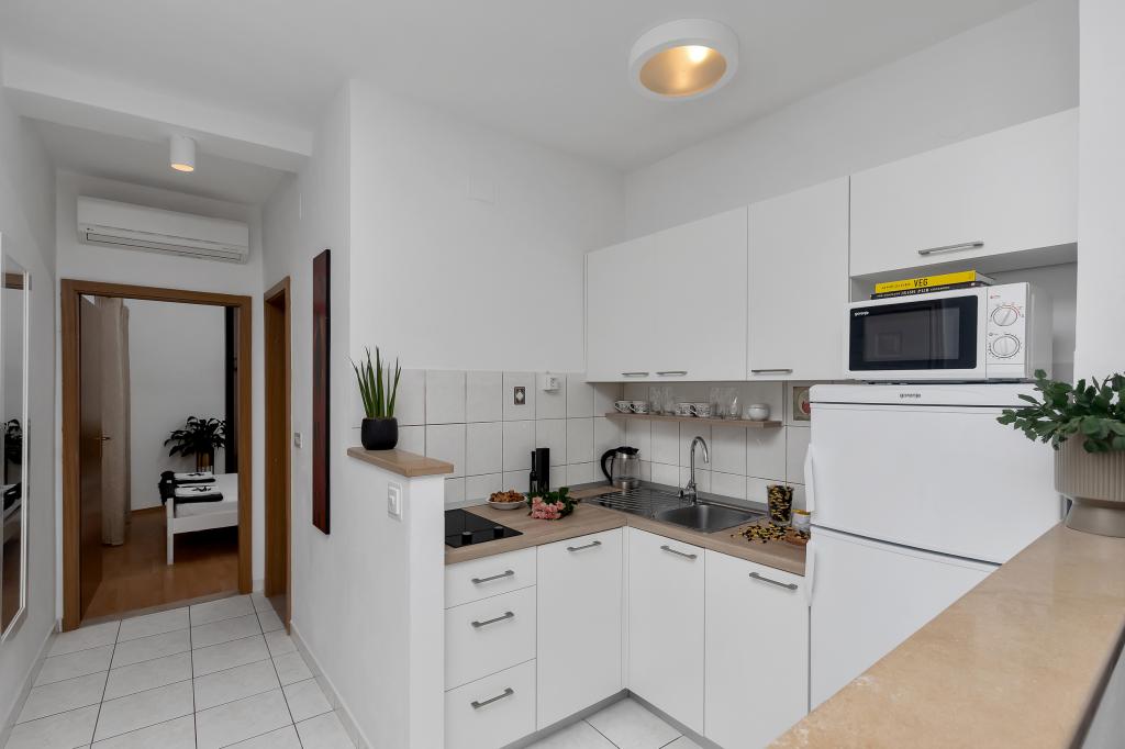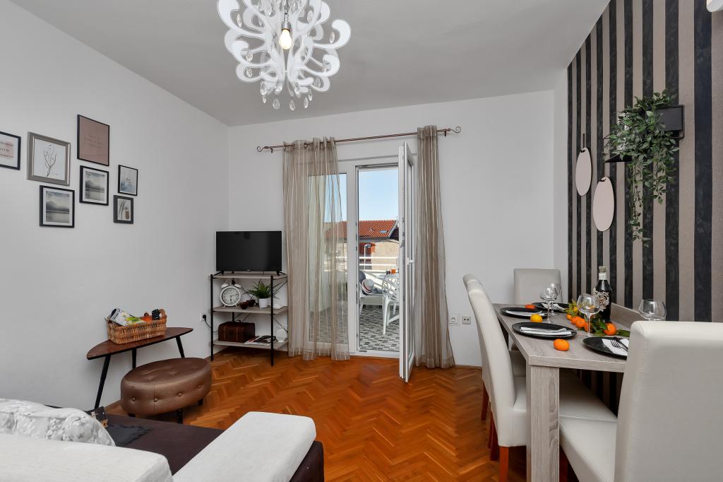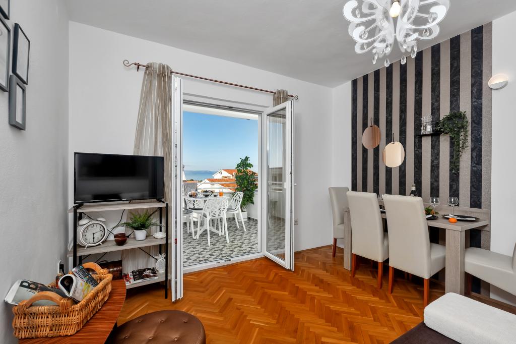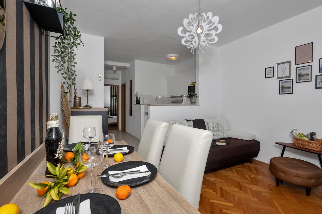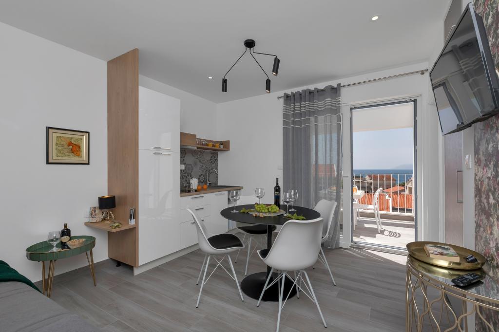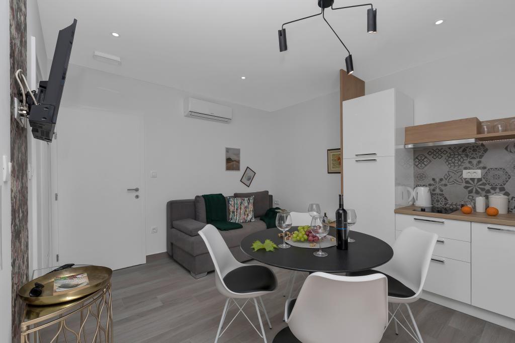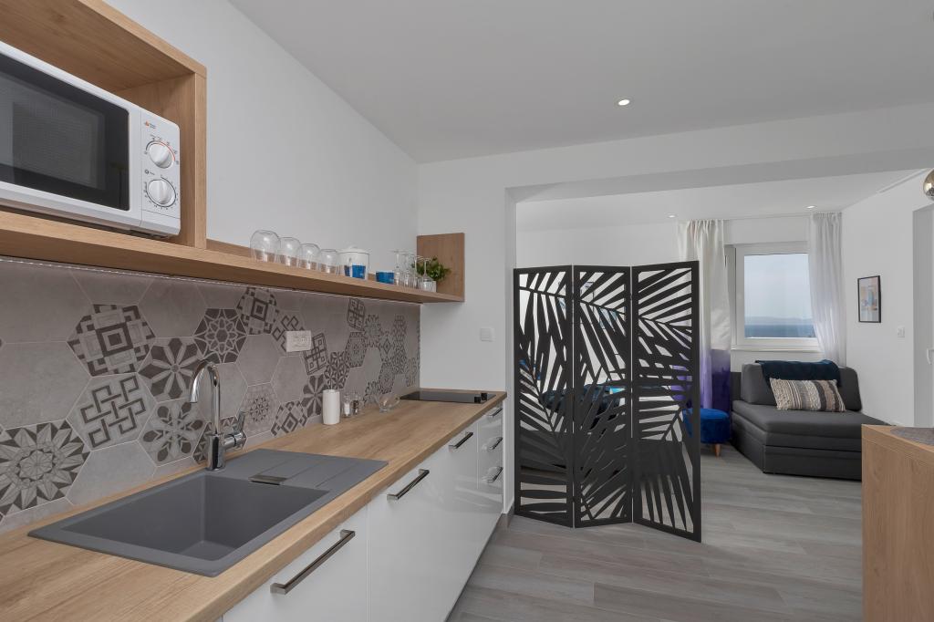 Apartament nou-nouț și dotat în toate sensurile, cu tot ce aveți nevoie pentru o vacanță plăcută. Patul este foarte confortabil, baia spațioasă, bucătăria are tot ce aveți nevoie pentru a aranja o masă. Terasa este frumoasă, cu o vedere minunată la mare și la restul locului. În dormitor, patul este așezat astfel încât să priviți frumoasele răsărituri și apusuri de soare de pe el. Clădirea este liniștită și liniștită. Parcarea este suficientă pentru intrarea și ieșirea neobstrucționată. Cea mai mare laudă pentru curățenie, care este peste medie. Totul era impecabil. Viskovici este o familie politicoasă, amabilă, întotdeauna disponibilă și caldă. Recomandăm această cazare și aceste persoane minunate tuturor.