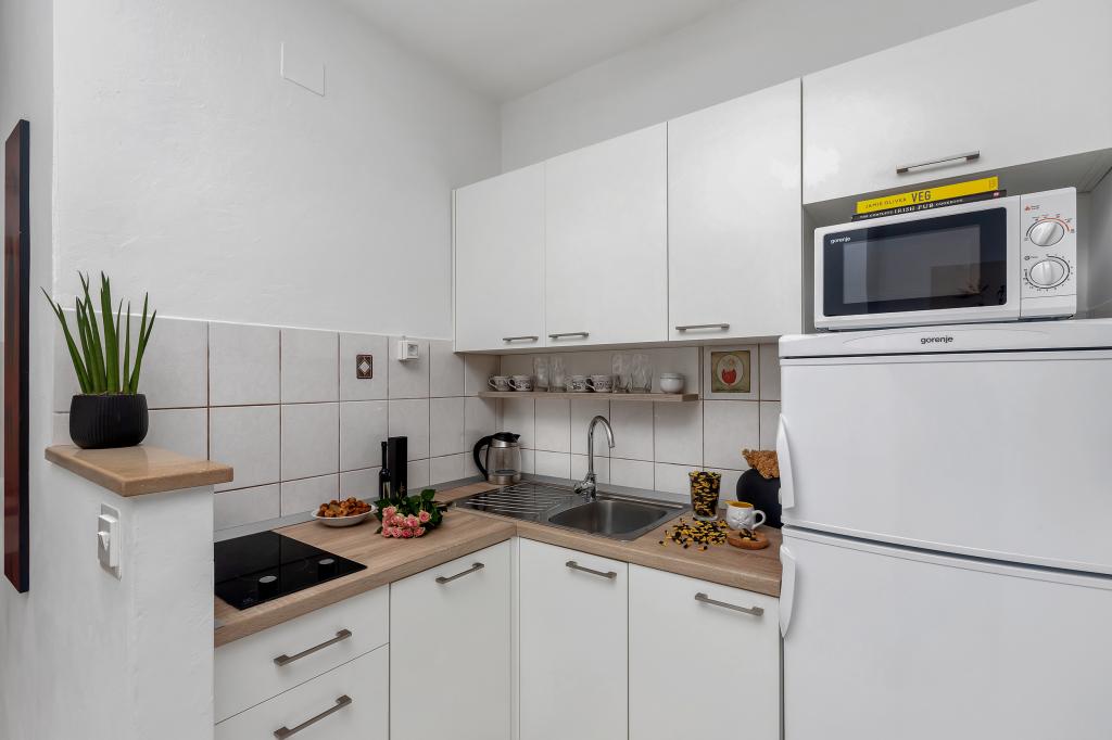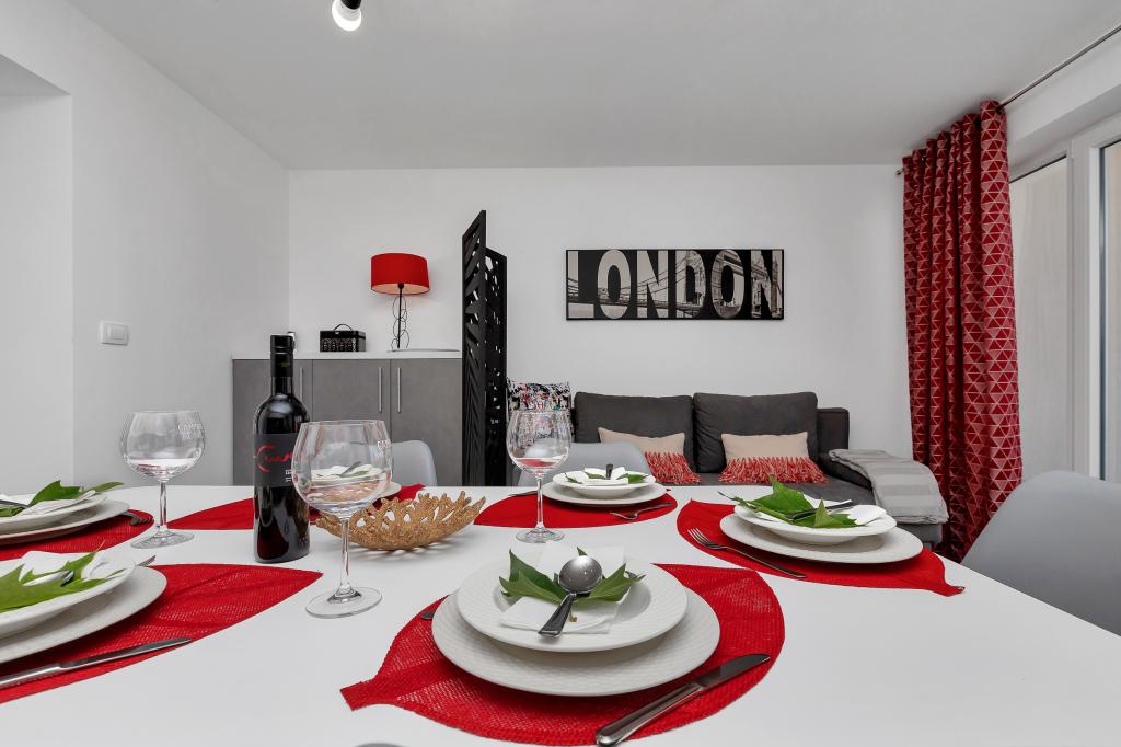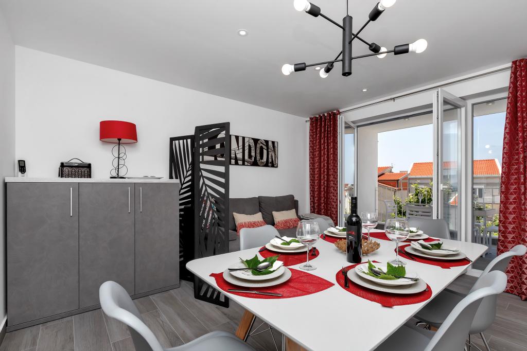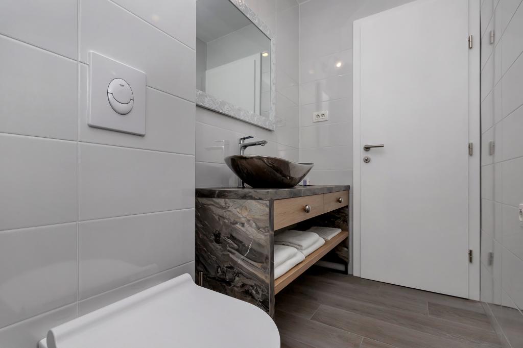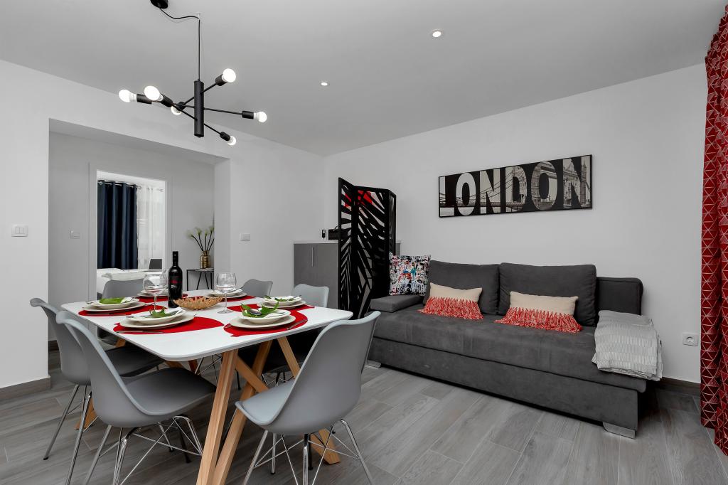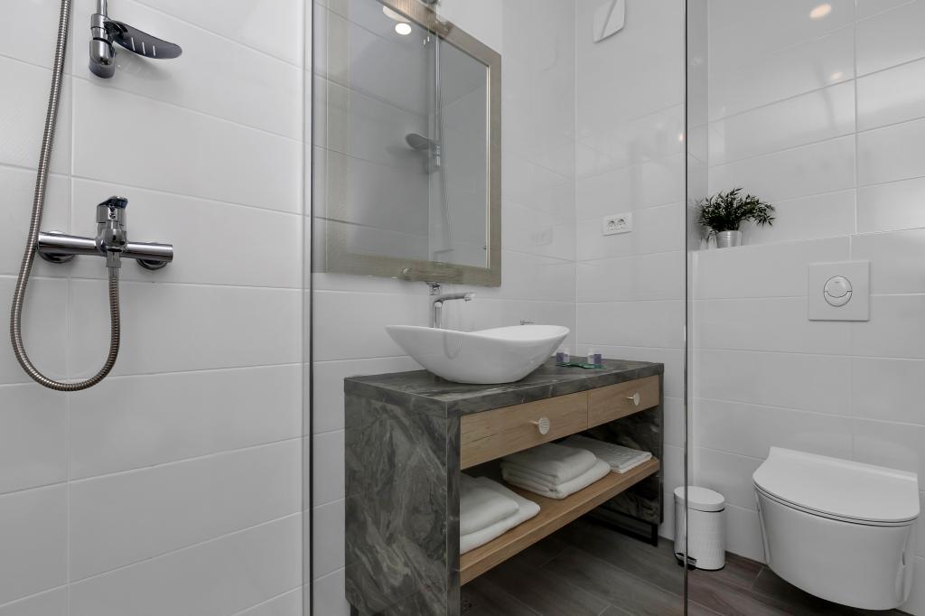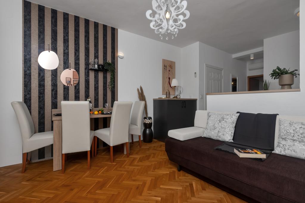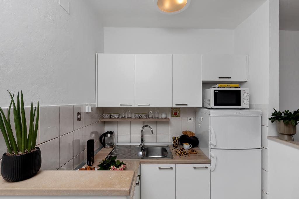 Apartament nou-nouț și dotat în toate sensurile, cu tot ce aveți nevoie pentru o vacanță plăcută. Patul este foarte confortabil, baia spațioasă, bucătăria are tot ce aveți nevoie pentru a aranja o masă. Terasa este frumoasă, cu o vedere minunată la mare și la restul locului. În dormitor, patul este așezat astfel încât să priviți frumoasele răsărituri și apusuri de soare de pe el. Clădirea este liniștită și liniștită. Parcarea este suficientă pentru intrarea și ieșirea neobstrucționată. Cea mai mare laudă pentru curățenie, care este peste medie. Totul era impecabil. Viskovici este o familie politicoasă, amabilă, întotdeauna disponibilă și caldă. Recomandăm această cazare și aceste persoane minunate tuturor.