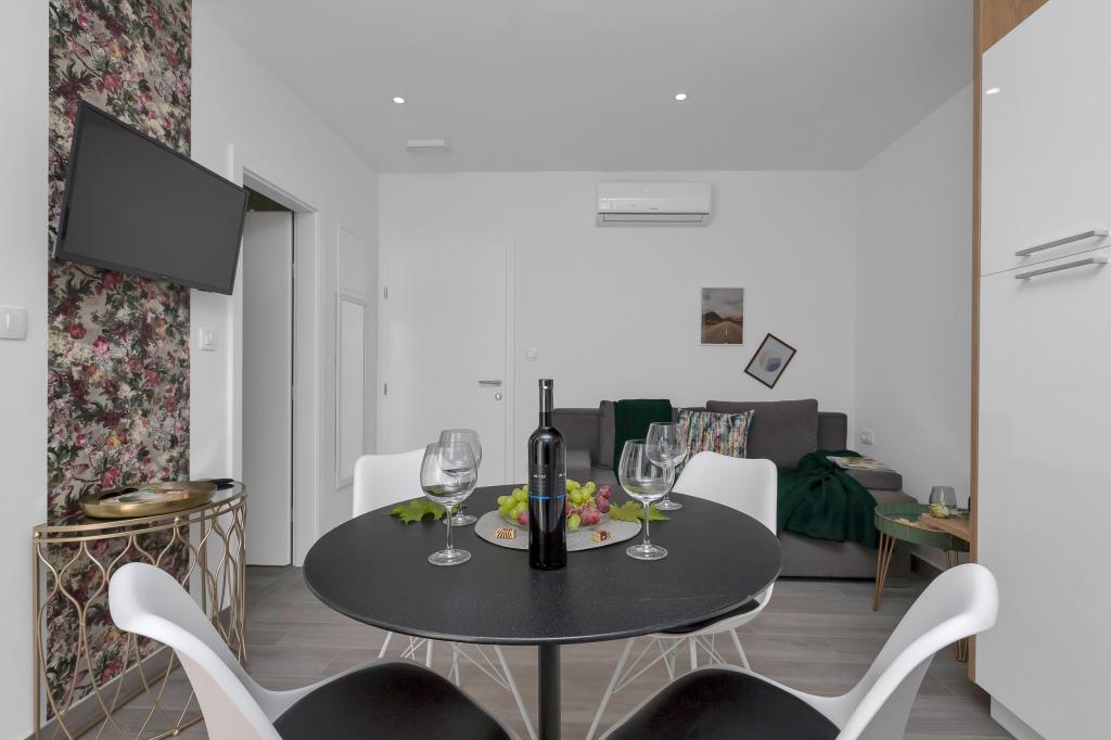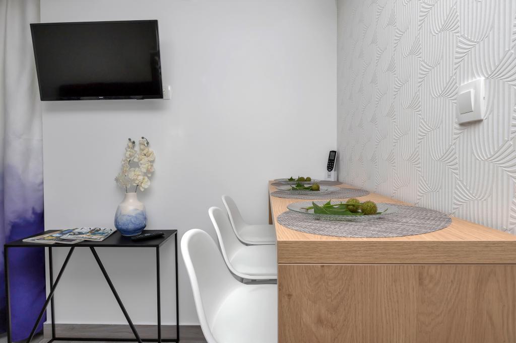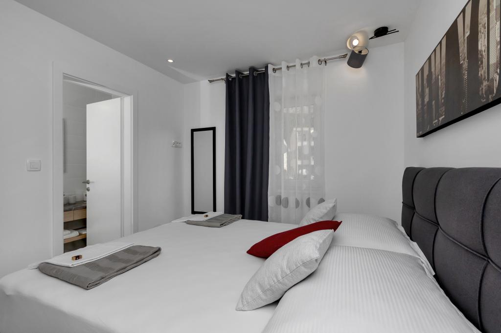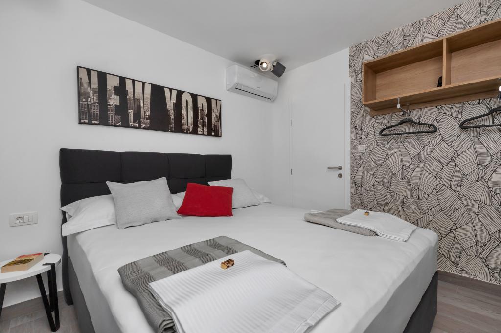 Clădire foarte frumoasă și modernă, camera este, de asemenea, frumoasă și modernă, totul este complet funcțional și miroase frumos și proaspăt. Aerul condiționat se răcește frumos, WiFi are un semnal bun, bucătărie și tocmai bine, nu lipsește nimic. Pe lângă toate acestea, proprietara foarte plăcută și zâmbitoare, doamna Tanja, nu există nimic de reproșat, o recomand cu drag tuturor.
