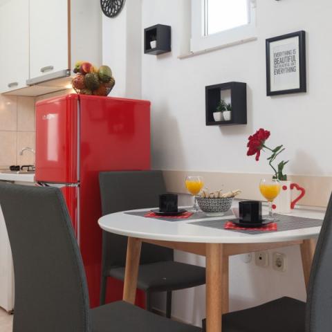 La doar 150 de metri de plajă, Villa Nela se află lângă hotelul Alga. Apropierea plajei, terenurile de sport, promenada, restaurantele, cafenelele și toate celelalte facilități necesare pentru o vacanță completă, garantează o vară plăcută și de neuitat. Familia Covic nu este doar proprietarii vilei, ci și personalul vilei care se ocupă de tot ceea ce va face ca vacanța dvs. în Tučepi să fie cât mai plăcută. Acest tip de ospitalitate oferă oaspeților din Villa Nela o atmosferă familială, un serviciu personal și foarte cordial pe care nu îl poți obține în hoteluri mai mari. Cu tradiție și amabilitate, Villa Nela vă oferă tot ce vă poate oferi o instalație turistică de top de acest tip. Apartamentele au băi proprii, aer condiționat, tv prin satelit, conexiune la internet fără fir, seifuri, balcoane spațioase mari și loc de parcare securizat în fața vilei. Clima este dezinfectată și apartamentele sunt impecabile.