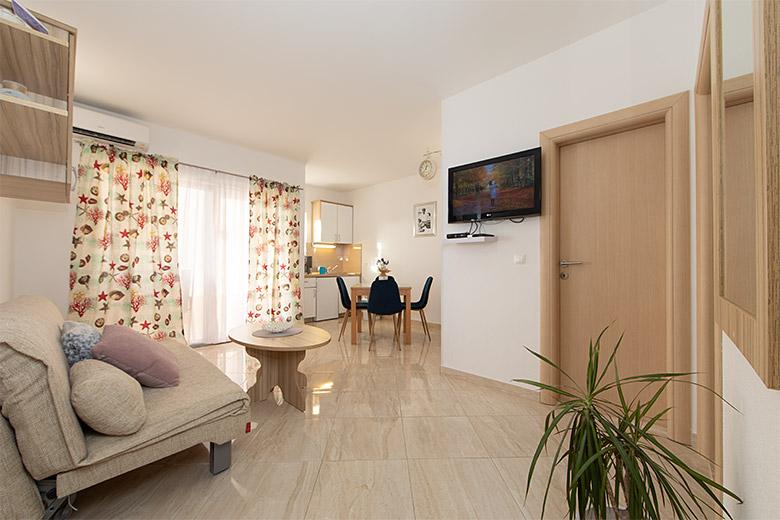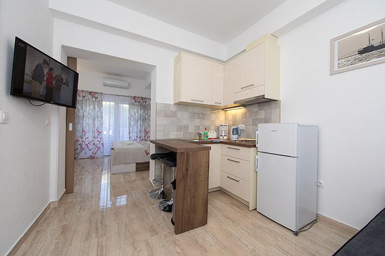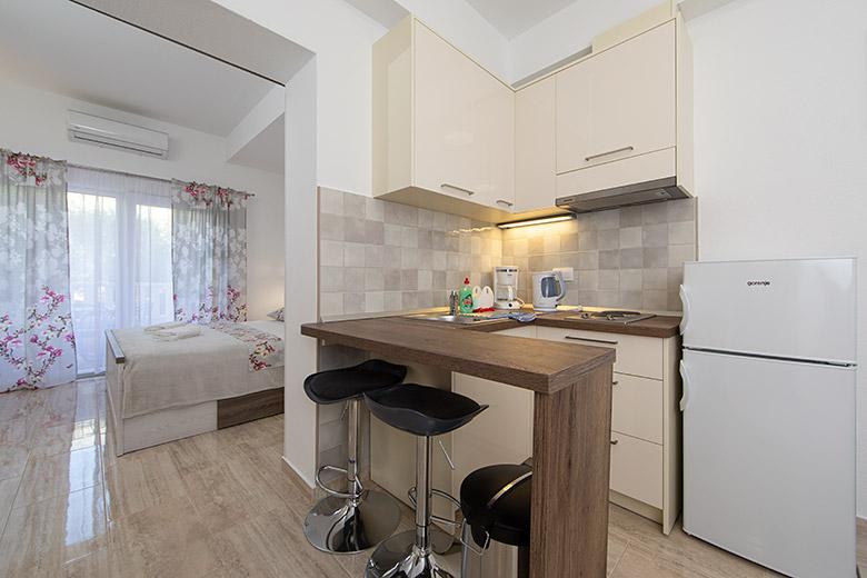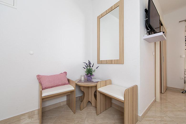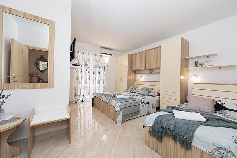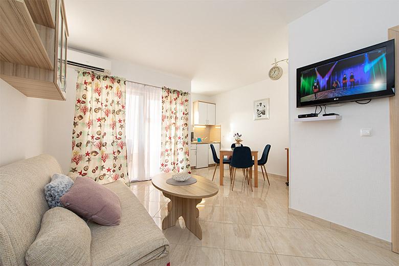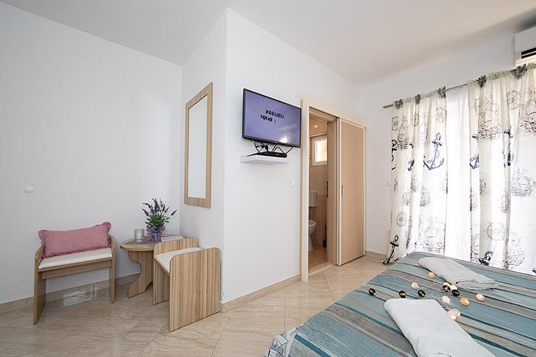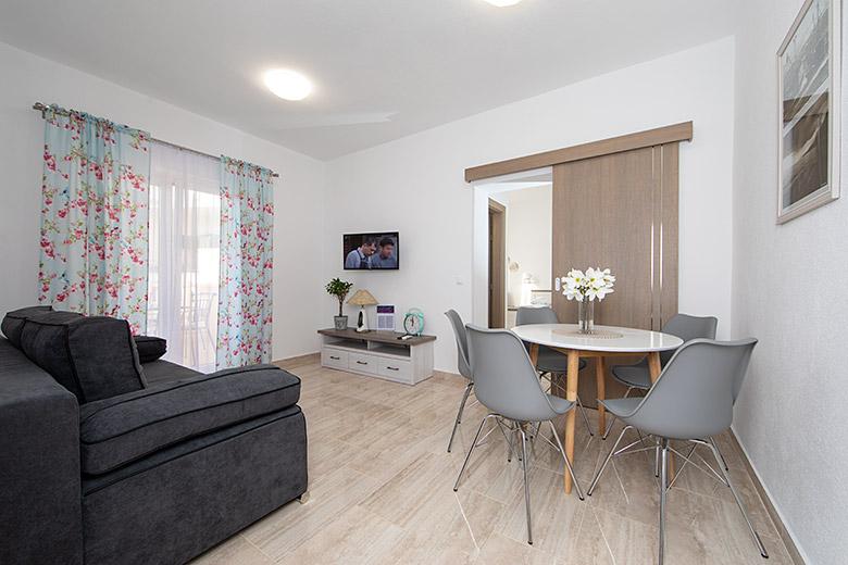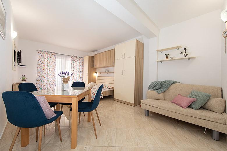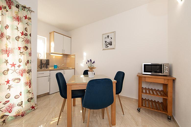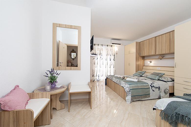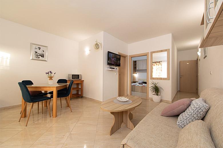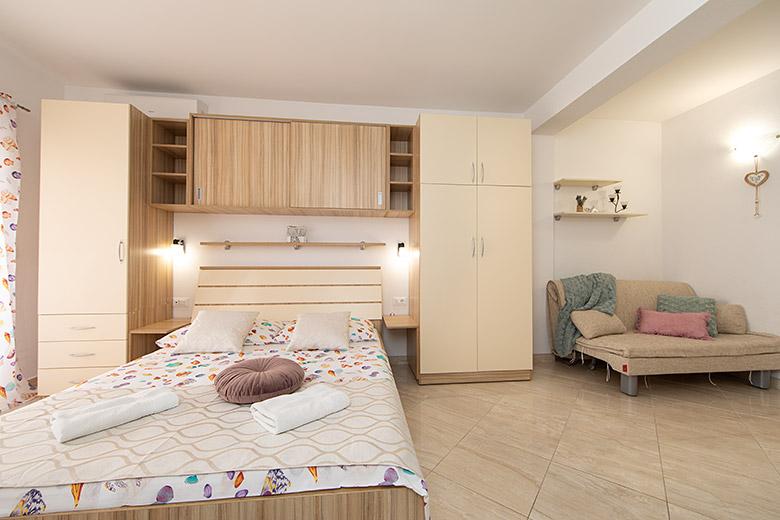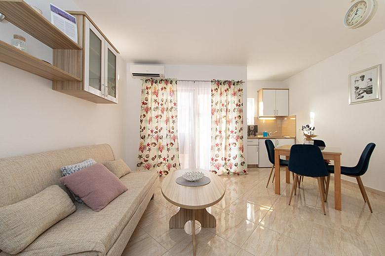 Taxa de rezidenta este inclusa in pret.Proprietarul este foarte accesibil și politicos Apartamentul este extrem de curat si parfumat, paturile sunt confortabile. O terasă mare cu o bucătărie mică care conține tot ce aveți nevoie pentru a găti În apartament există un uscător de rufe, uscător de păr, ceainic, aparat de cafea, iar pe hol este un dulap pentru necesități suplimentare. (hartie igienica, saci de gunoi, detergent de spalat, fier de calcat, masa de calcat,...) Apartamentul este foarte aproape de tot, brutărie, piață, restaurant, centru, plaja 50 m.. În fața apartamentului este disponibilă parcare gratuită Il recomand cu caldura tuturor
