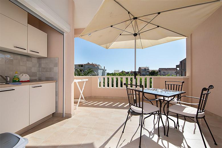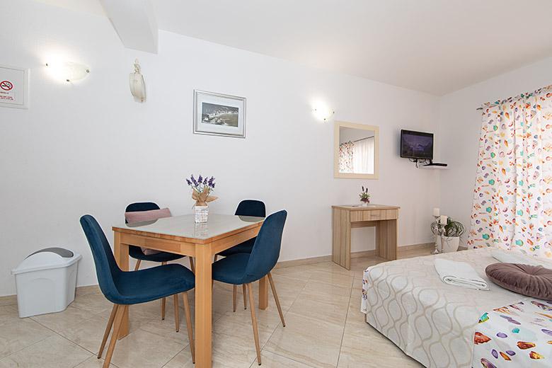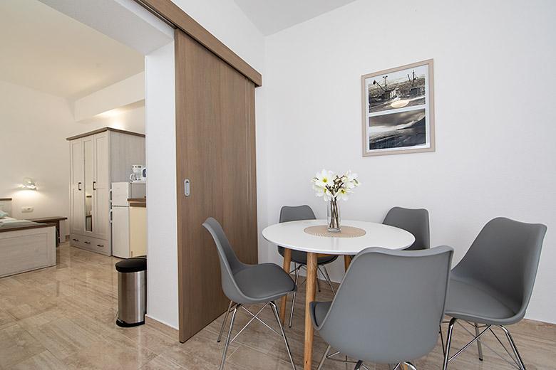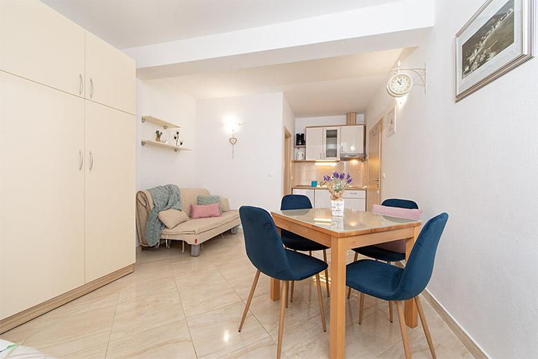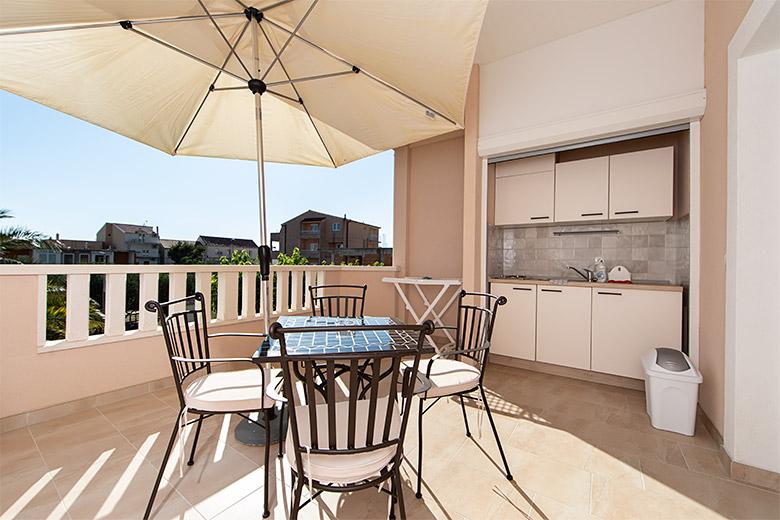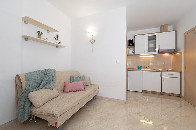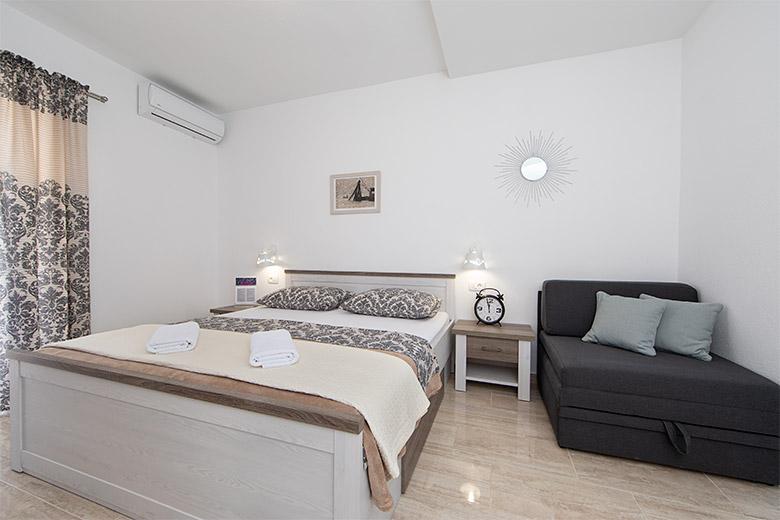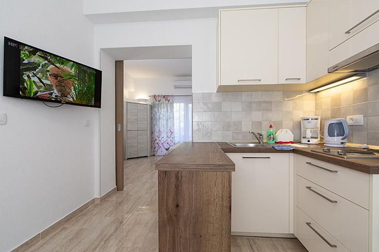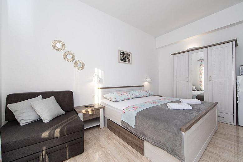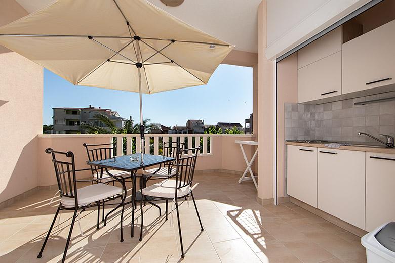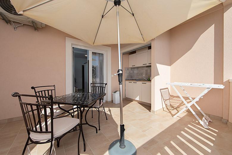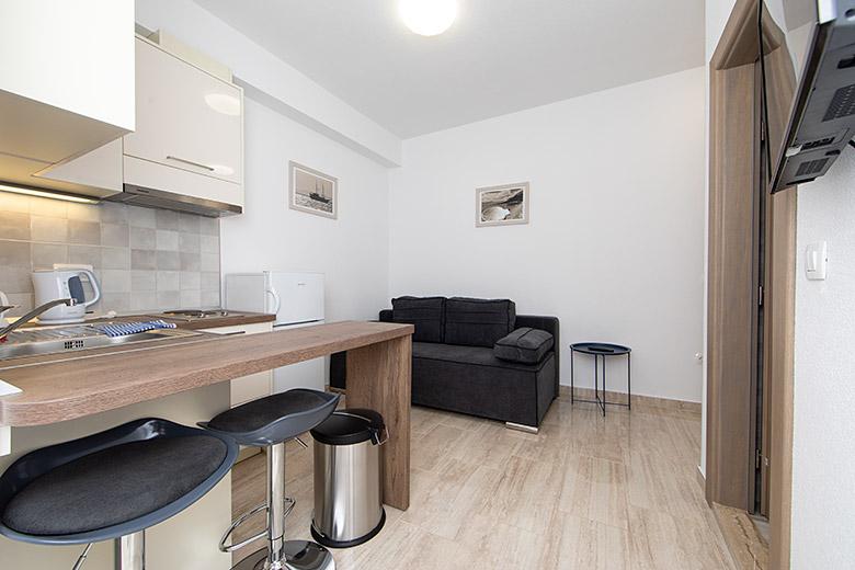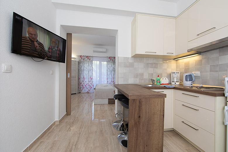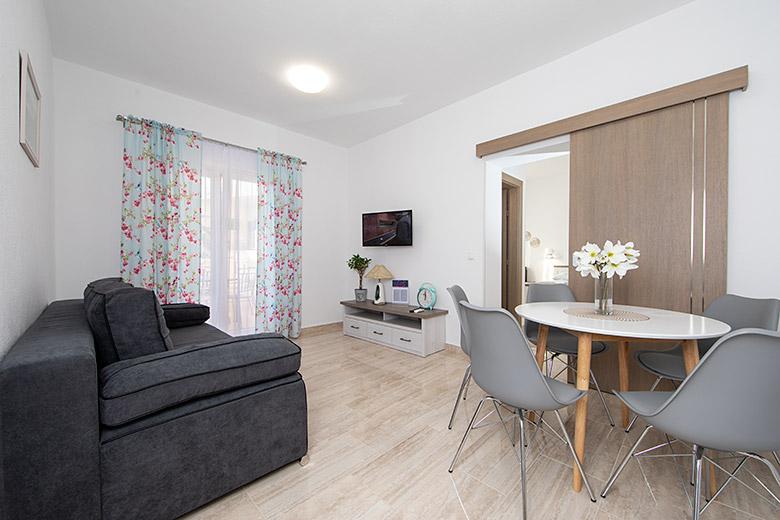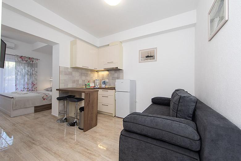 Taxa de rezidenta este inclusa in pret.Proprietarul este foarte accesibil și politicos Apartamentul este extrem de curat si parfumat, paturile sunt confortabile. O terasă mare cu o bucătărie mică care conține tot ce aveți nevoie pentru a găti În apartament există un uscător de rufe, uscător de păr, ceainic, aparat de cafea, iar pe hol este un dulap pentru necesități suplimentare. (hartie igienica, saci de gunoi, detergent de spalat, fier de calcat, masa de calcat,...) Apartamentul este foarte aproape de tot, brutărie, piață, restaurant, centru, plaja 50 m.. În fața apartamentului este disponibilă parcare gratuită Il recomand cu caldura tuturor