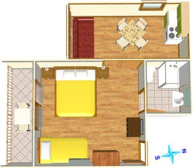 Apartament pentru două persoane, cu două paturi suplimentare (25 m2)