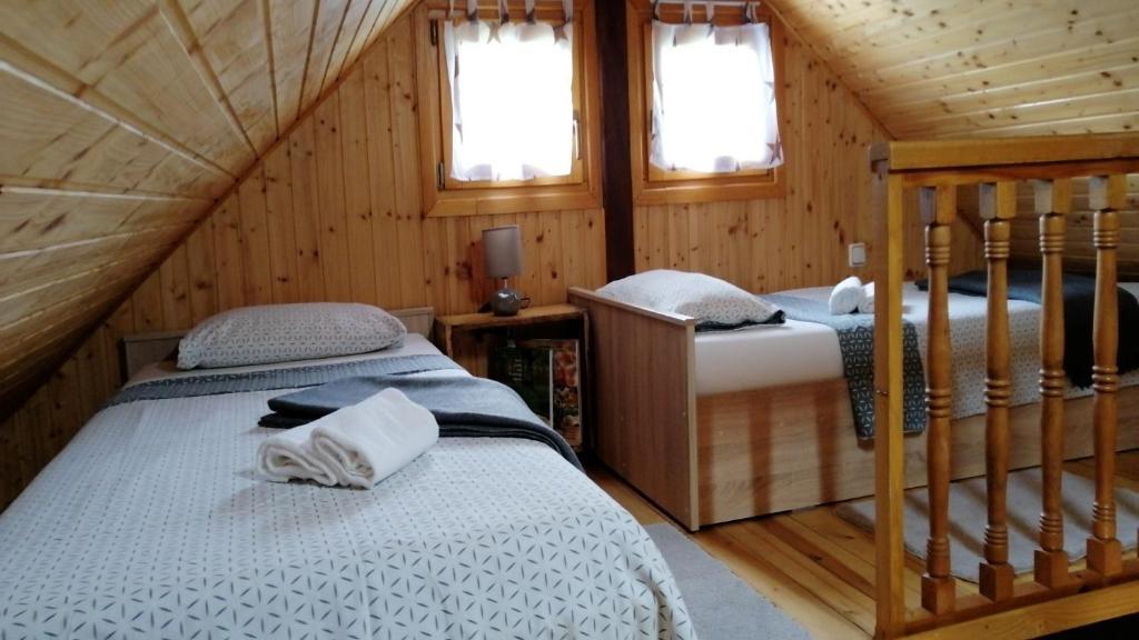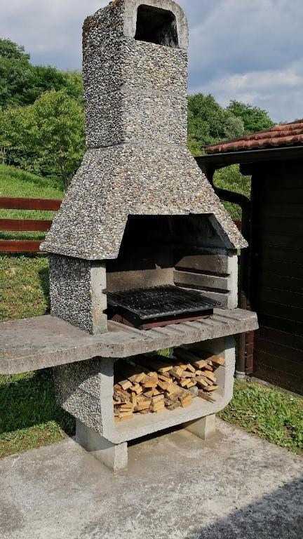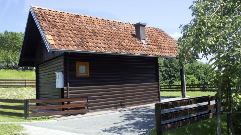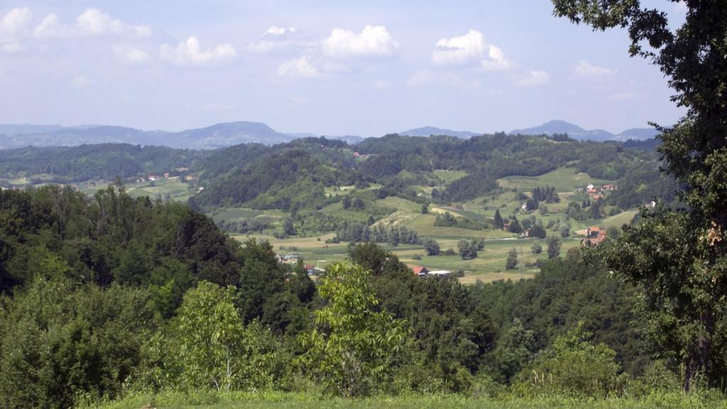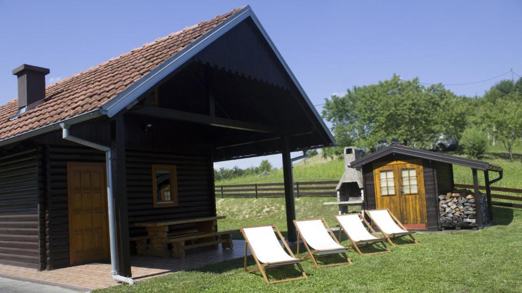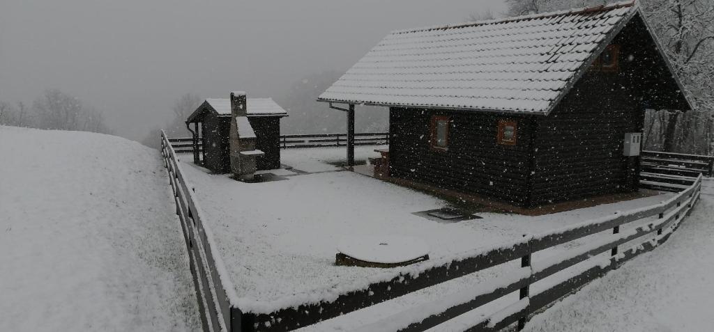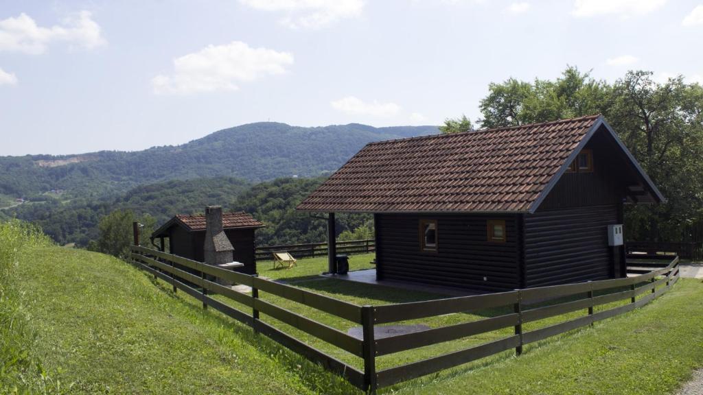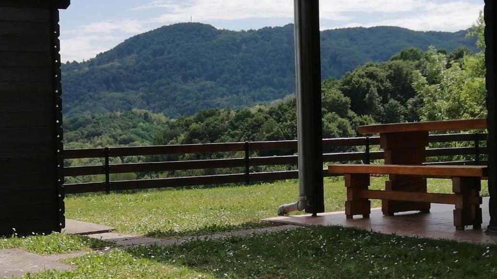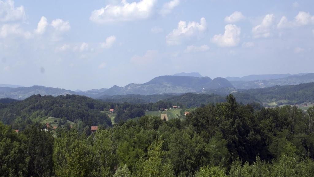 O casă de lemn, singură pe un deal din Zagorje, cu vedere la munți. Confidențialitate garantată.