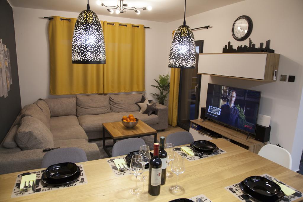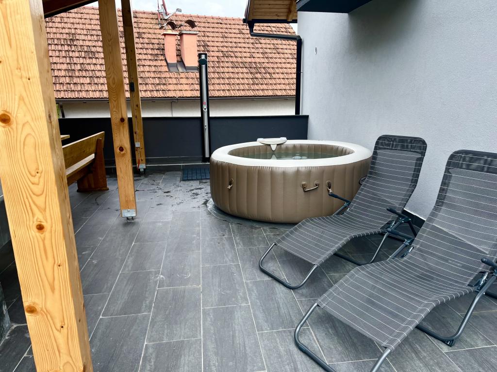Înconjurați-vă cu stil în acest spațiu extraordinar. Această vilă modernă de 4 stele este situată pe un deal liniștit deasupra stațiunii balneare Tuhelj și are o vedere minunată asupra împrejurimilor. Apartamentul de la parter (38m2) are tot ce ai nevoie pentru o vacanta perfecta si nu numai. Bucătărie complet utilată cu cuptor, mașină de spălat vase și cuptor cu microunde cu toate accesoriile. TV cu peste 100 de programe și Netflix. Terasa exterioară cu pergolă din lemn, grătar și priveliște frumoasă vă va relaxa de fiecare dată... Apartamentul de la etaj este pe două etaje (70m2) și are 3 dormitoare, un living mare cu bucătărie complet utilată, o saună, un baie si toaleta. TV cu peste 100 de programe, Netflix, consola PS4, radio BT, etc... Terasa acoperita ofera o priveliste frumoasa asupra imprejurimilor. Acces pentru oaspeți Oaspeții noștri au acces la parcare privată și garaj, spălătorie, terasă exterioară cu grătar și chiuvetă, cadă cu hidromasaj (mai-octombrie), duș de grădină, saună și multe altele...