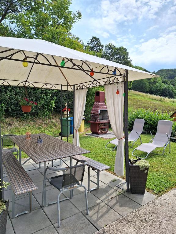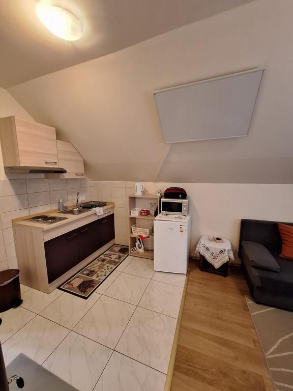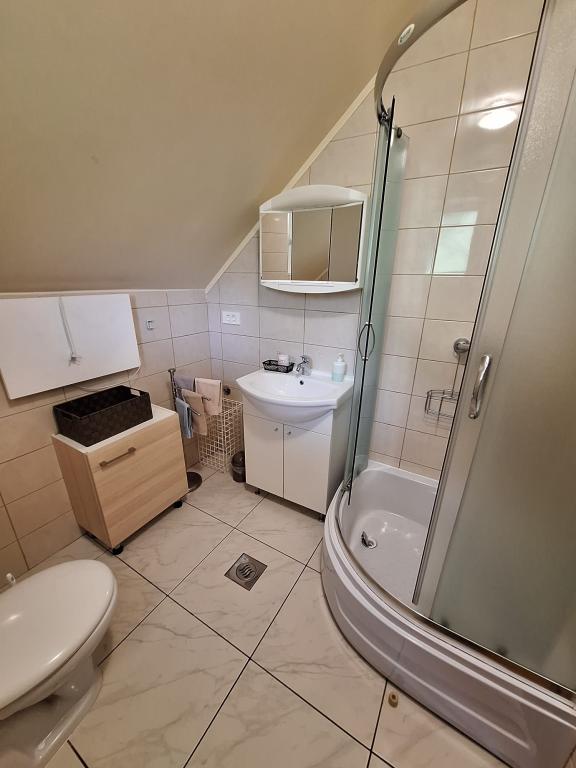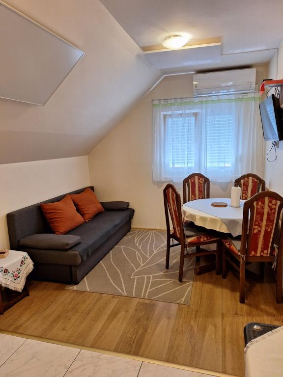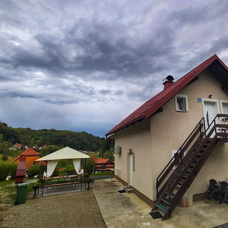 Casa cu două apartamente utilate modern /parter și mansardă/ este situată în Zagorje croat. Este înconjurat de verdeață, flori și o grădină amenajată. Fiecare aplicație are intrarea și terasa ei, iar în fața casei există o copertă acoperită cu zonă de relaxare, șezlonguri și un grătar mare. Terasa ofera o priveliste asupra naturii frumoase, si nu veti fi deranjati de zgomot in timpul vacantei /pentru ca drumul principal este departe si traficul local este foarte slab/, dar va veti bucura de ciripitul pasarilor. Centrul balnear Tuhelj este cunoscut pentru sursa sa de apă termală, curativă, așa că un complex cu piscine exterioare și interioare, masaje, saune, oferte sportive și gastronomice vă stă la dispoziție tot timpul anului. Apartamentele sunt la 1200m de complex, la 15 minute de mers pe jos. Cunoașteți frumusețile regiunii noastre și oferta gastronomică, iar noi vă vom oferi informații și vom încerca să vă facem șederea plăcută. Băutură de bun venit inclusă în preț Poze cu apartamentul puteți vedea pe pagina fb - apartamente Huško Bun venit